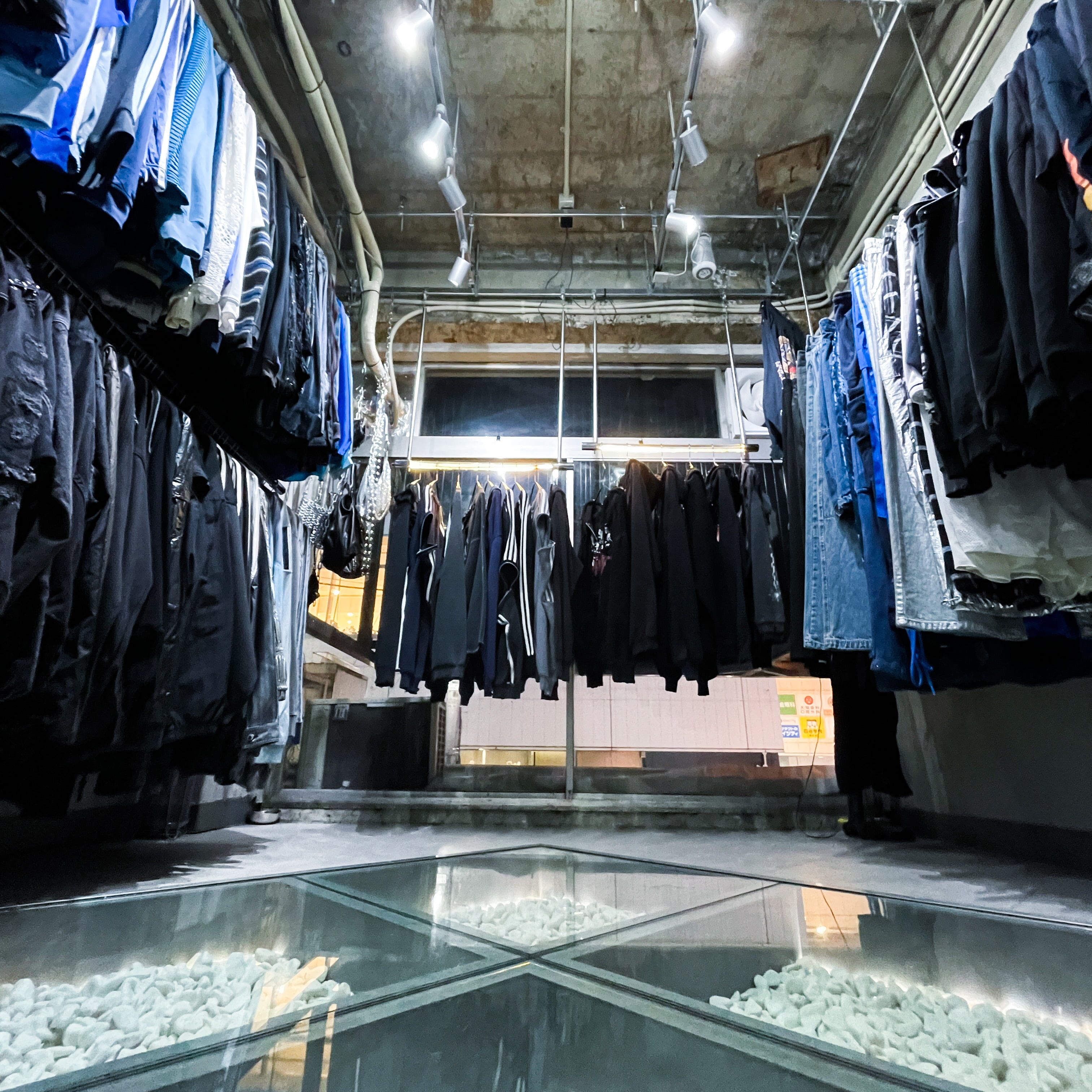 中華リスペクトの隠れ家的内装にチャイナアイテムやギミックの効いた一点物感溢れる古着を厳選。