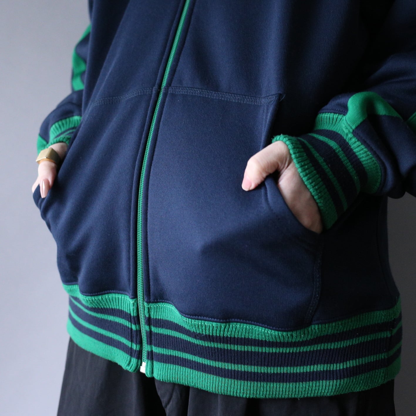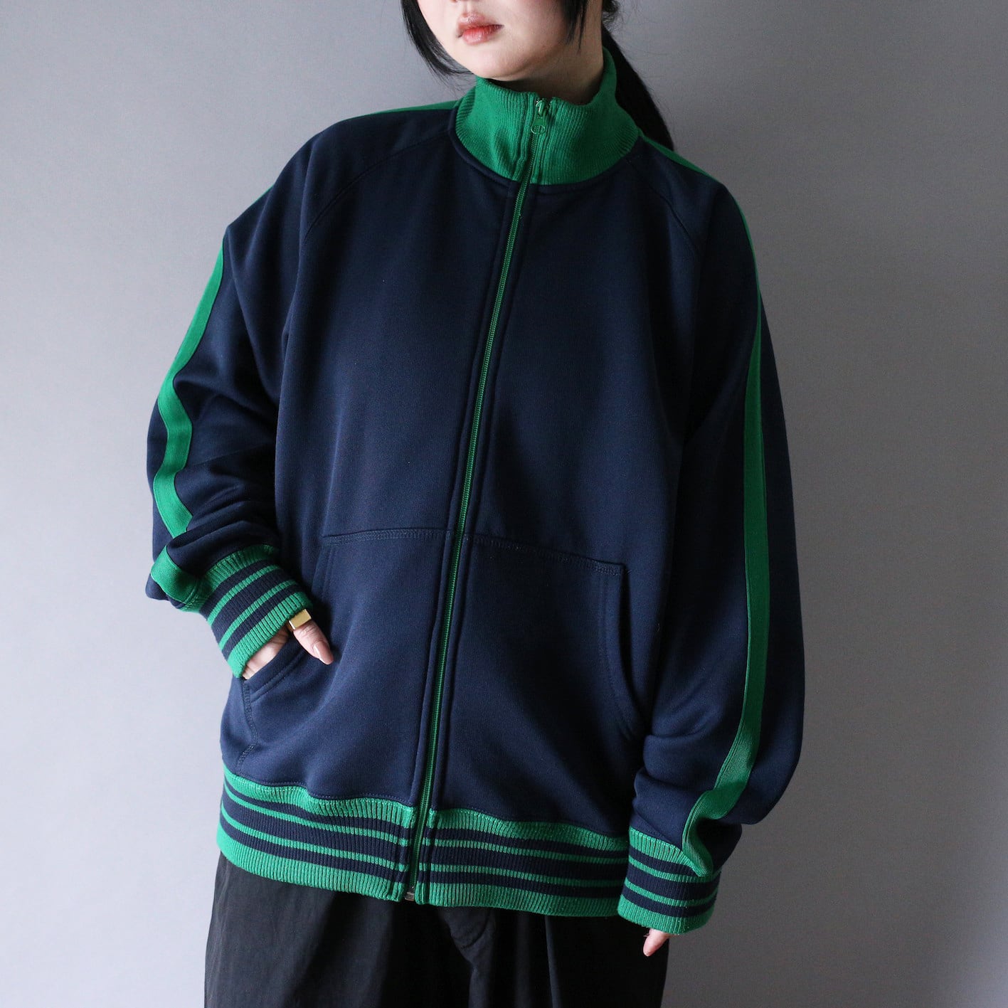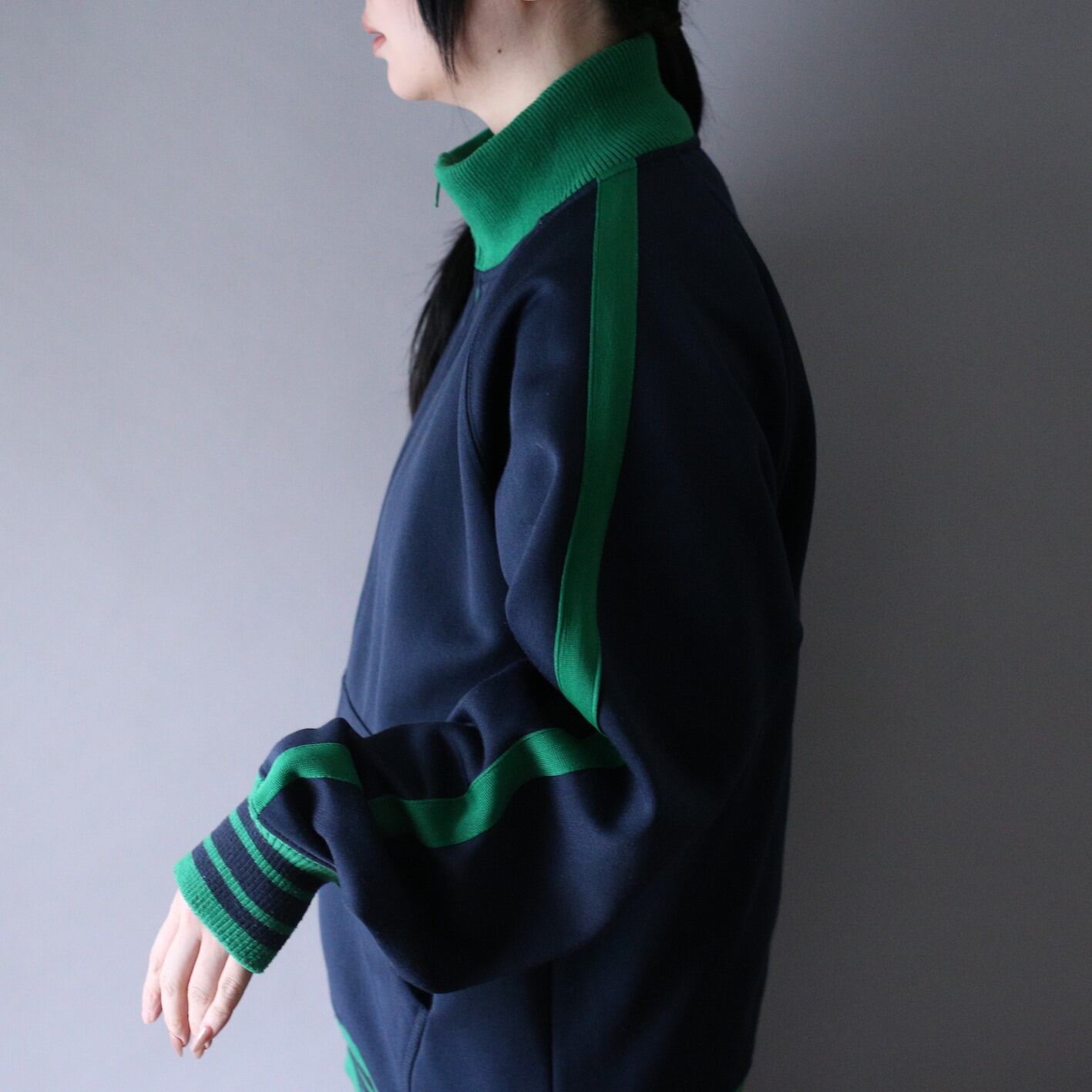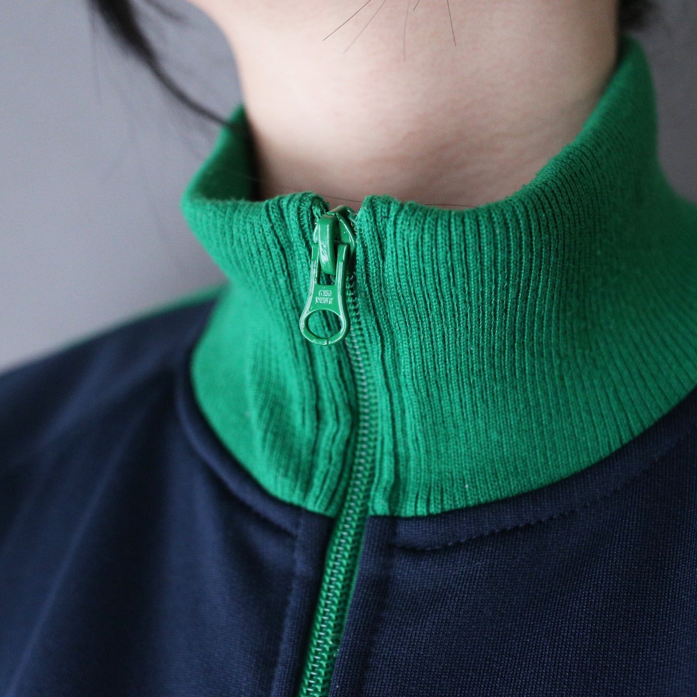 ネイビーをベースに色鮮やかな”緑”がアクセントとなった良配色、リブやサイドラインなどシルエットを引き立たせる色の配置もめちゃくちゃ良いです◎