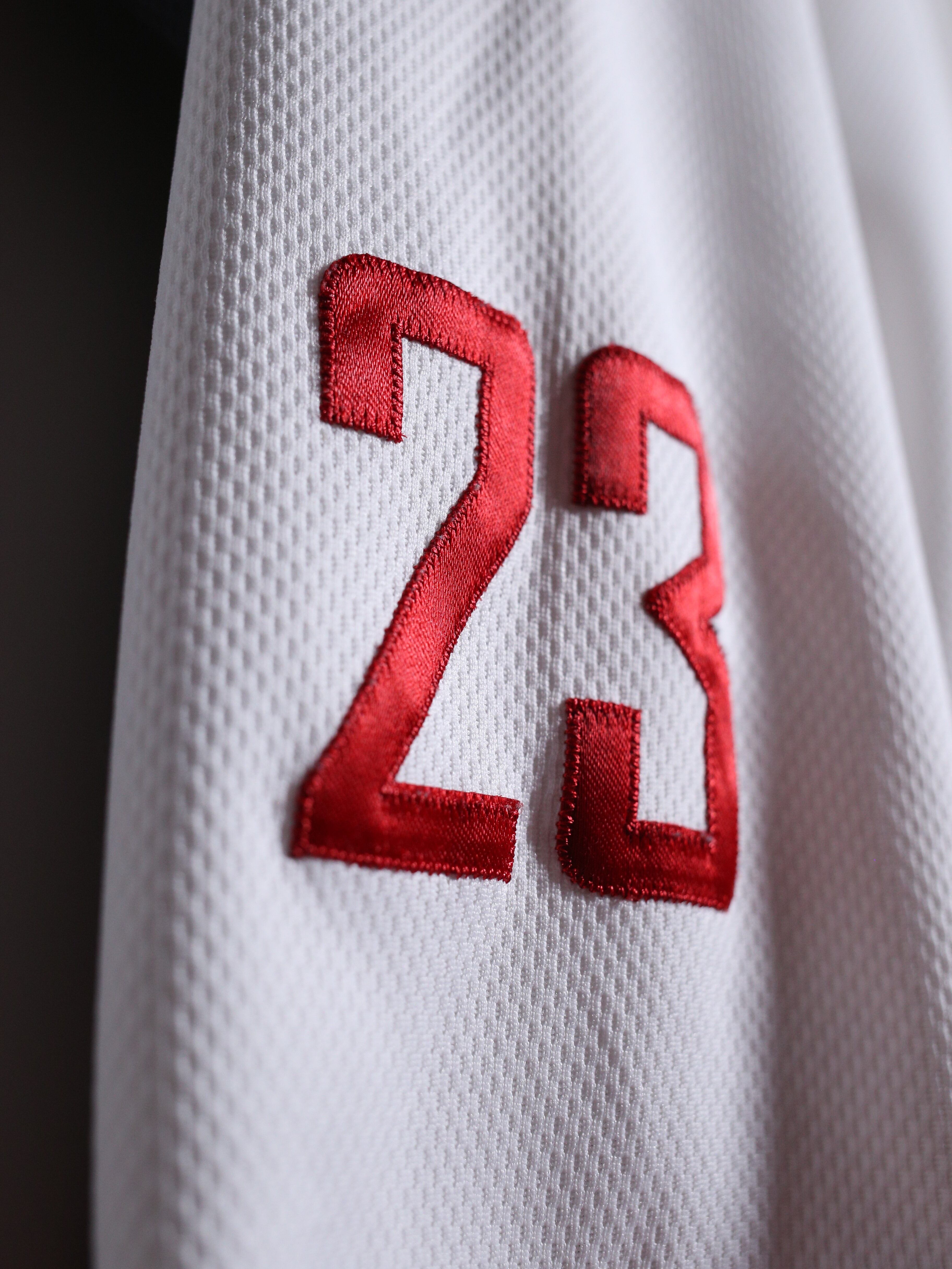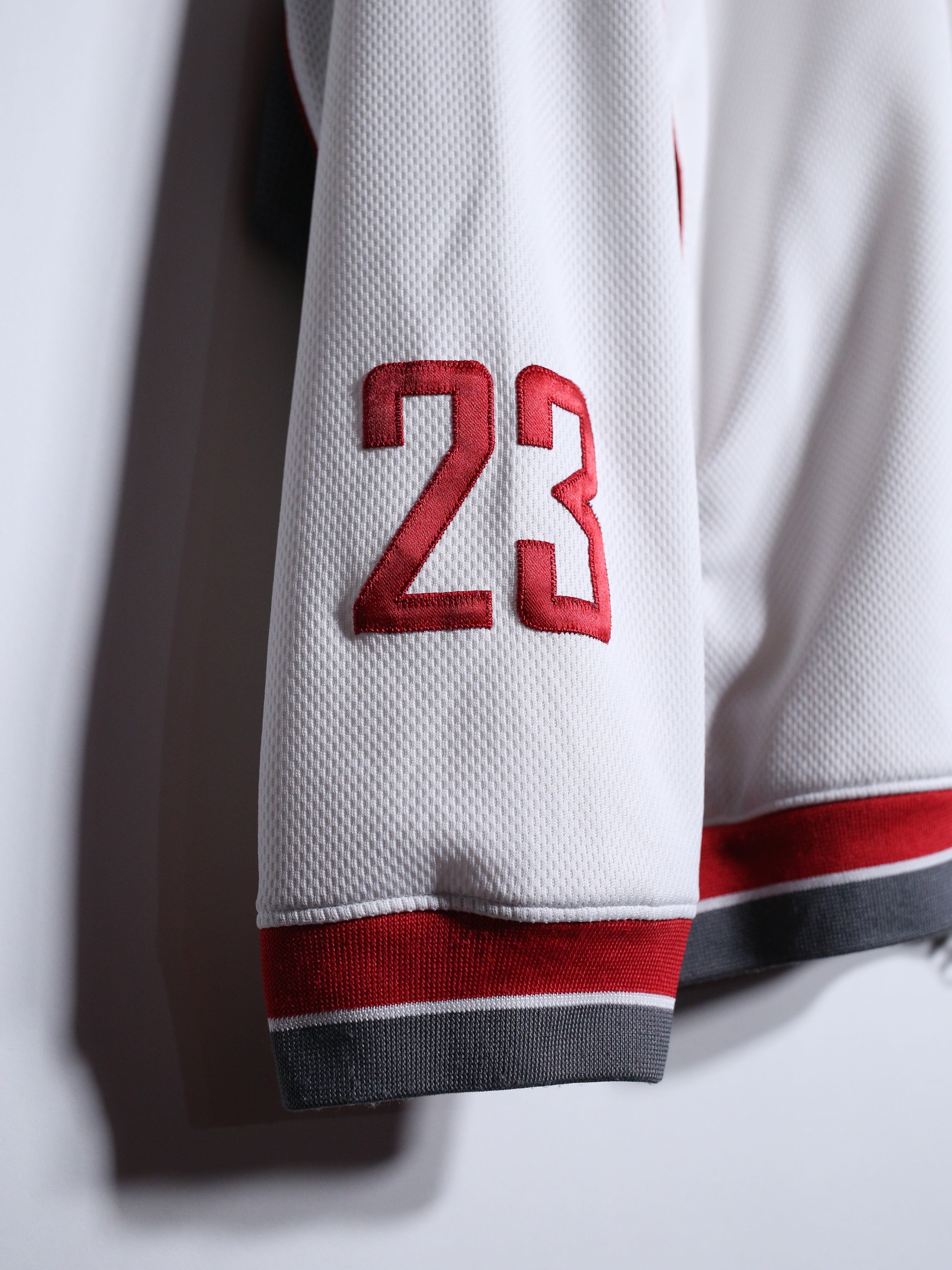 "バスケットボールの神"と呼ばれるに相応しい輝かしい実績を持つ"マイケル・ジョーダン"より、爽やかな白にグレー×赤の差し色が効いた一枚。
