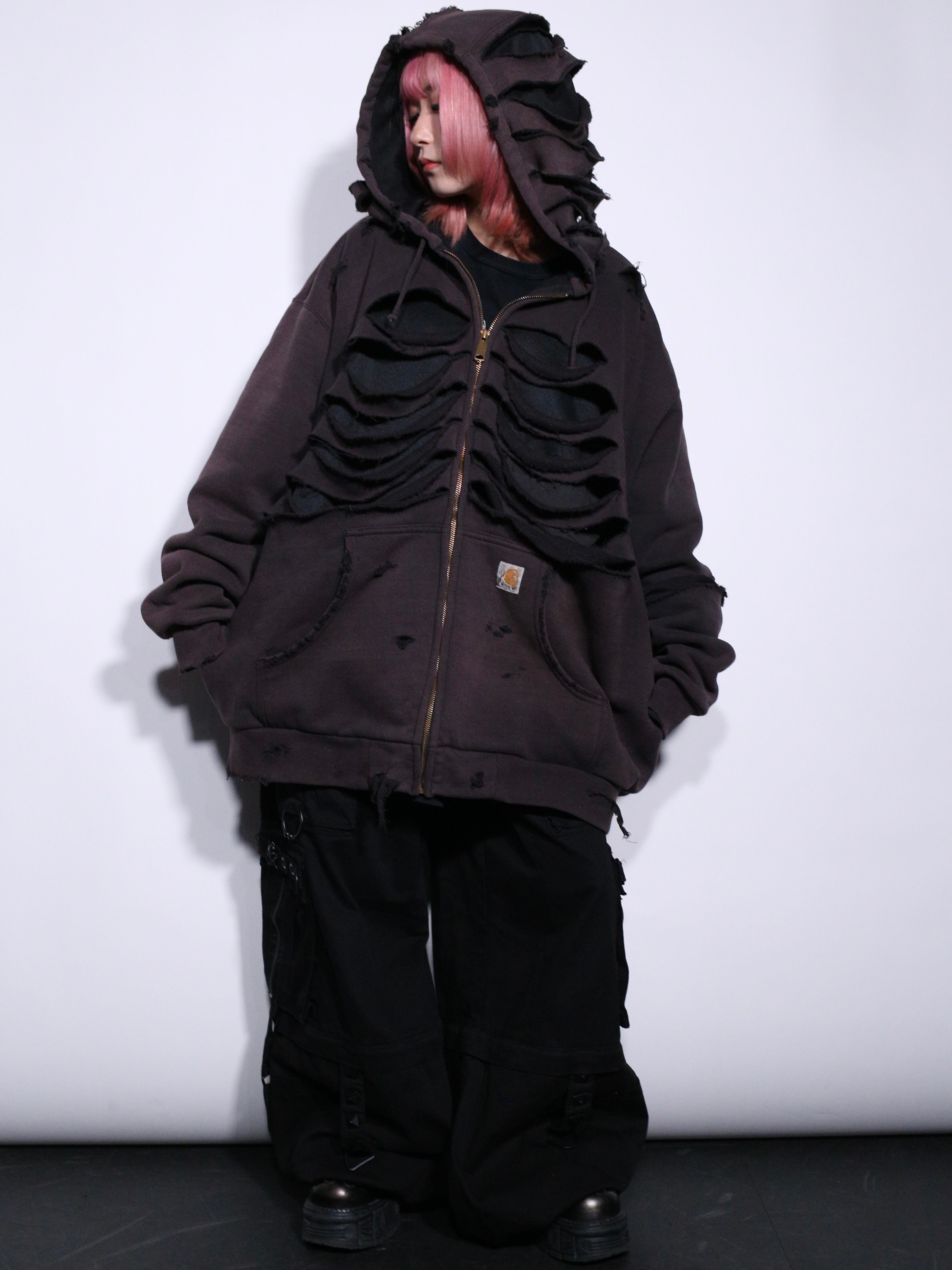 ※弊社のリメイクアイテムは全て古着を元にダメージ、縫製、ペイントなどの加工を施しております。加工によって状態が大きく異なるため、古着に抵抗がある方や神経質な方はご遠慮ください。