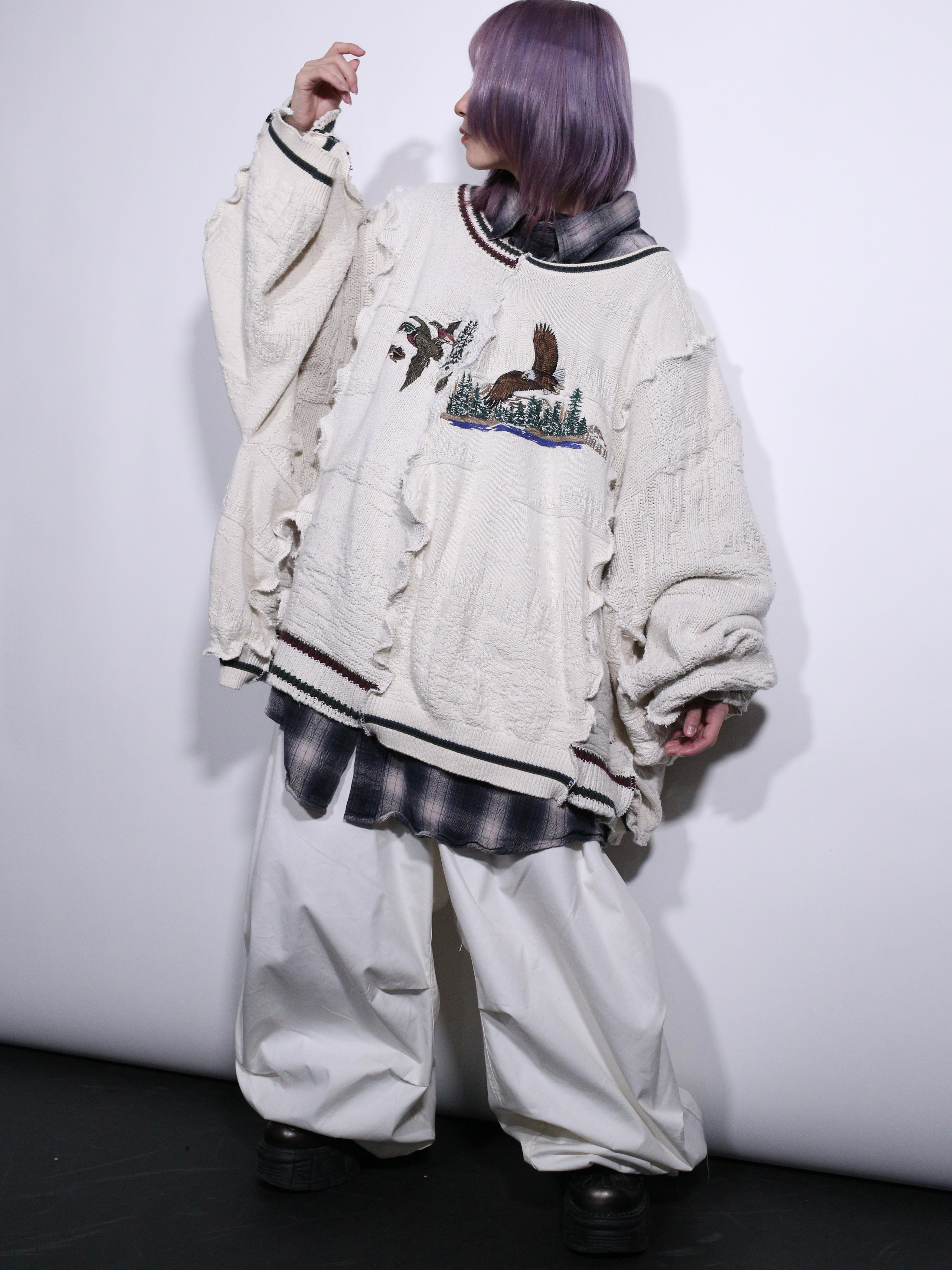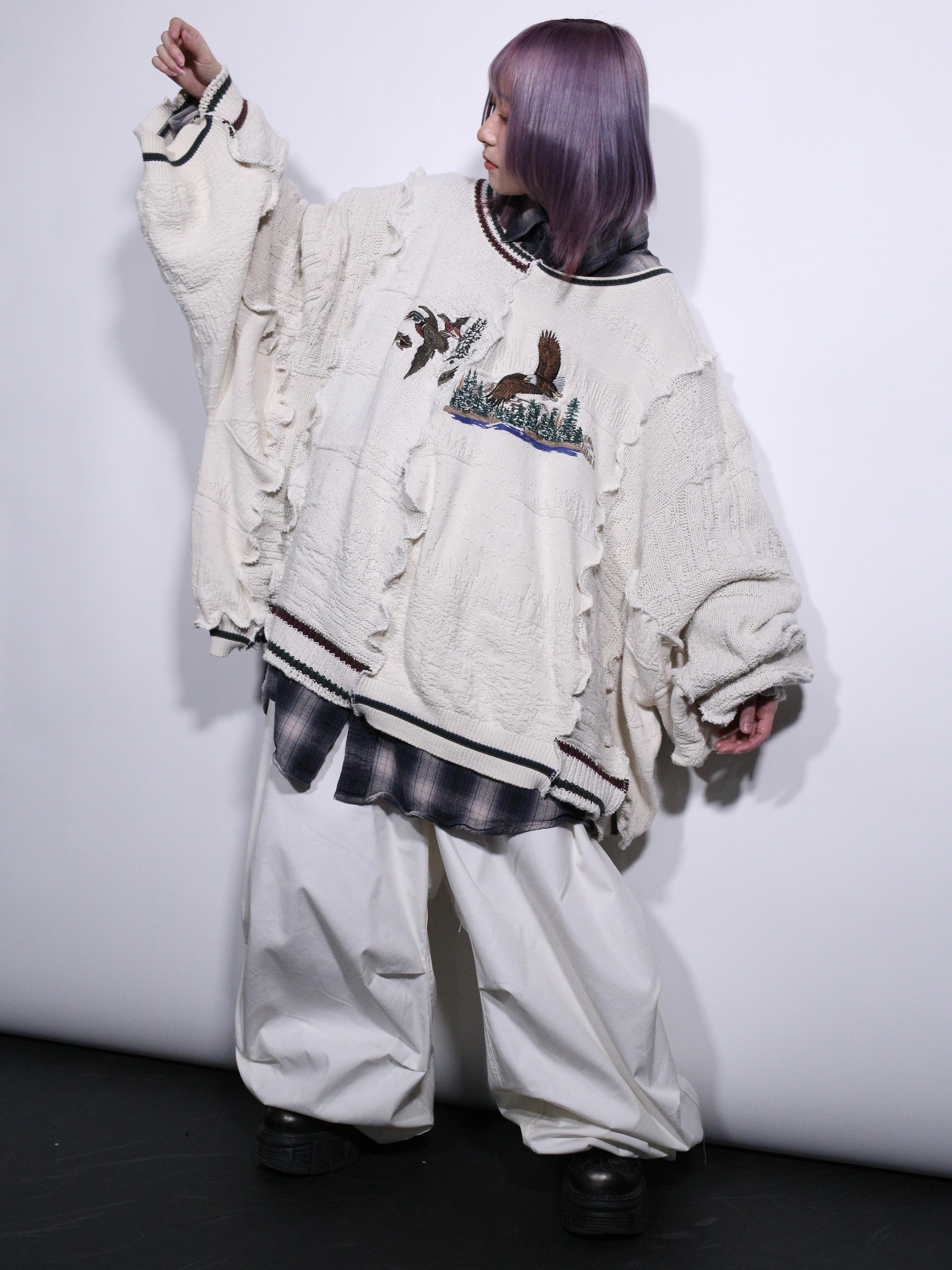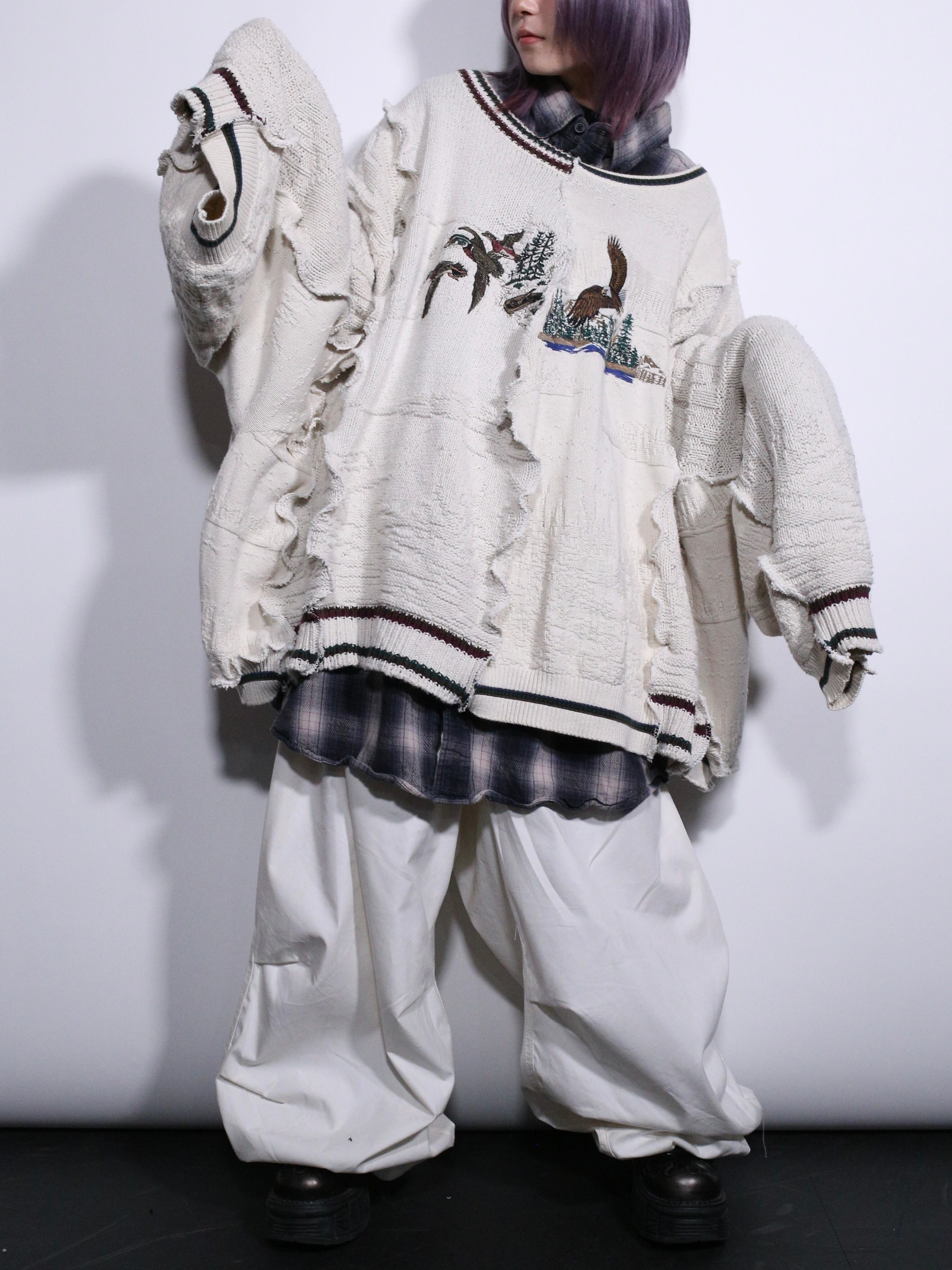 2枚の白ニットをドッキングした贅沢すぎるリメイクアイテムをご用意しました。