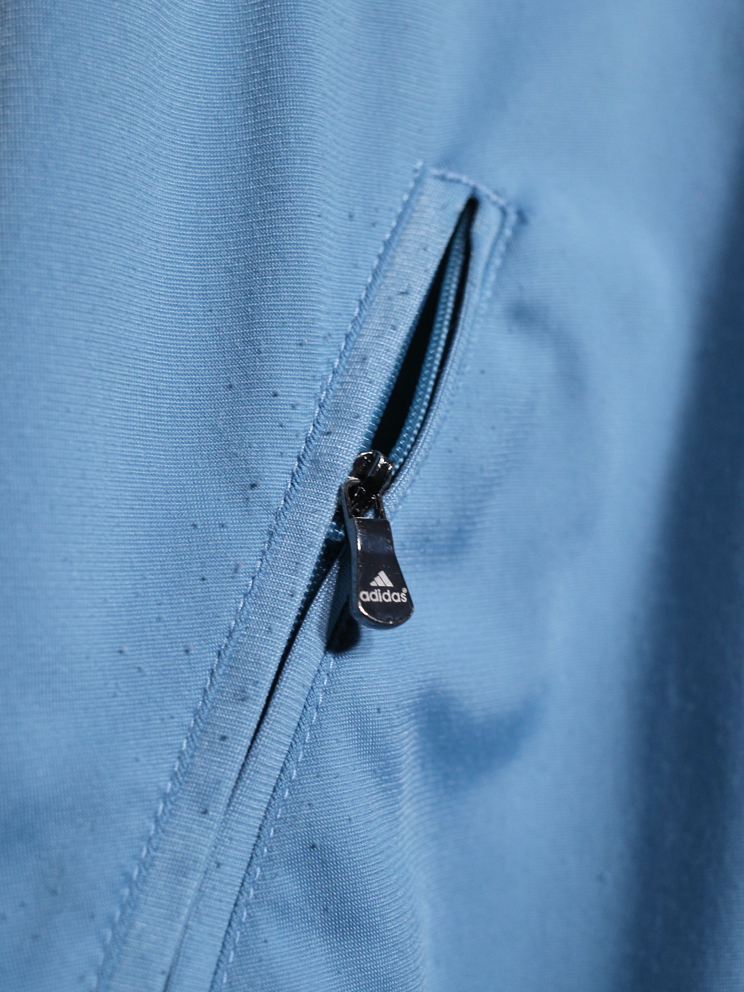 透き通るような美しい水色に全身を包み込んだアディダストラックジャケットをご紹介。