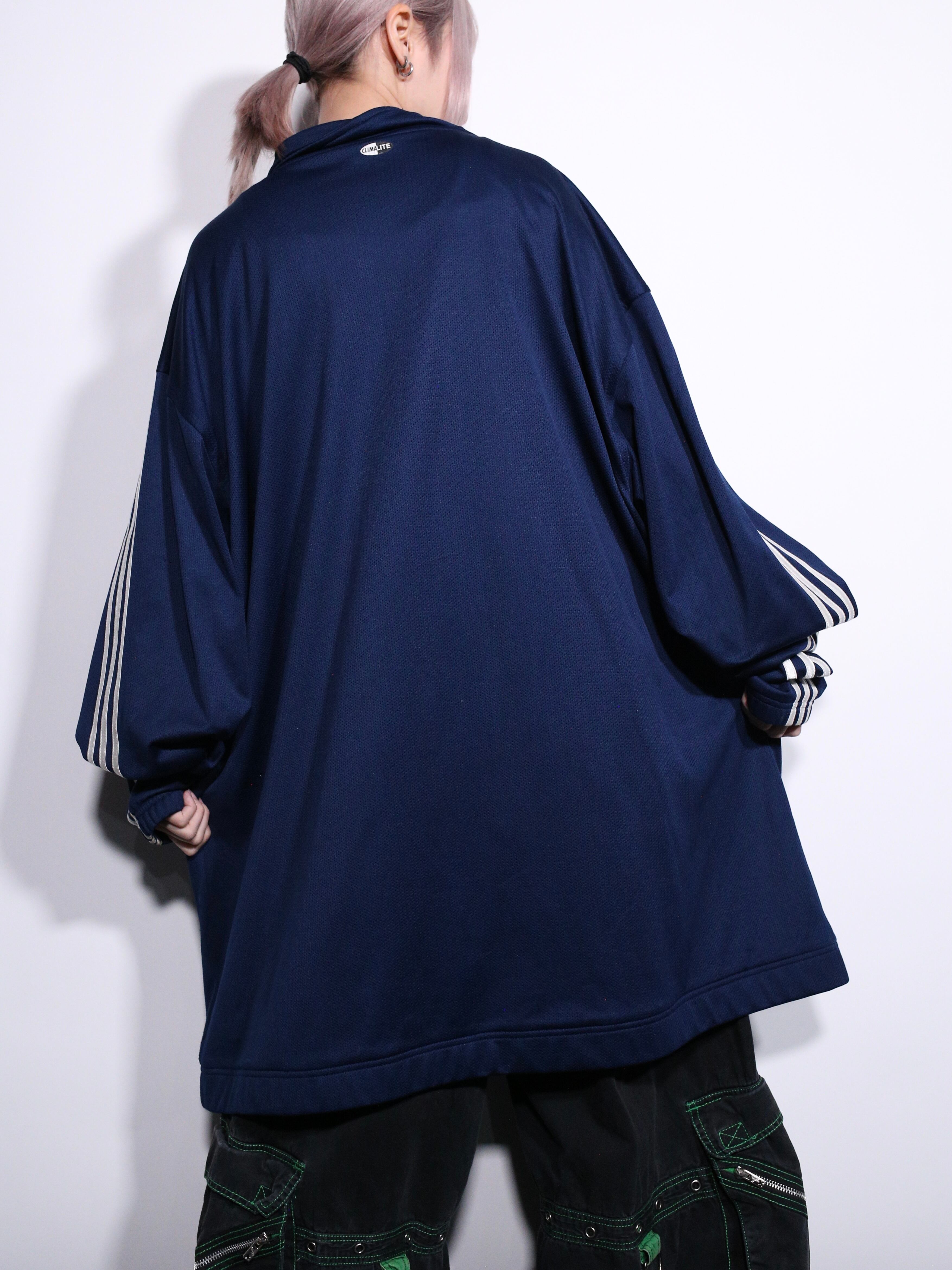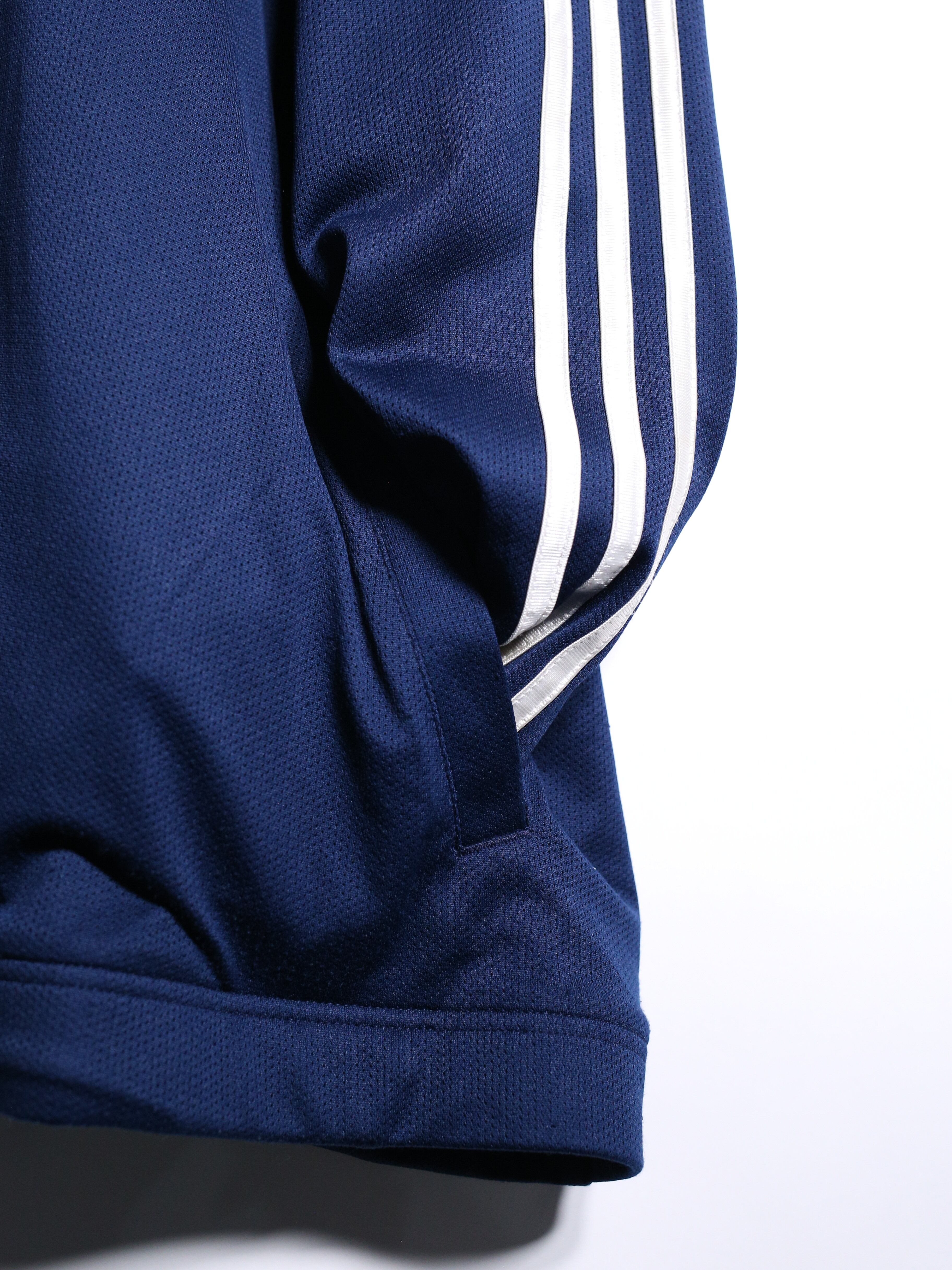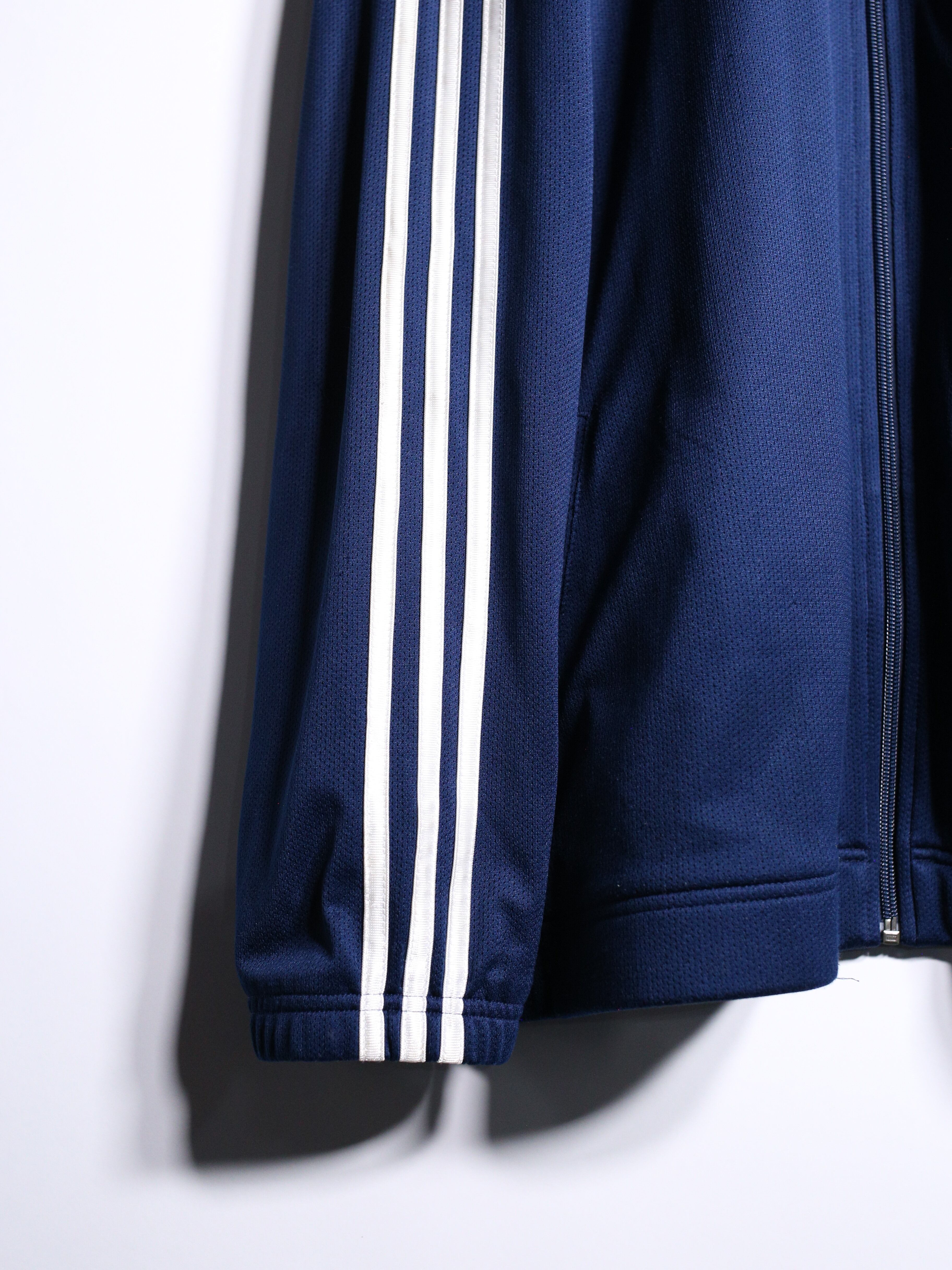 光沢ののったジャージ生地と刺繍ロゴの立体感、品のあるネイビーカラーで大人ムードたっぷりなトラックジャケットです〜
