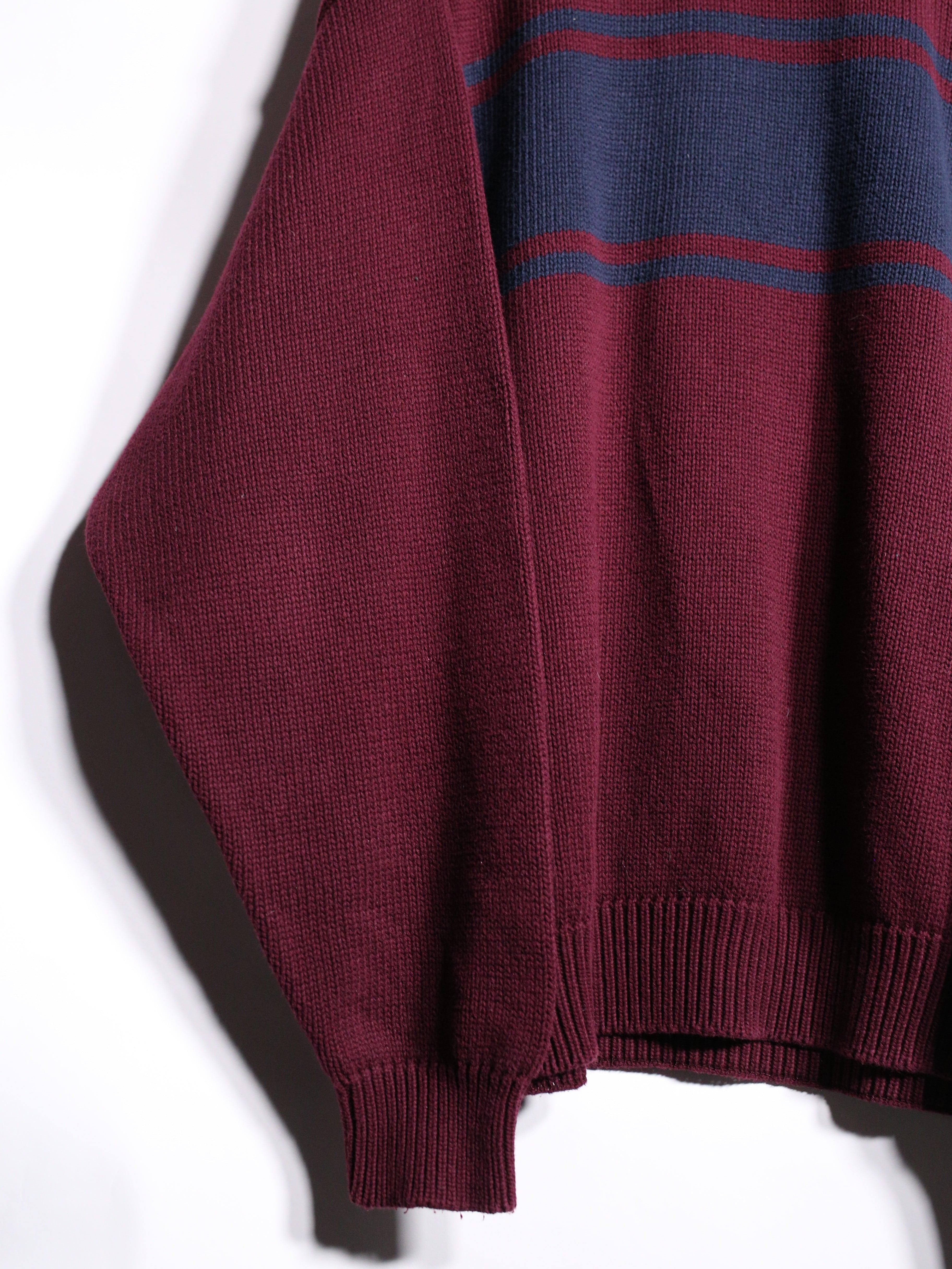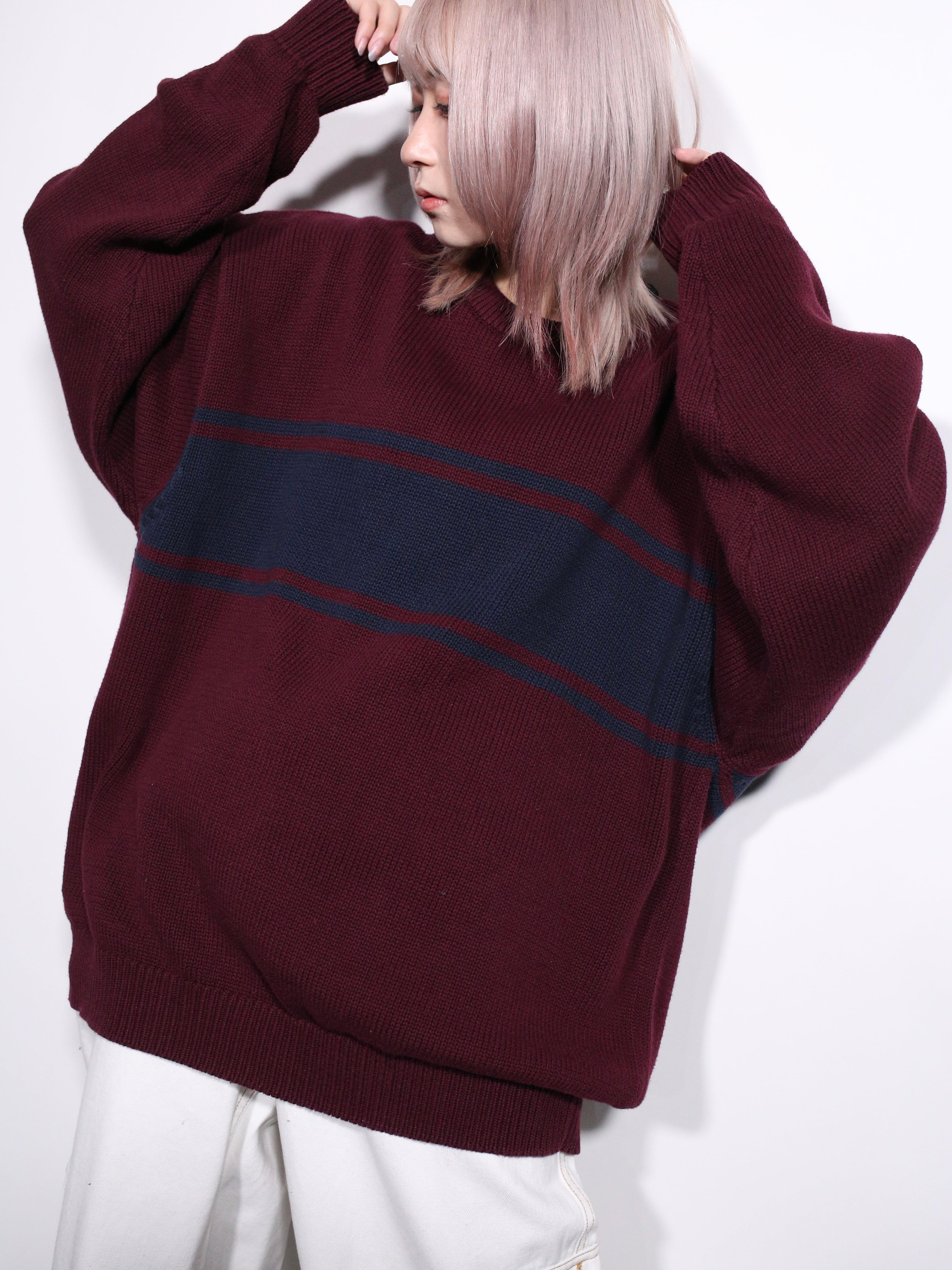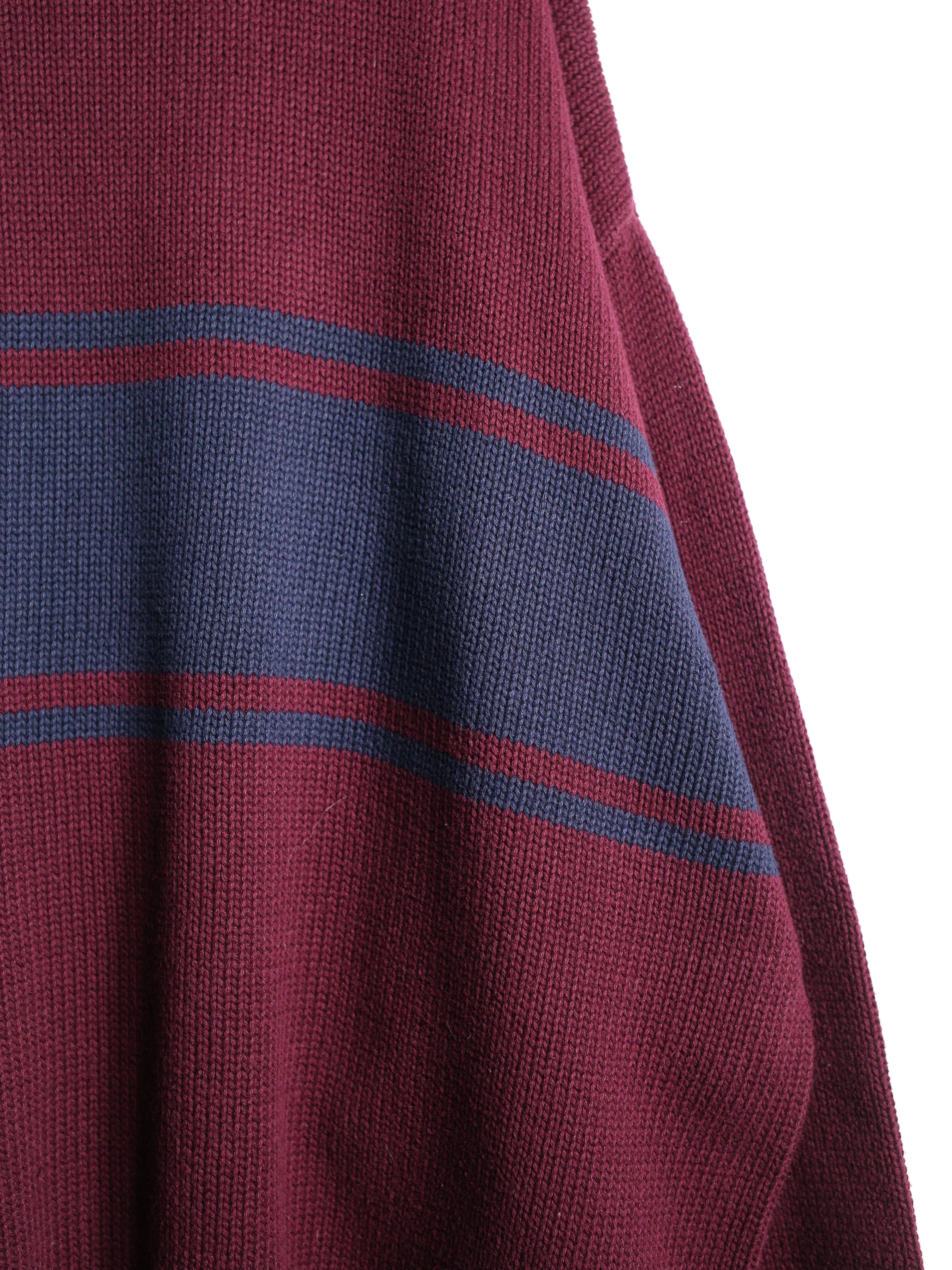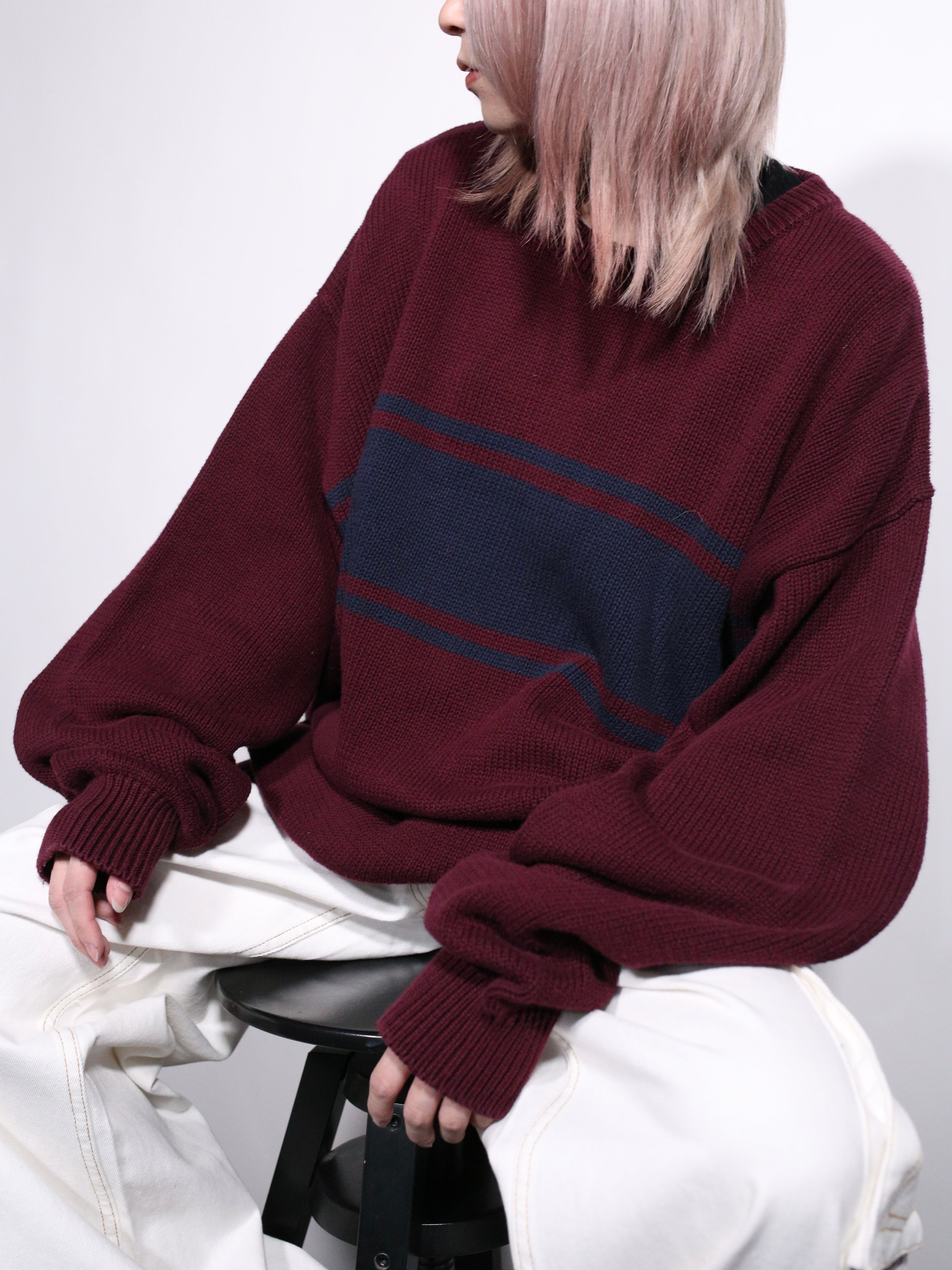 深みのある”ボルドー×ネイビー”の極太ラインと大人ムード漂うコットンニットをご紹介。