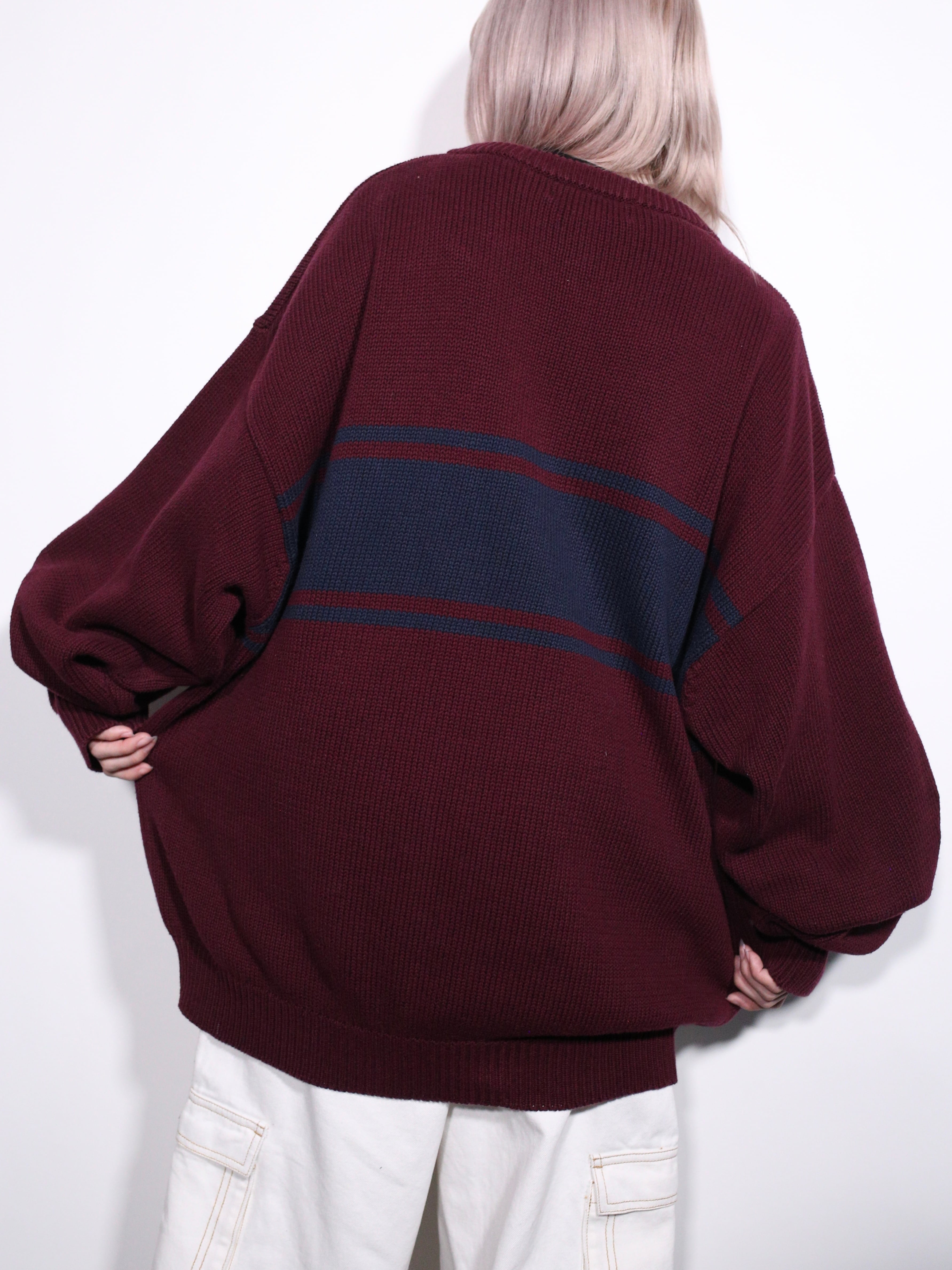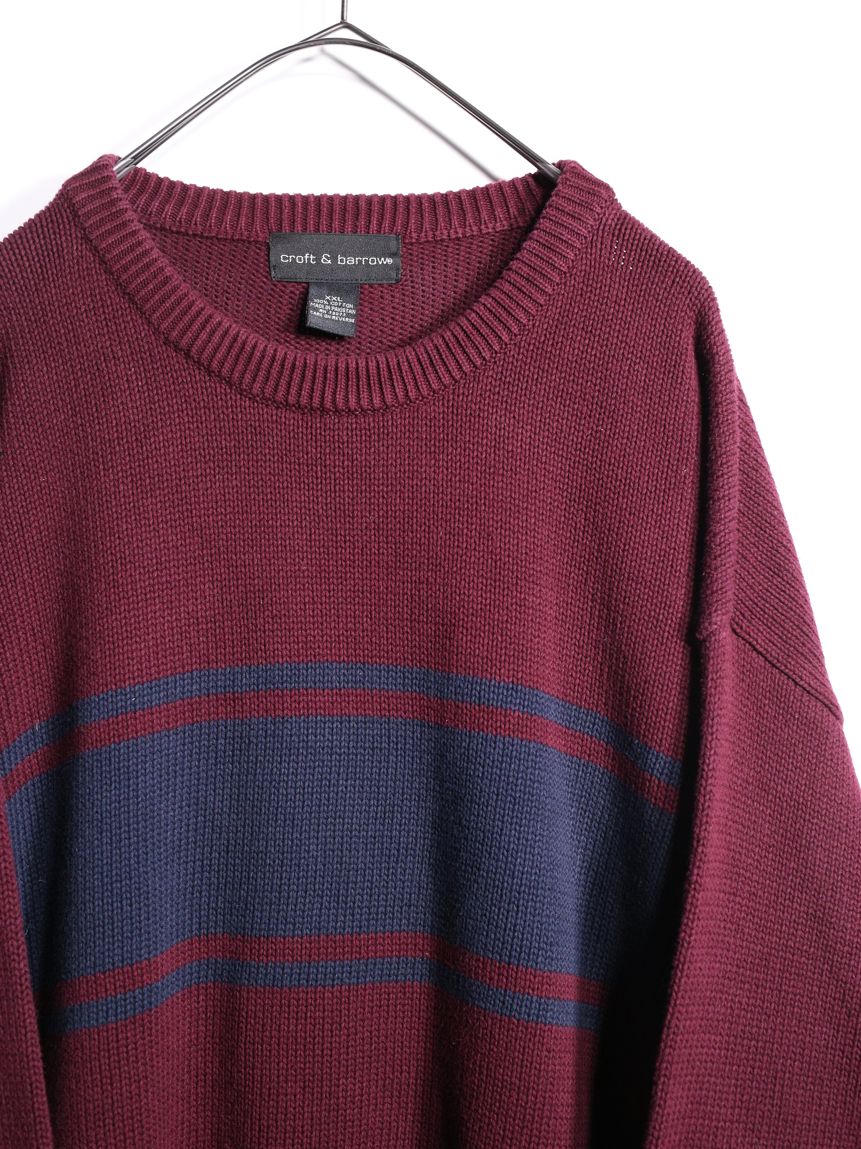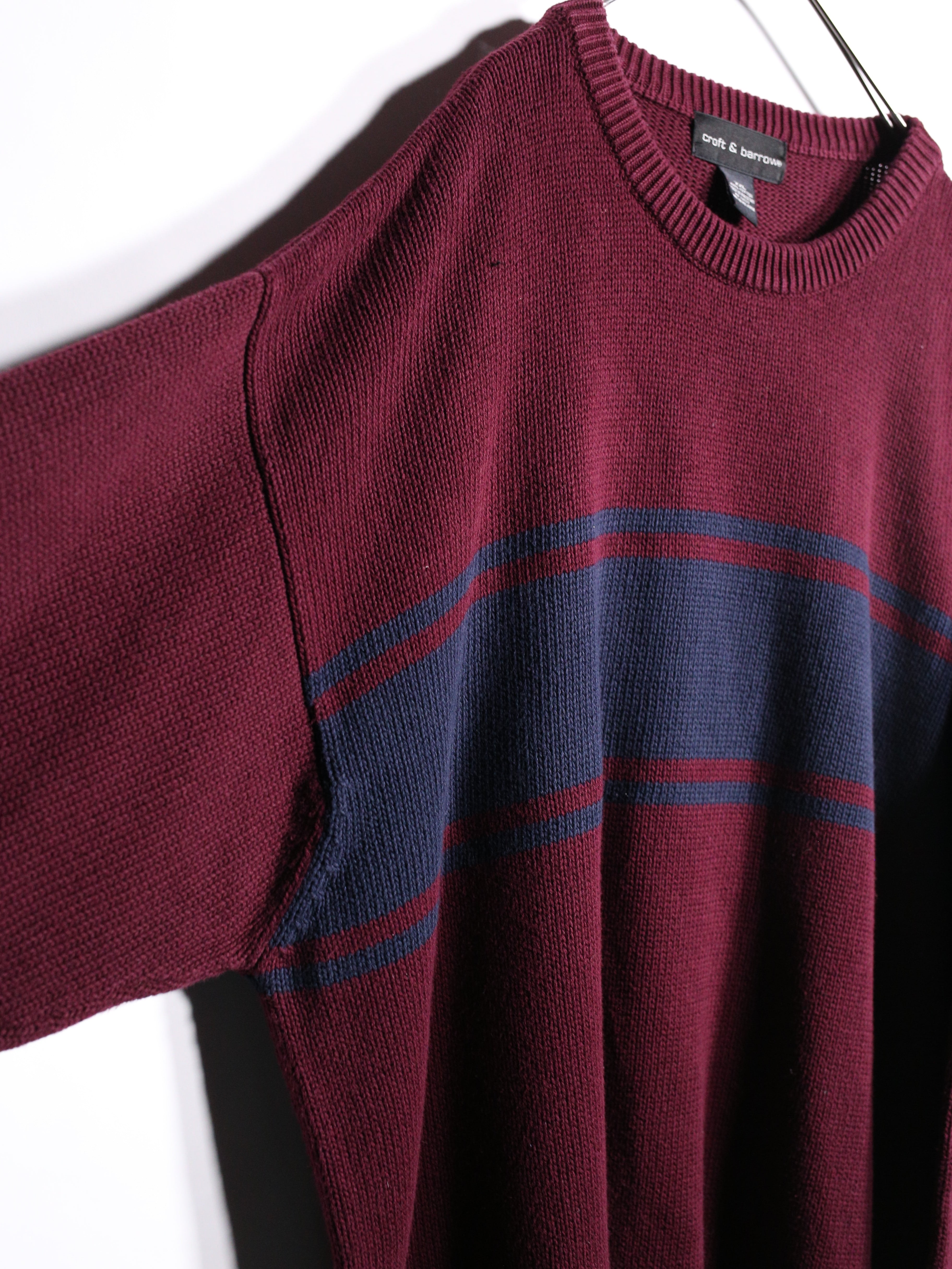 深みのある”ボルドー×ネイビー”の極太ラインと大人ムード漂うコットンニットをご紹介。