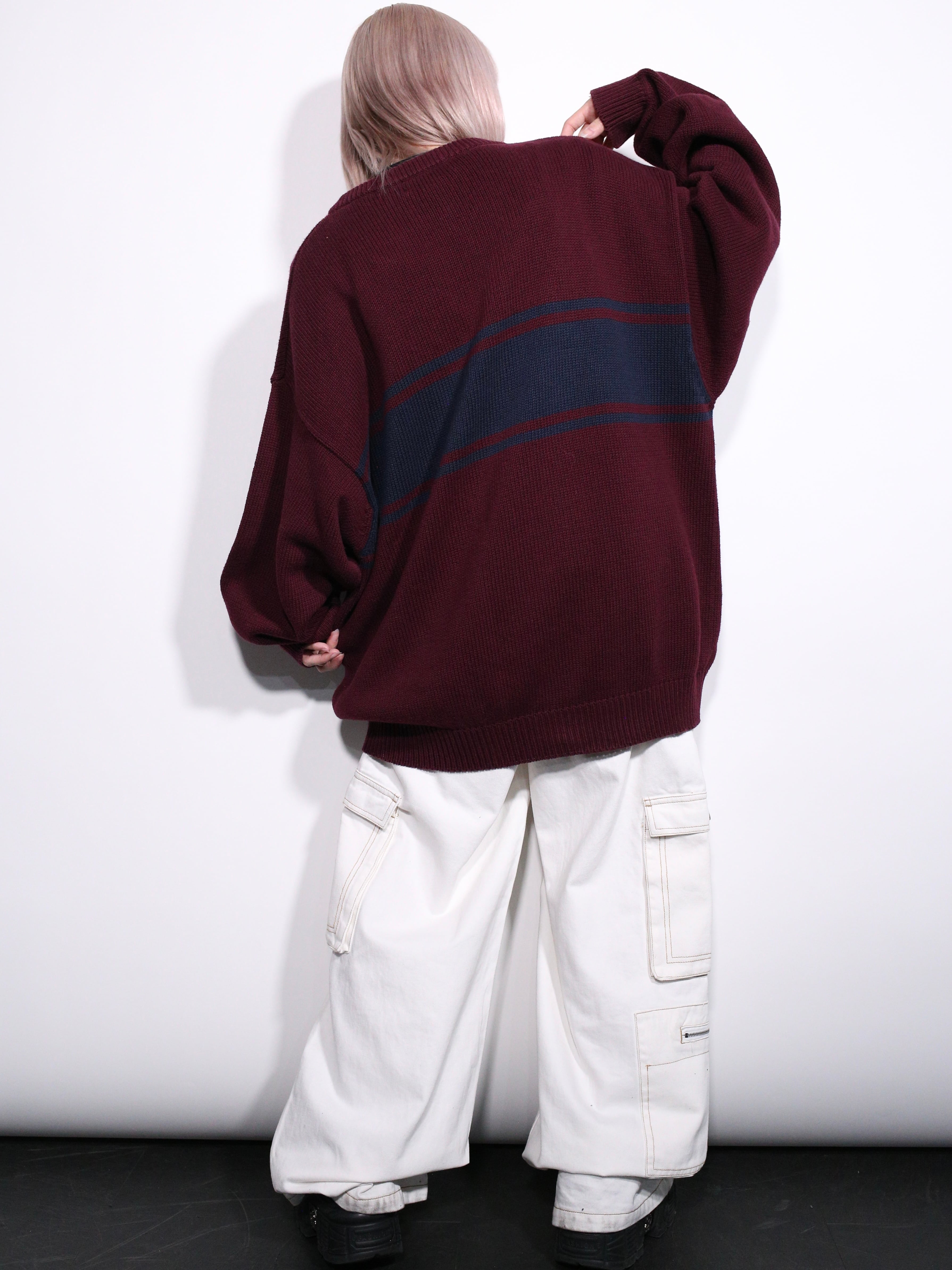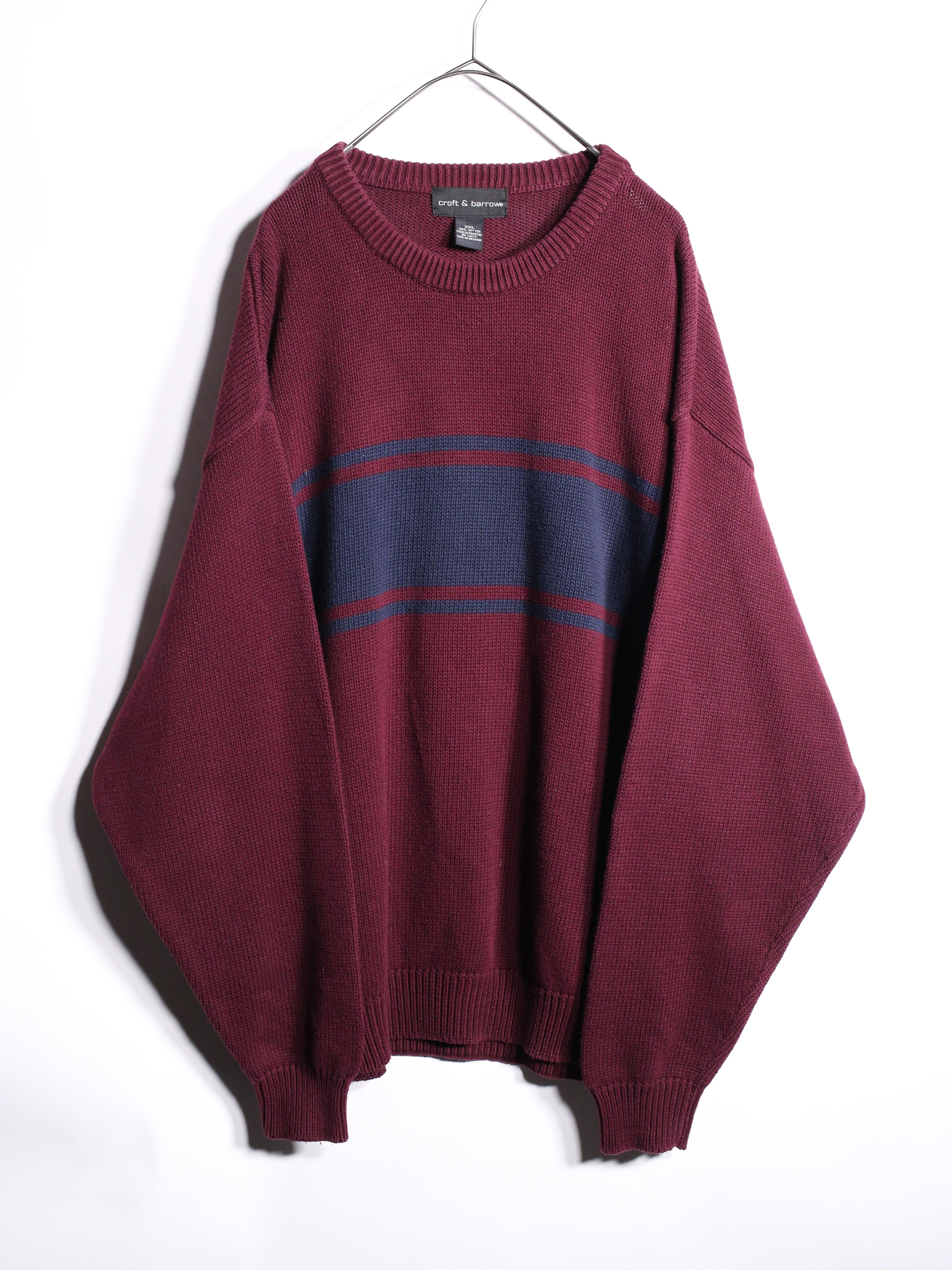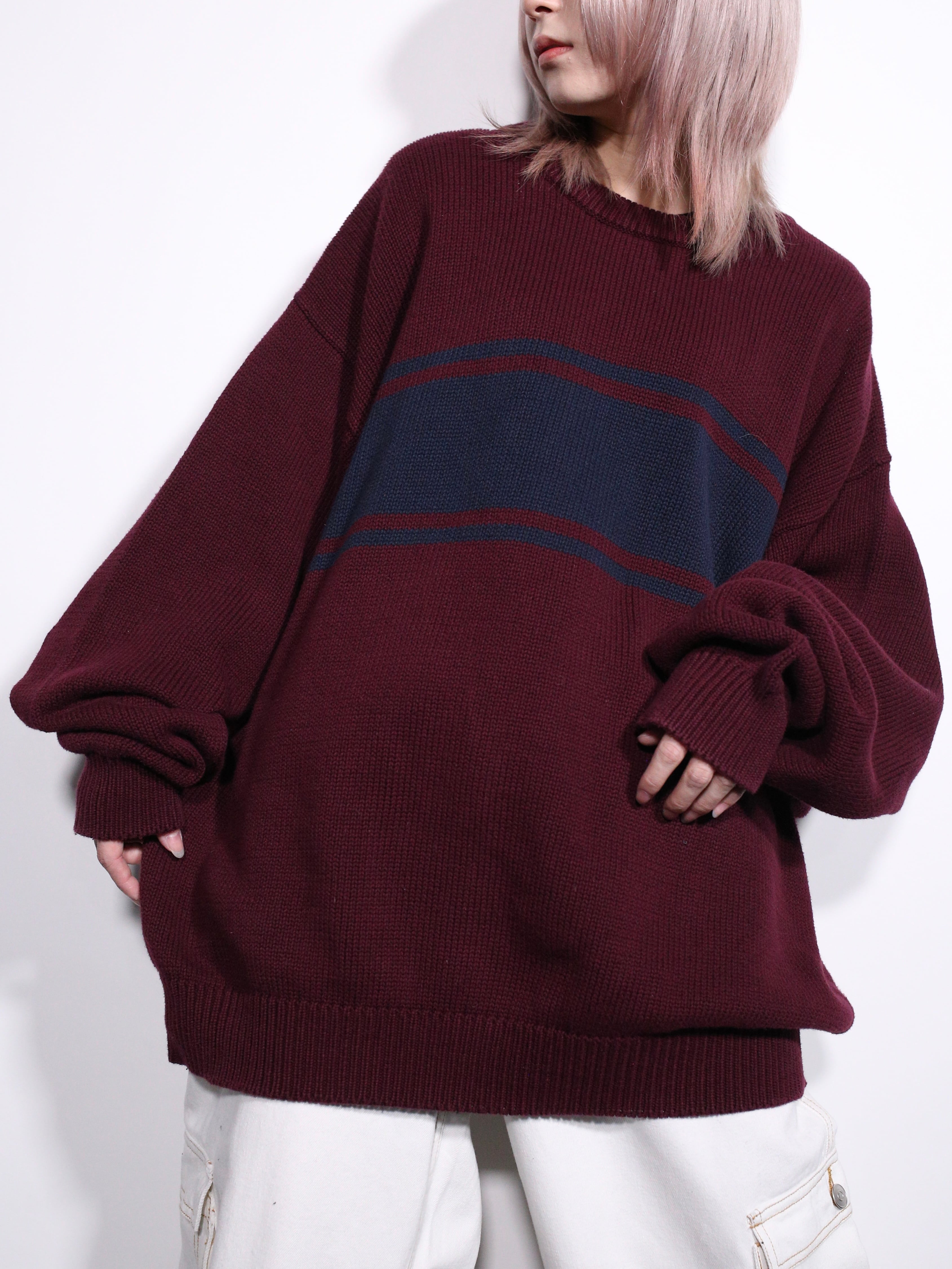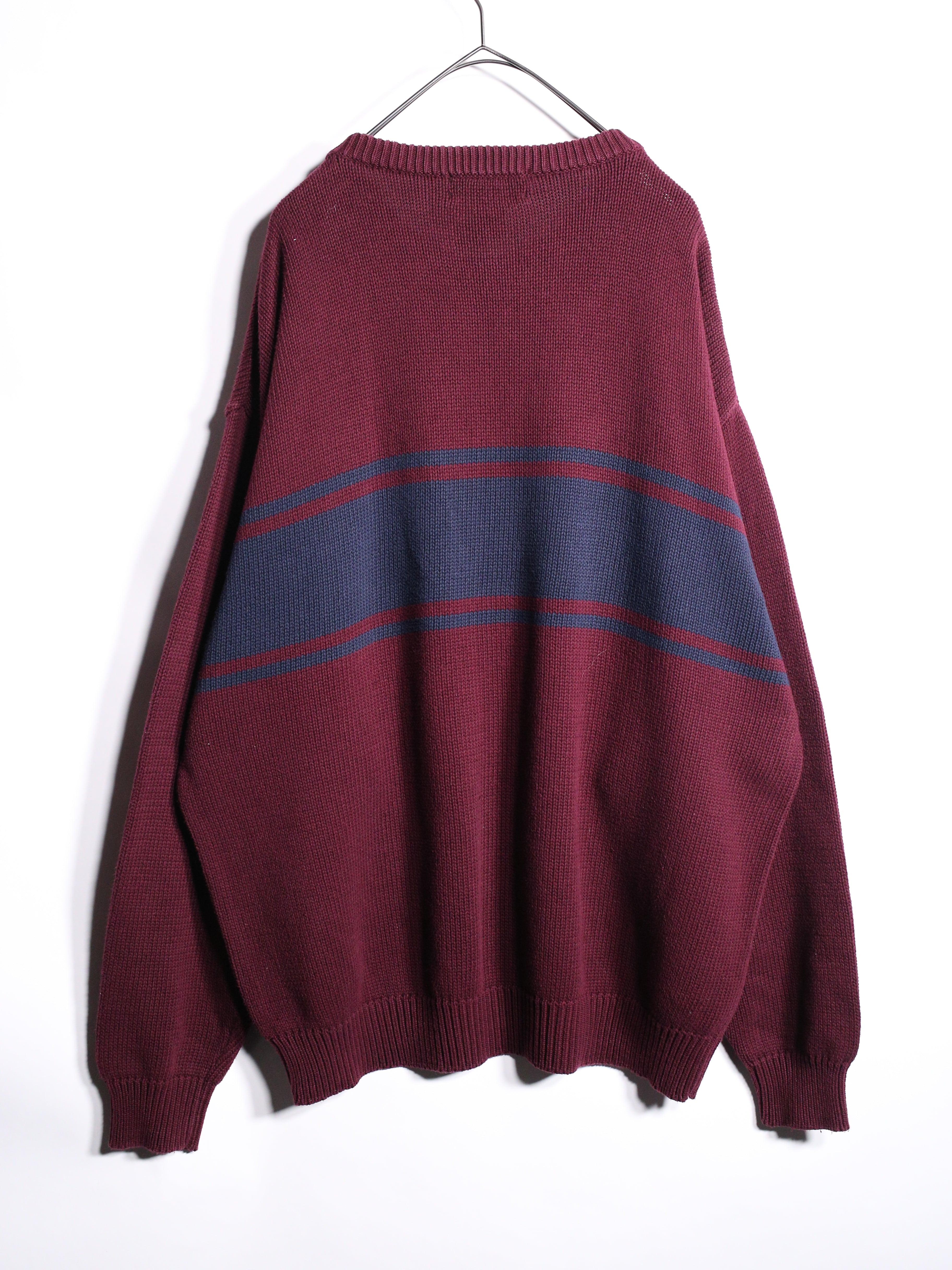 深みのある”ボルドー×ネイビー”の極太ラインと大人ムード漂うコットンニットをご紹介。