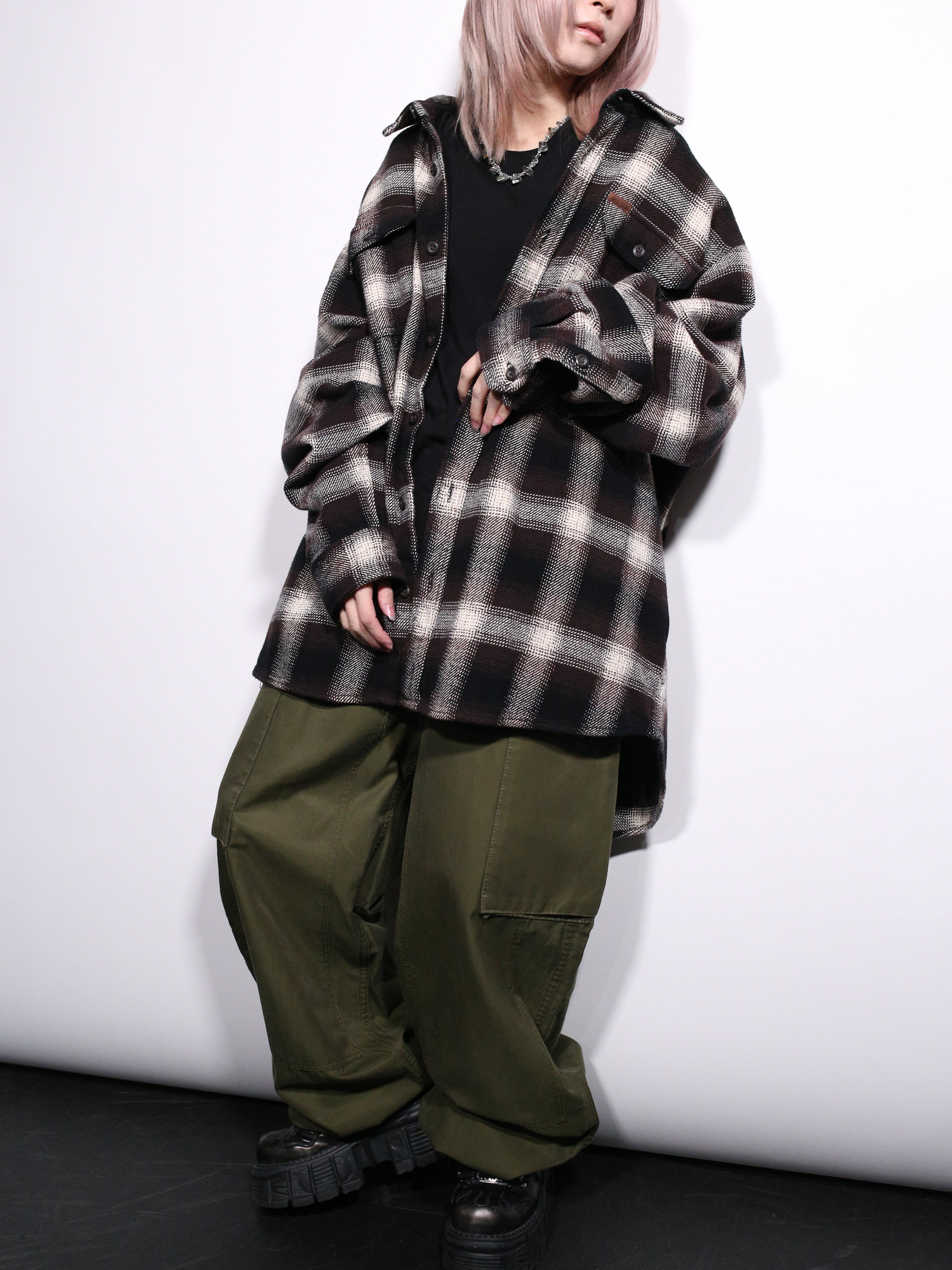 主張しすぎないチェック柄なのでどんなアイテムとも自然と馴染み、カジュアルに合わせても良し、腰巻きにしてグランジコーデにも持っていける汎用性の高さ。