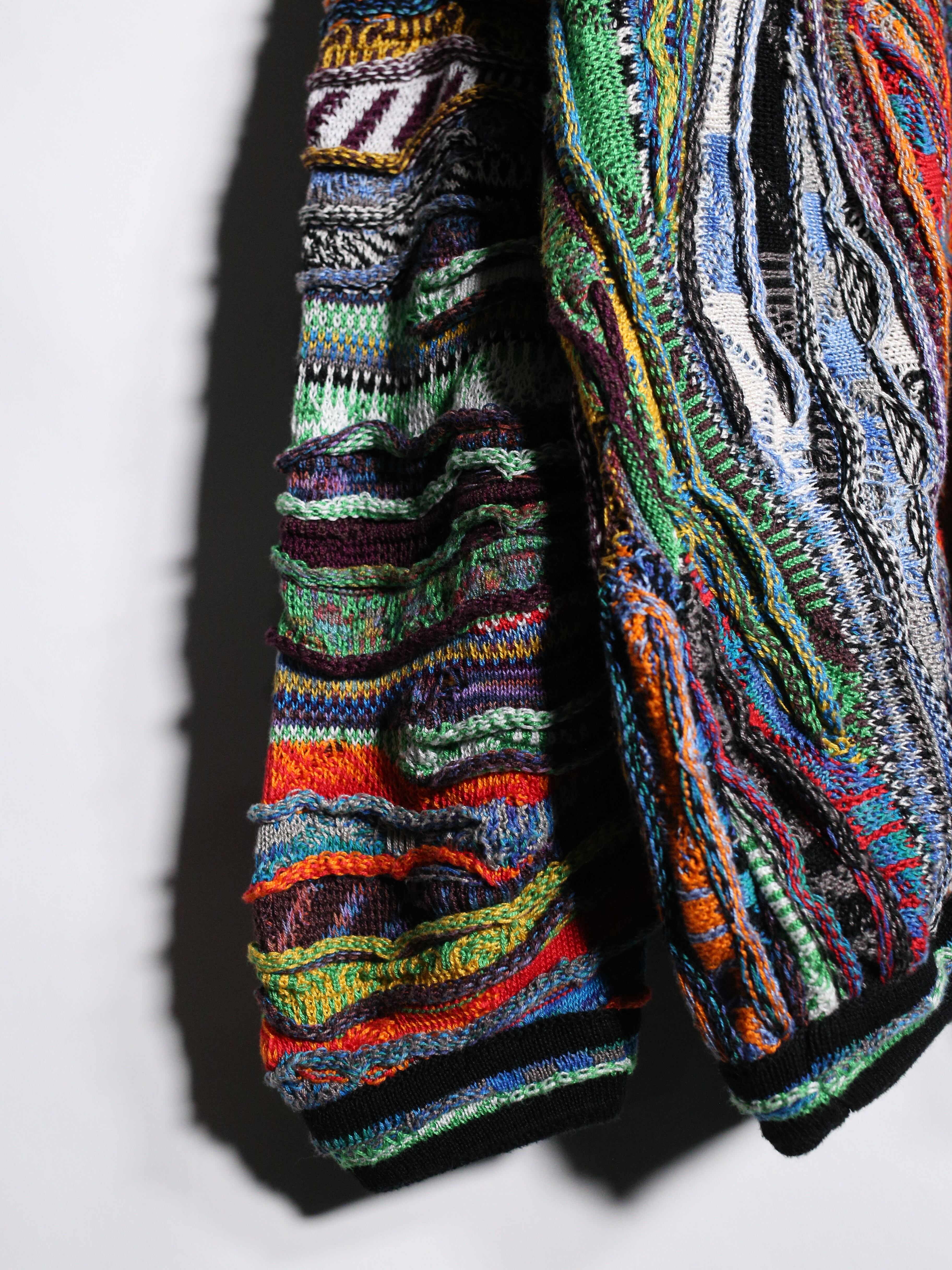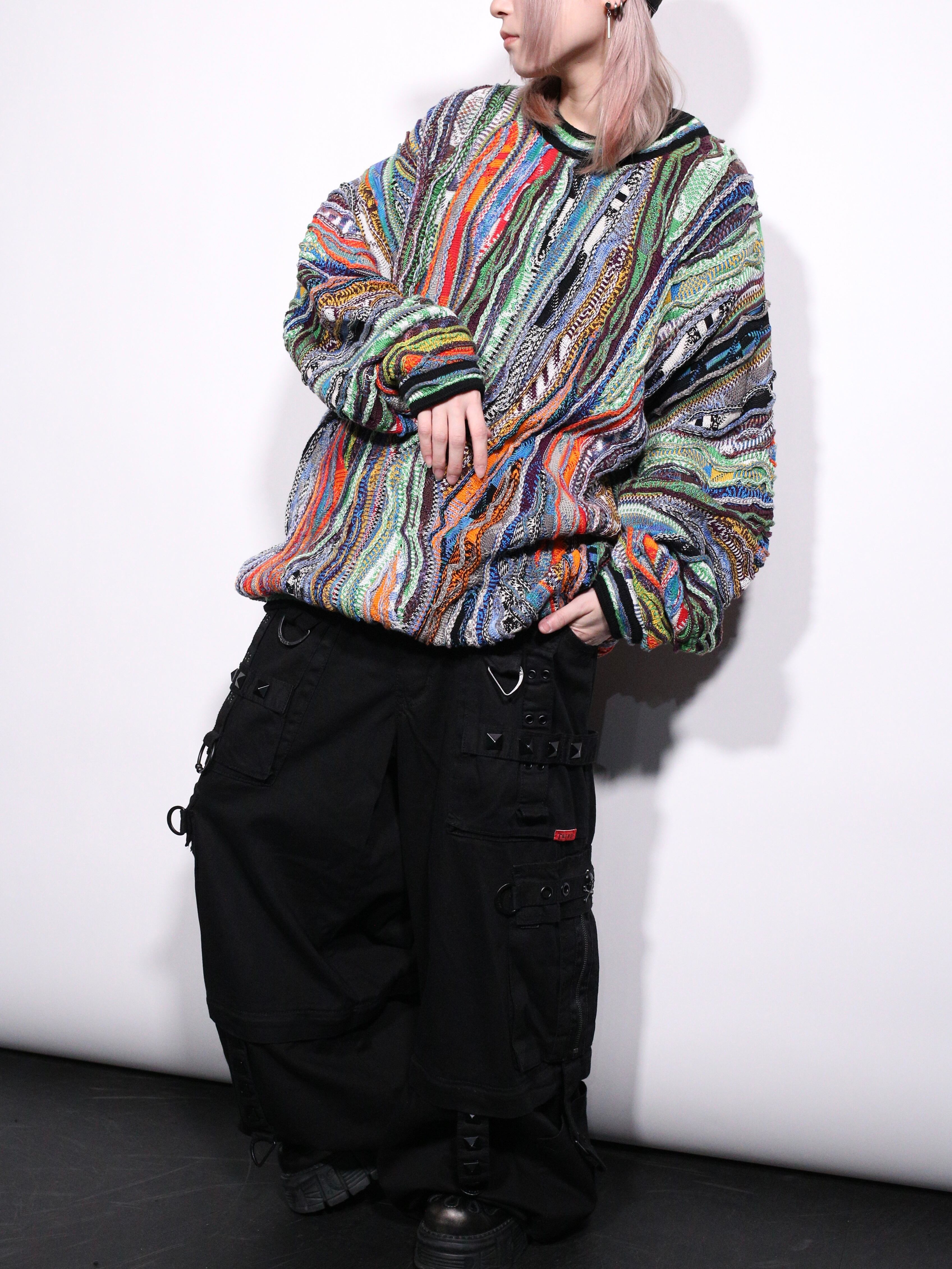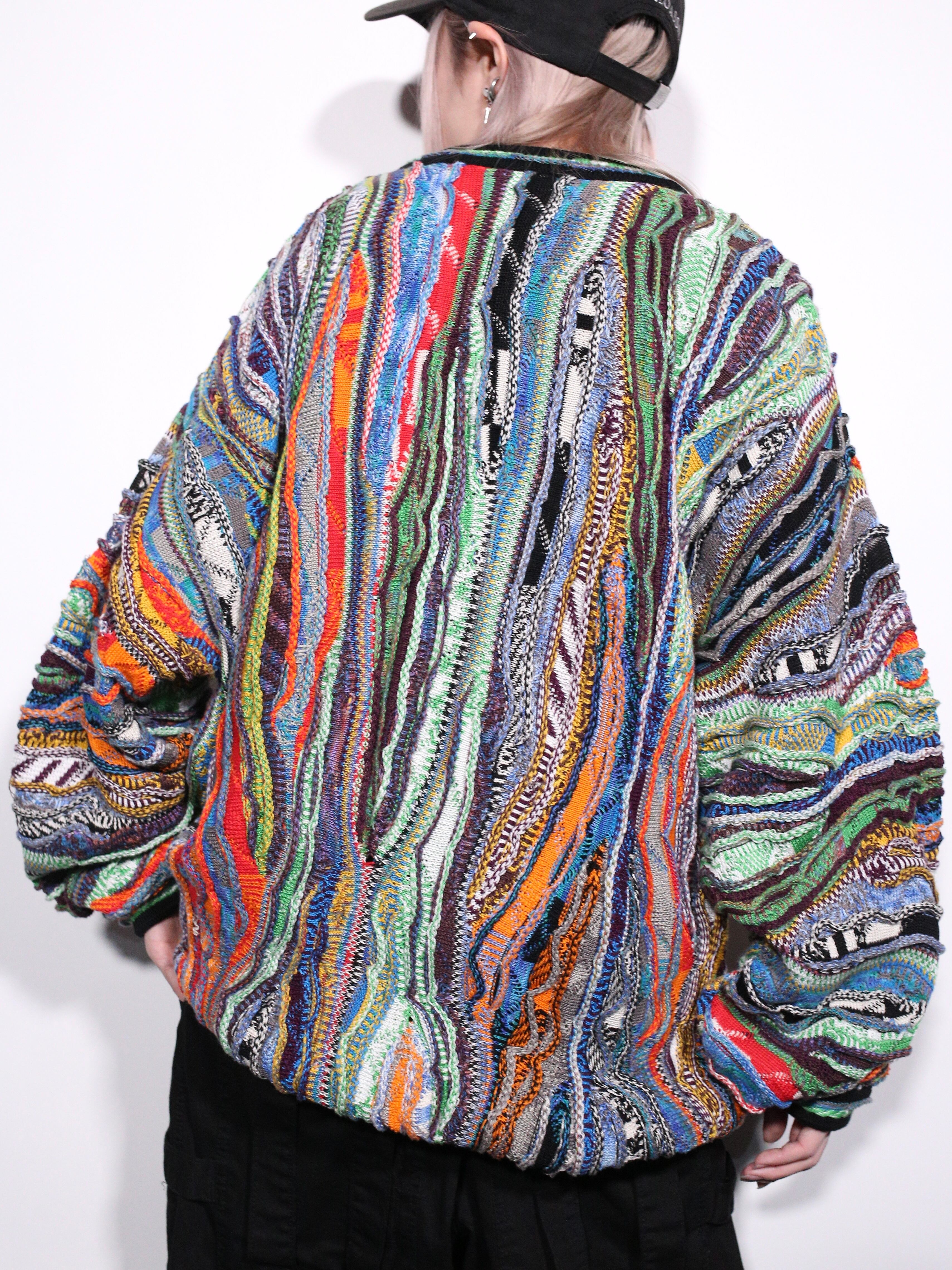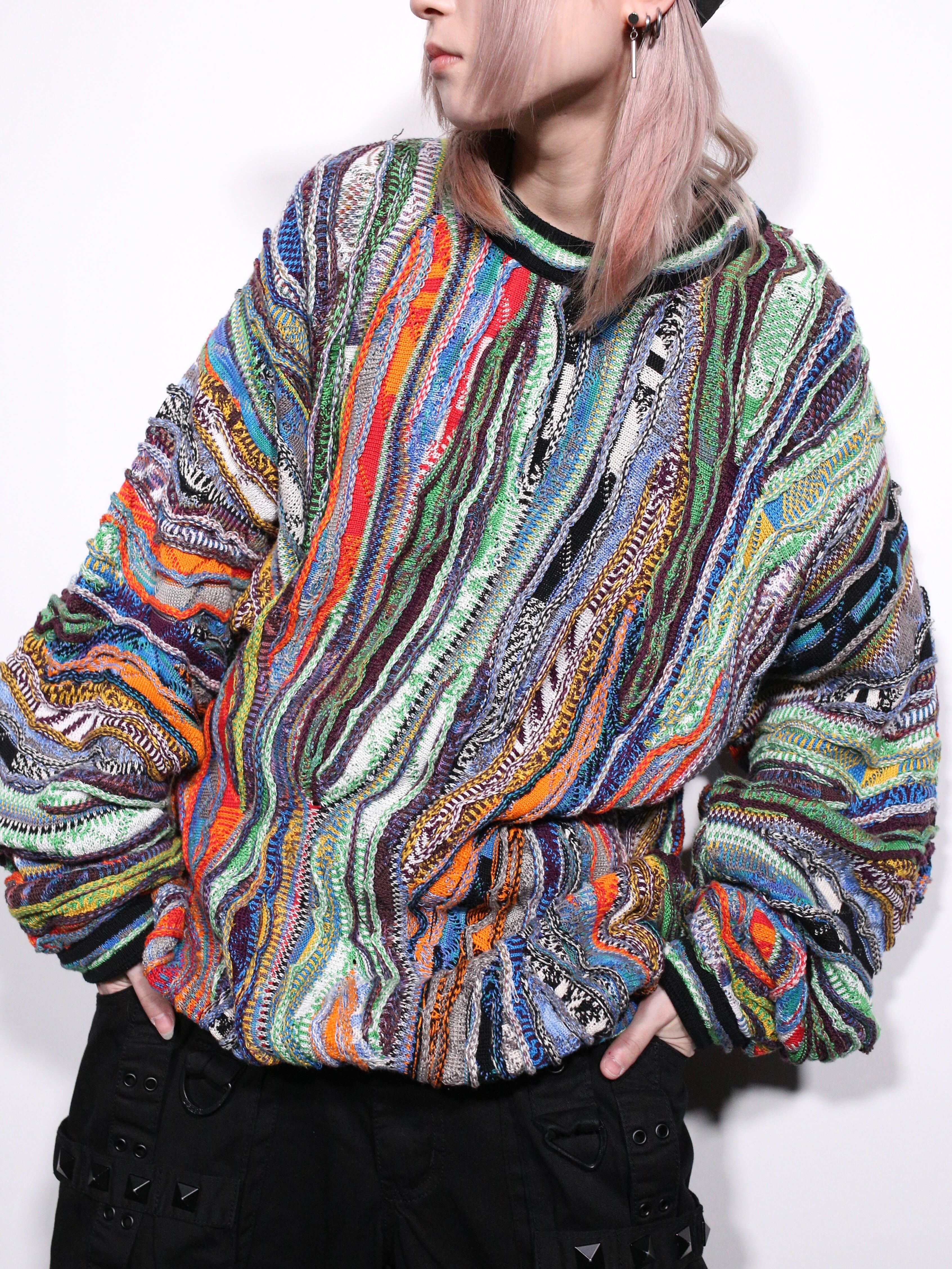 立体的な畝とサイケデリックな色味が根強い人気を放つ"3Dニット"より、色鮮やかで禍々しいオーラを放ちまくるスペシャルピースの登場です 。