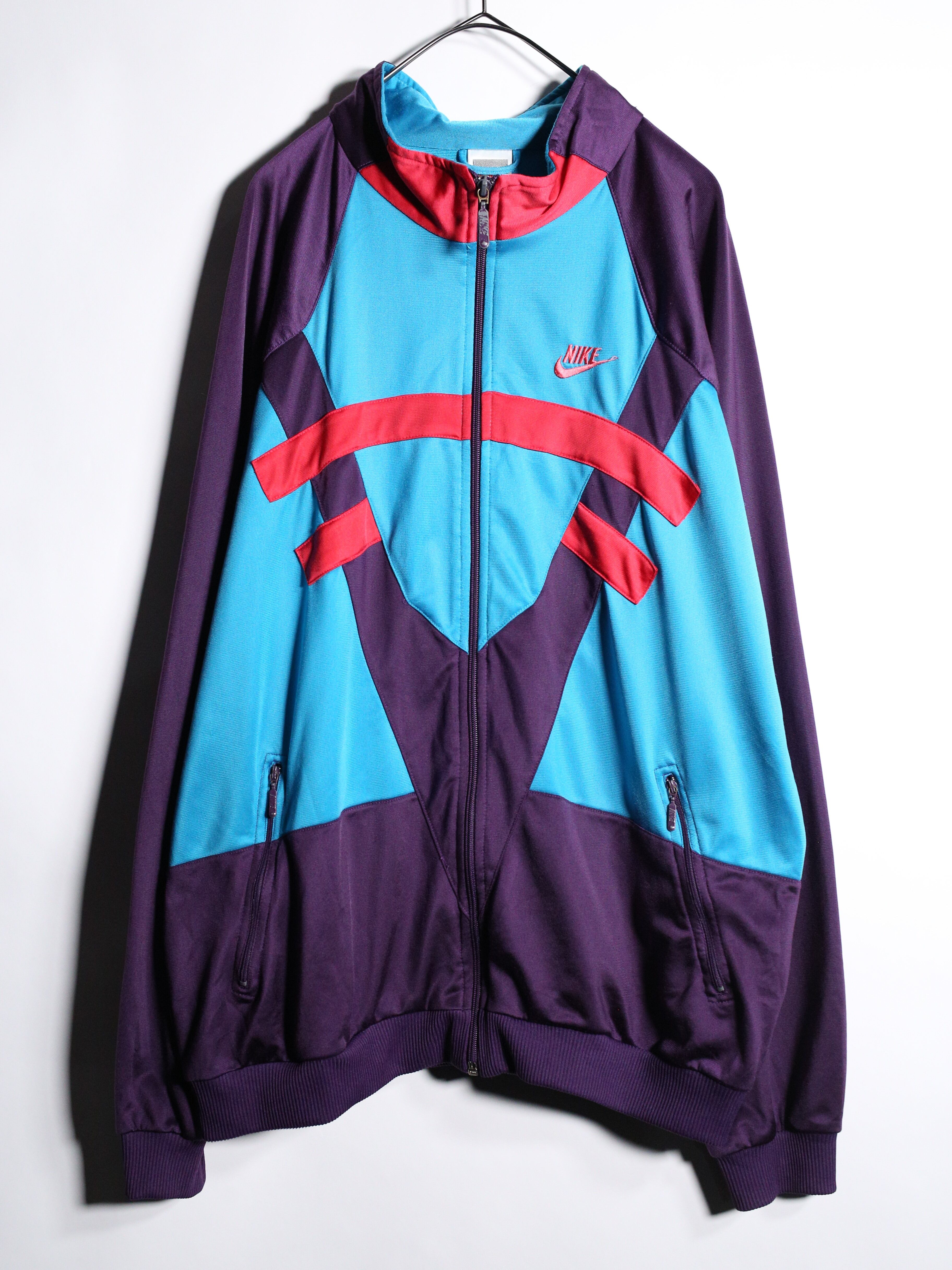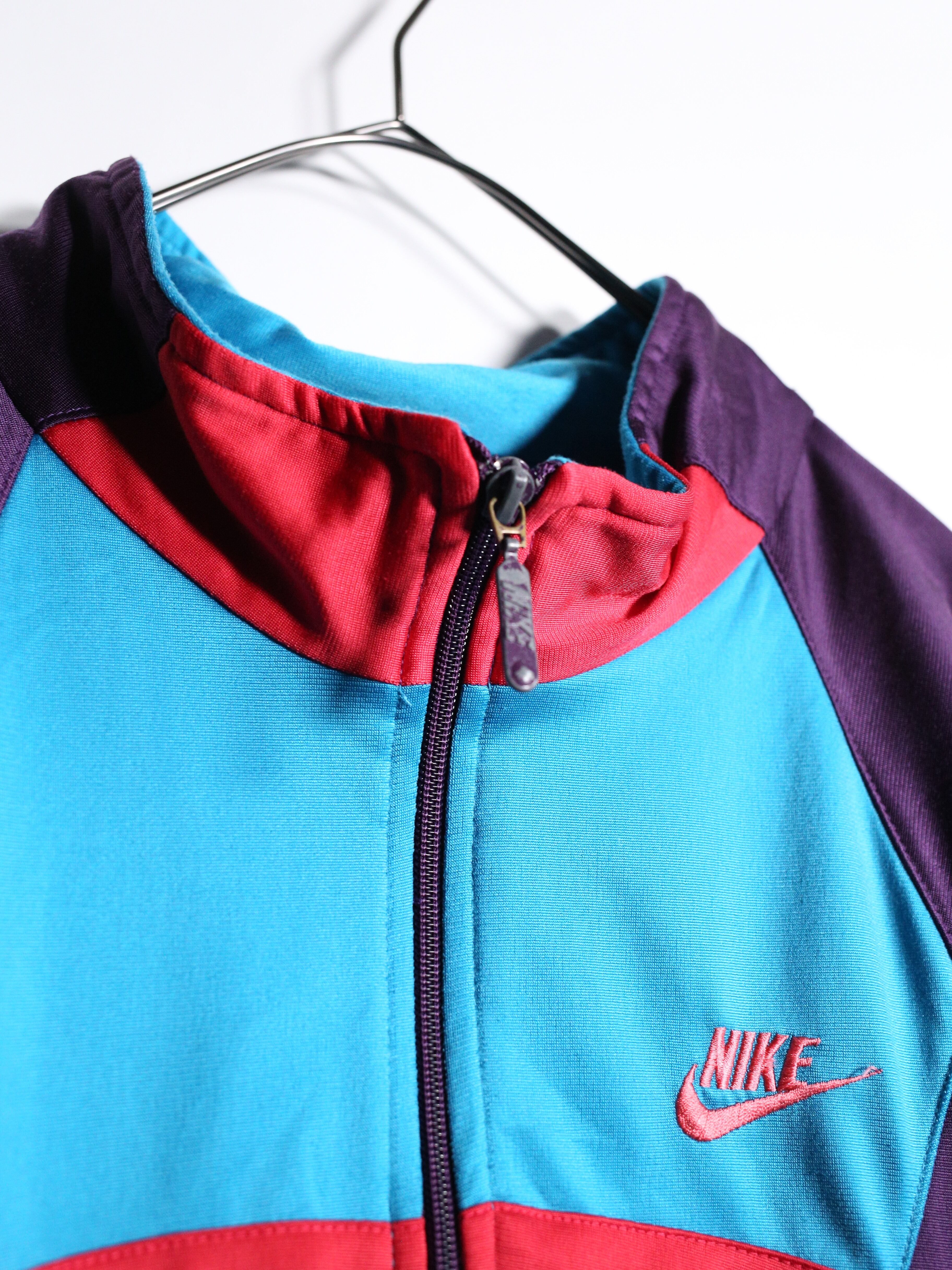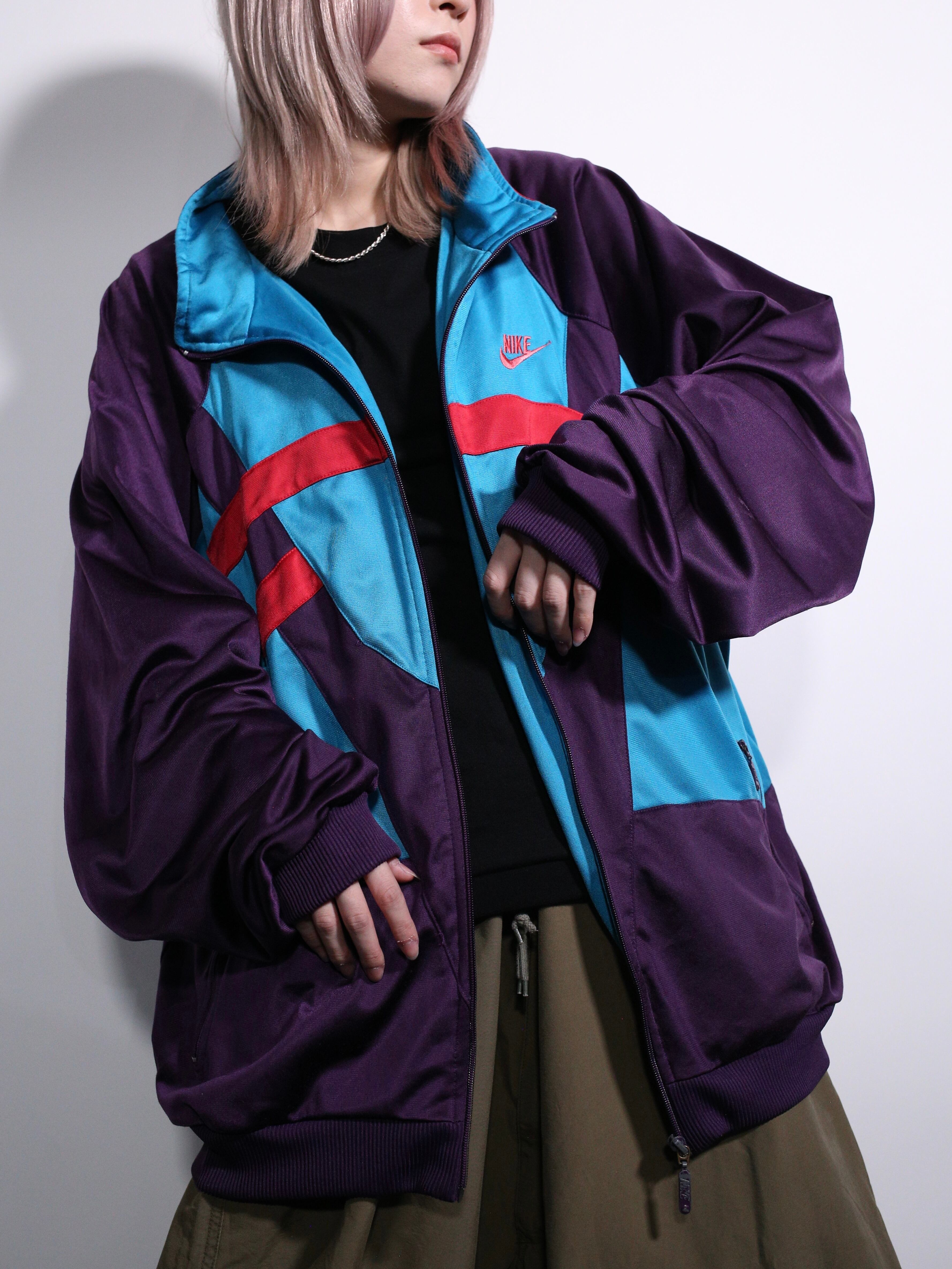 90年代NIKEの”パープル・ターコイズ・レッド”が複雑に交差するサイケデリックな配色がインパクト抜群の一着。
