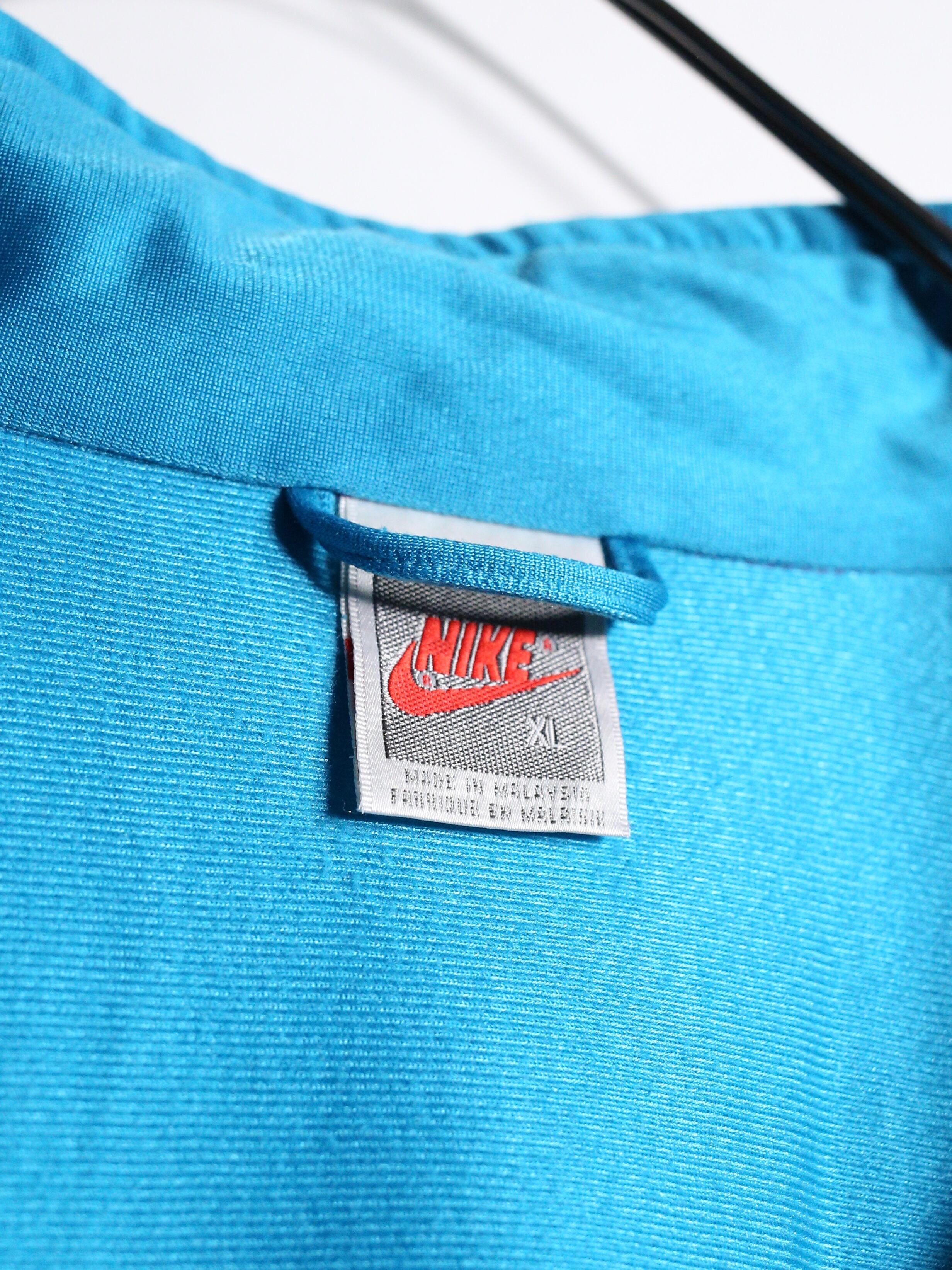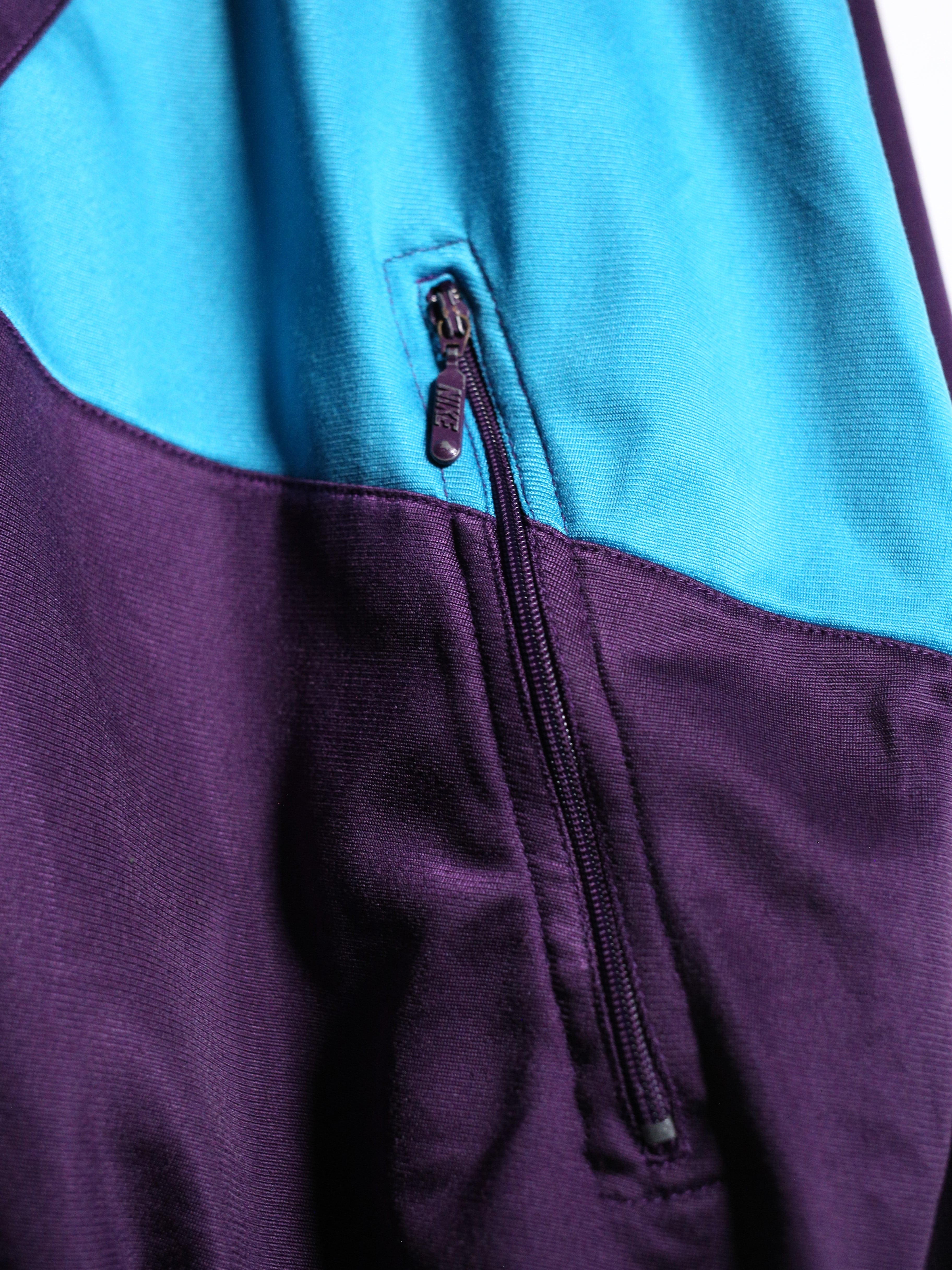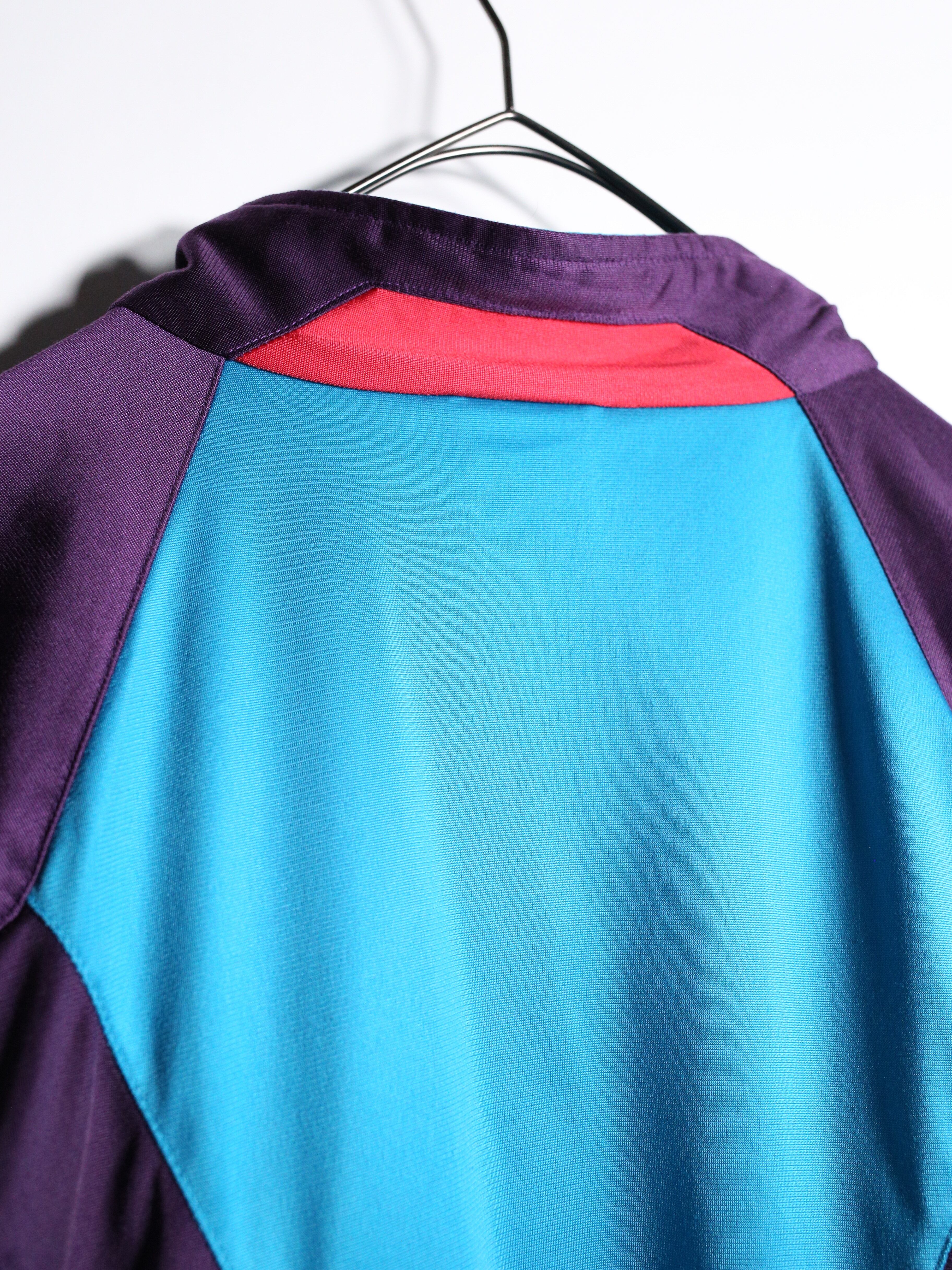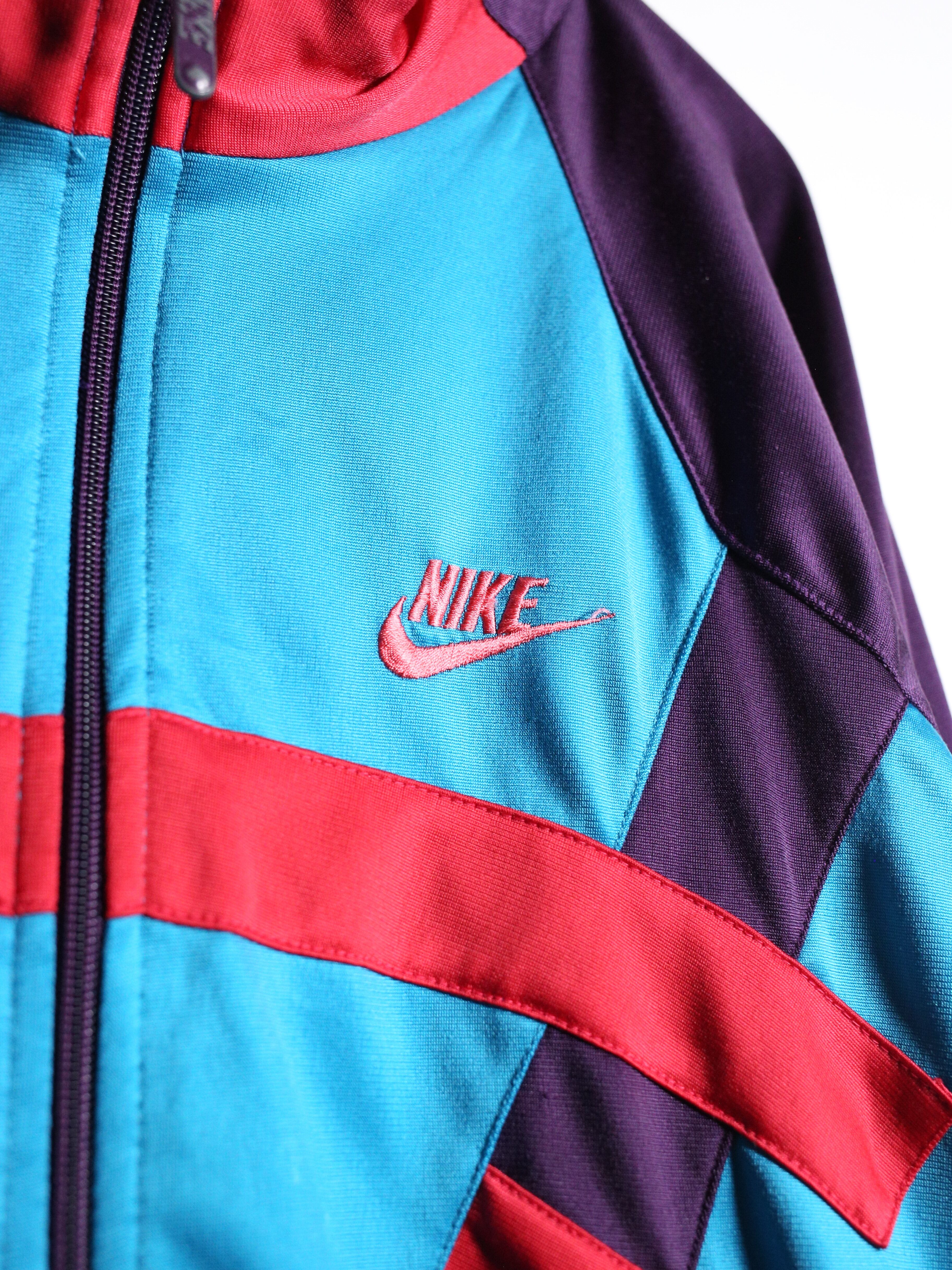 90年代NIKEの”パープル・ターコイズ・レッド”が複雑に交差するサイケデリックな配色がインパクト抜群の一着。