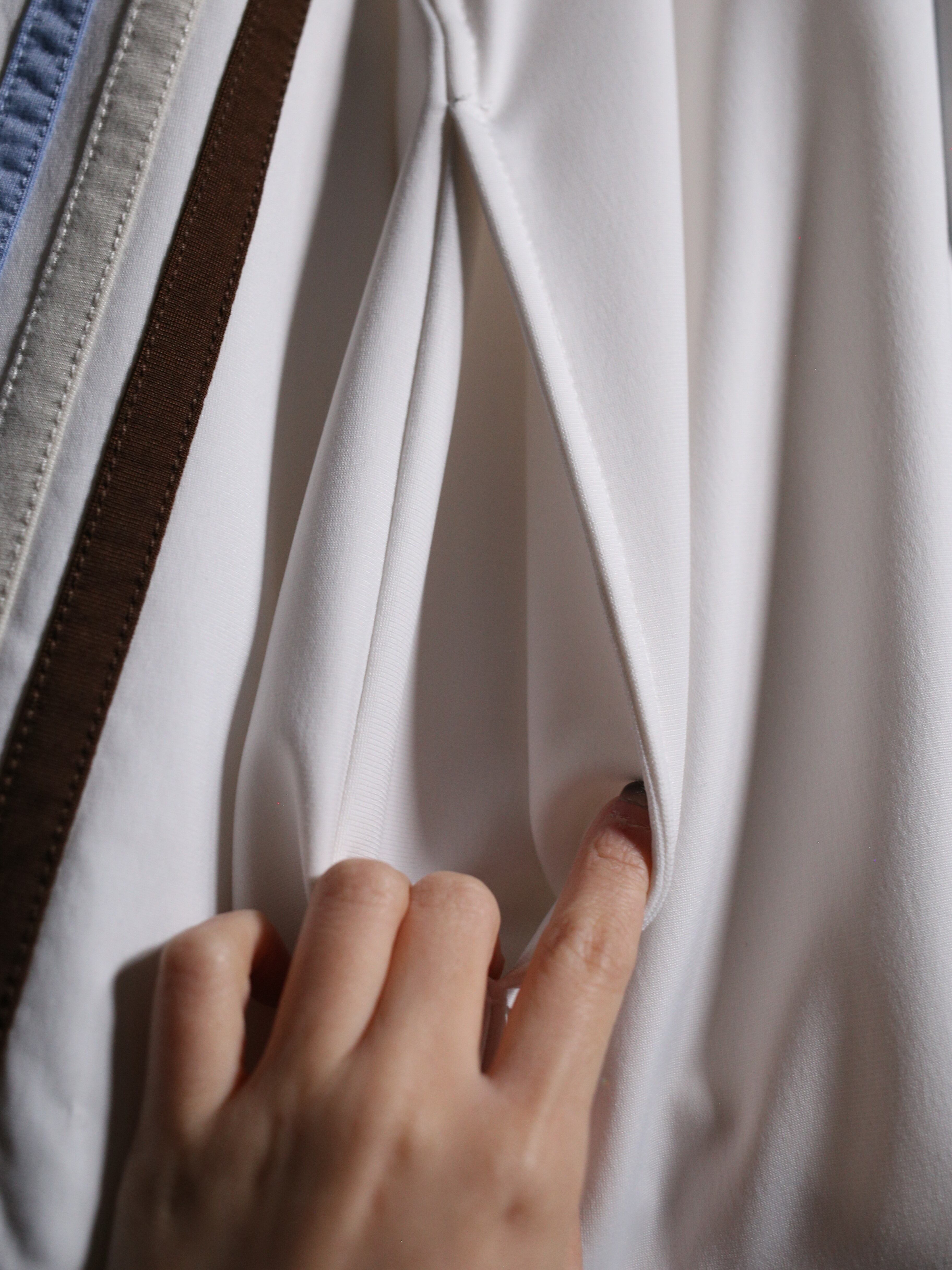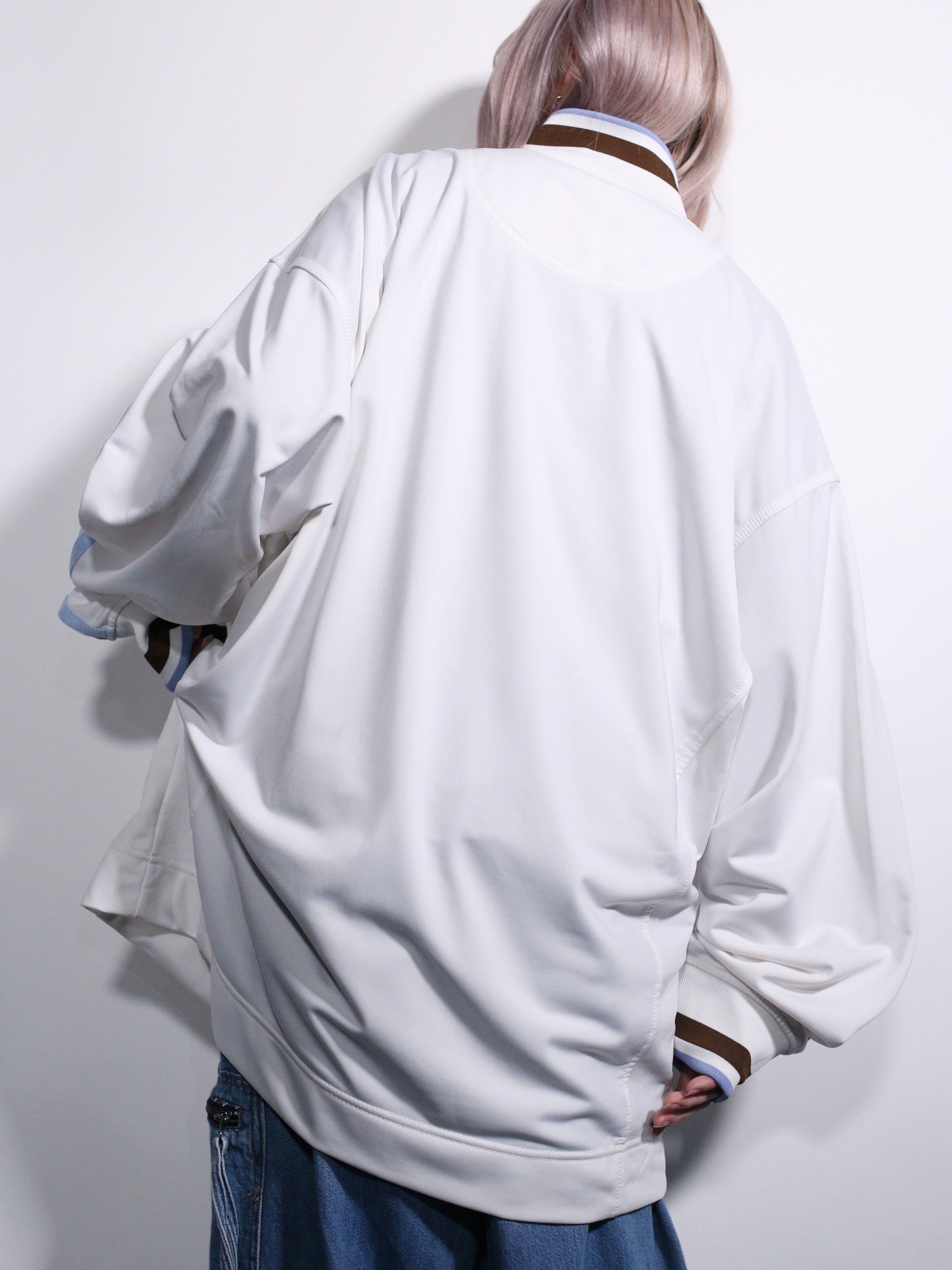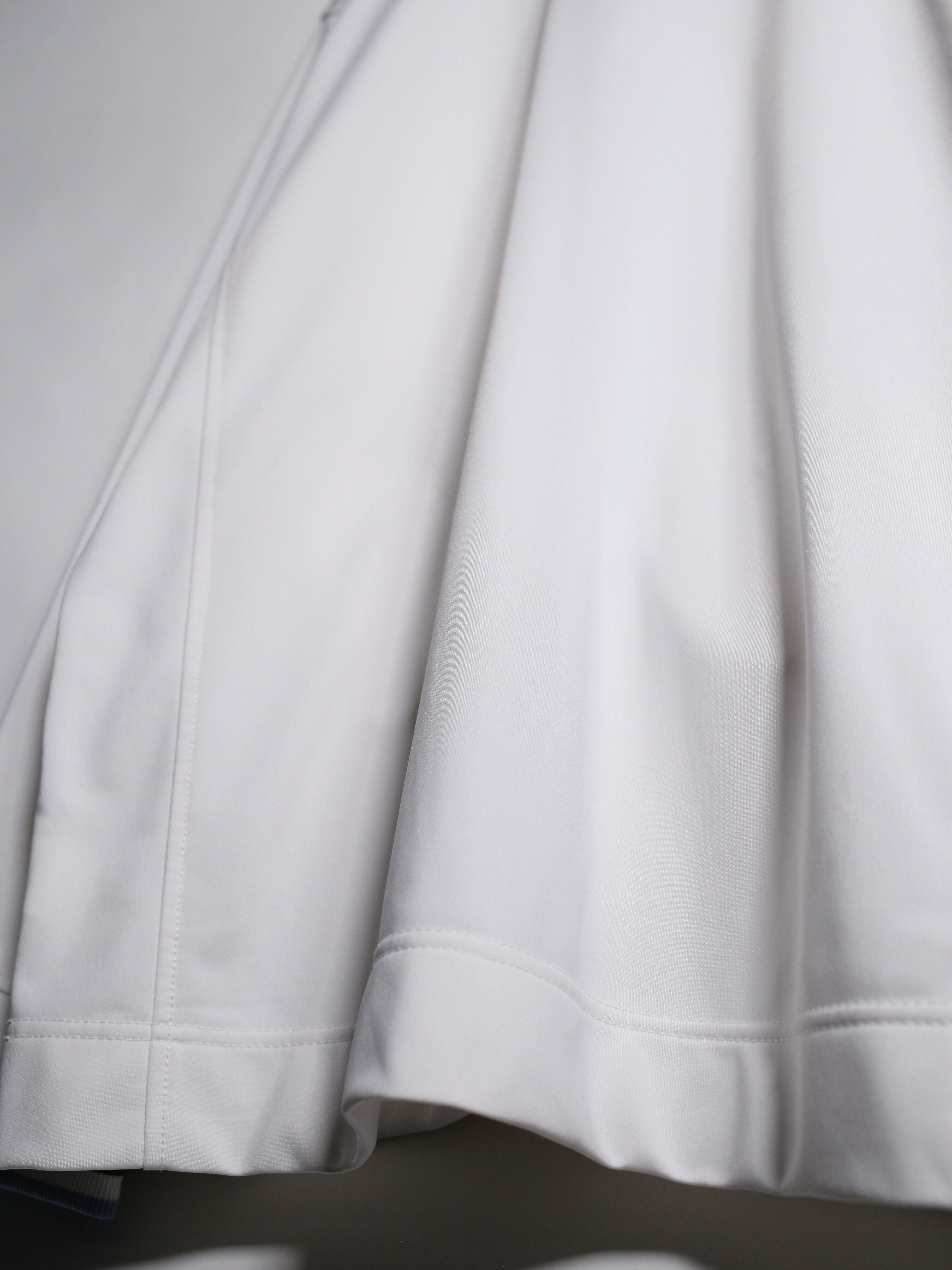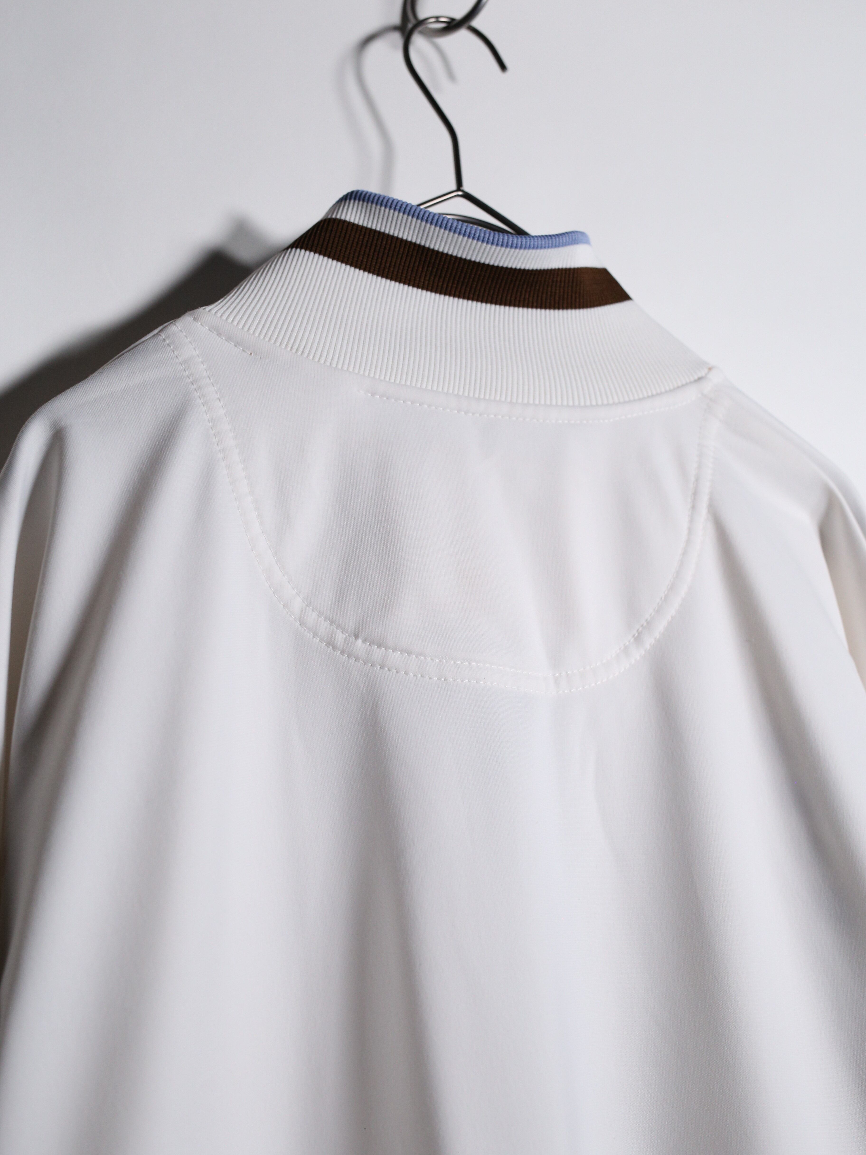 高めの襟リブは立ててシャープに着るも良し、倒すと大ぶりな襟が個性を加速◎