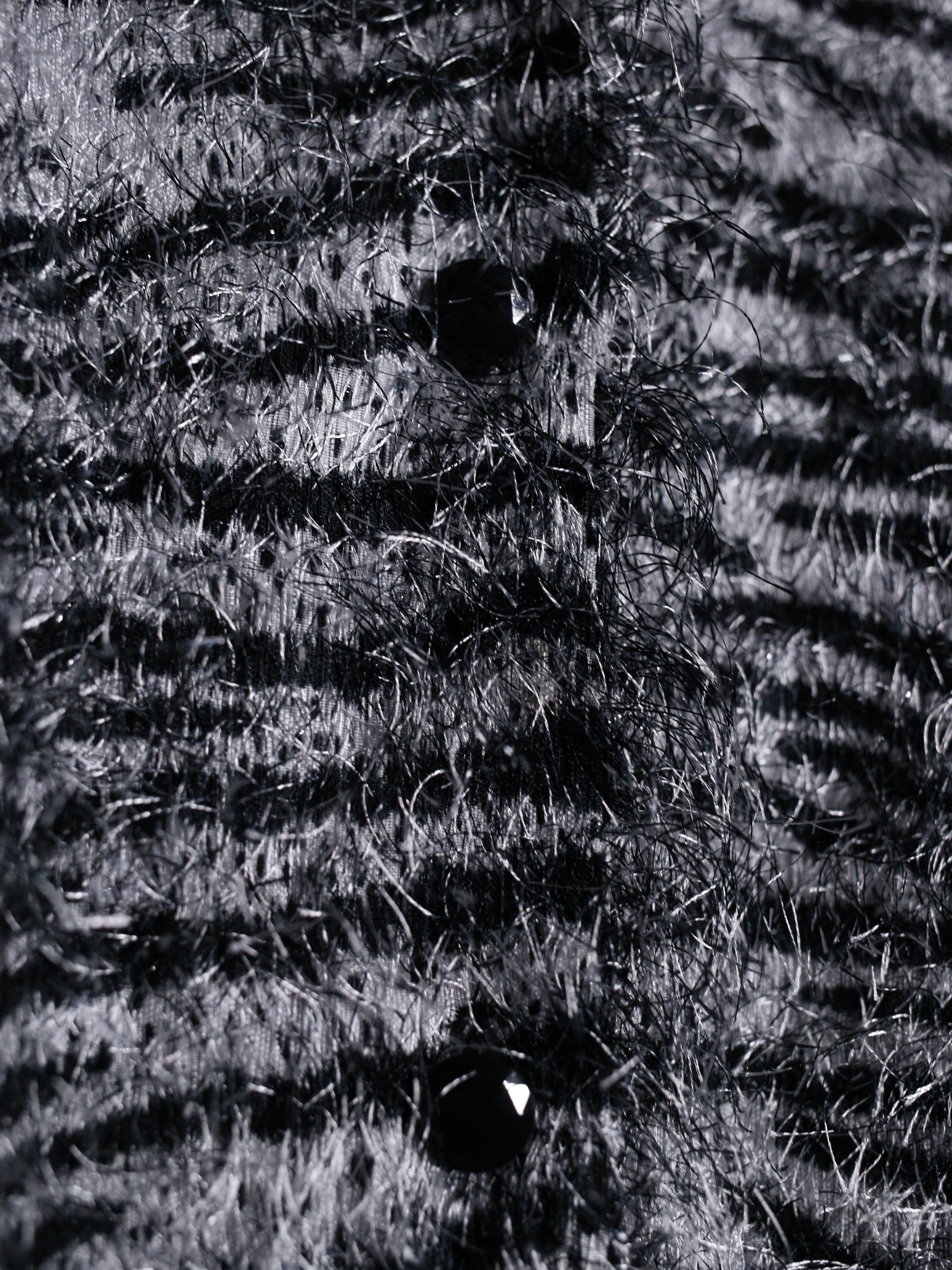 ふんわりとした毛足のある素材感が光の角度で表情を変え生地から個性を確立。