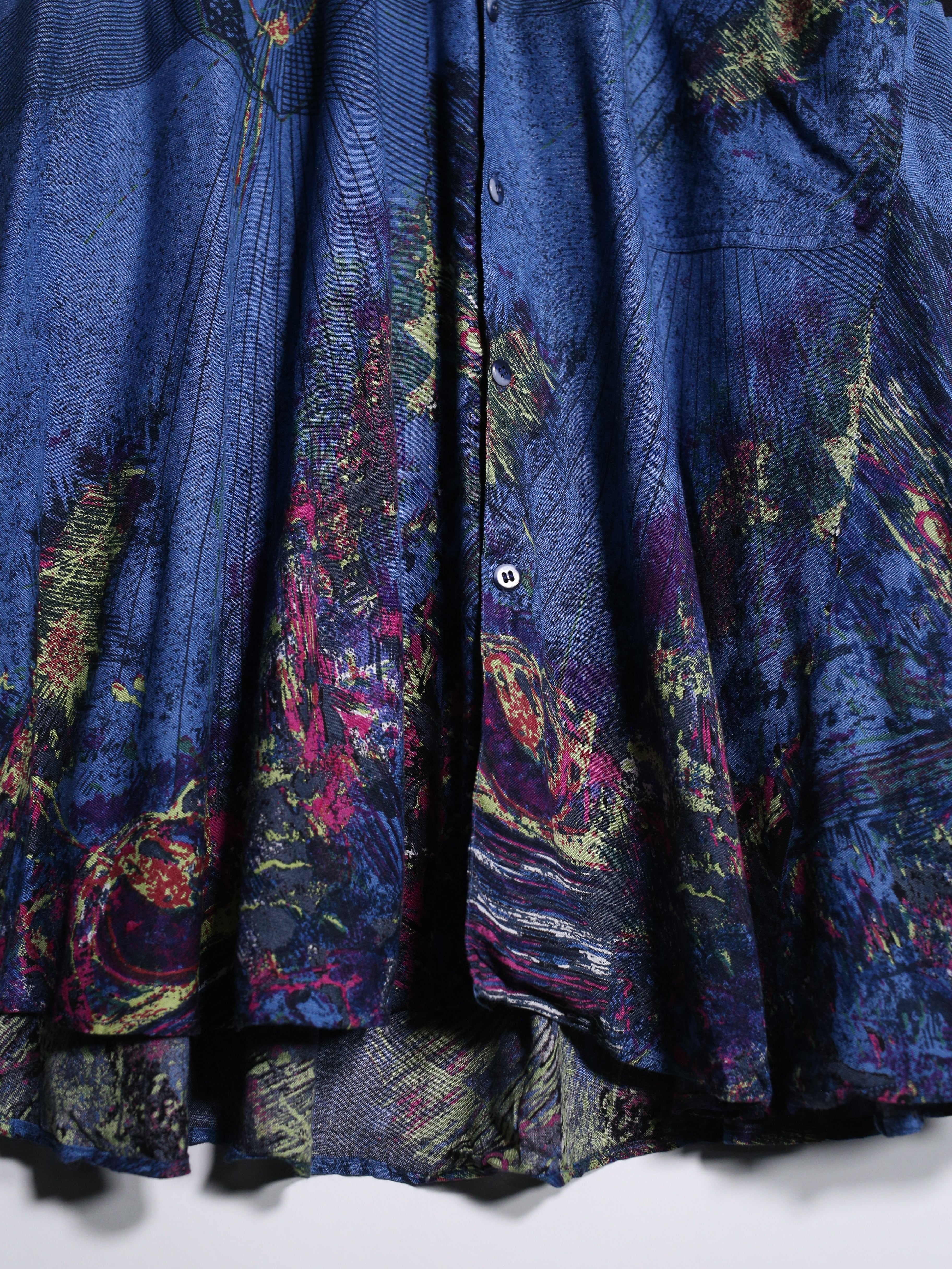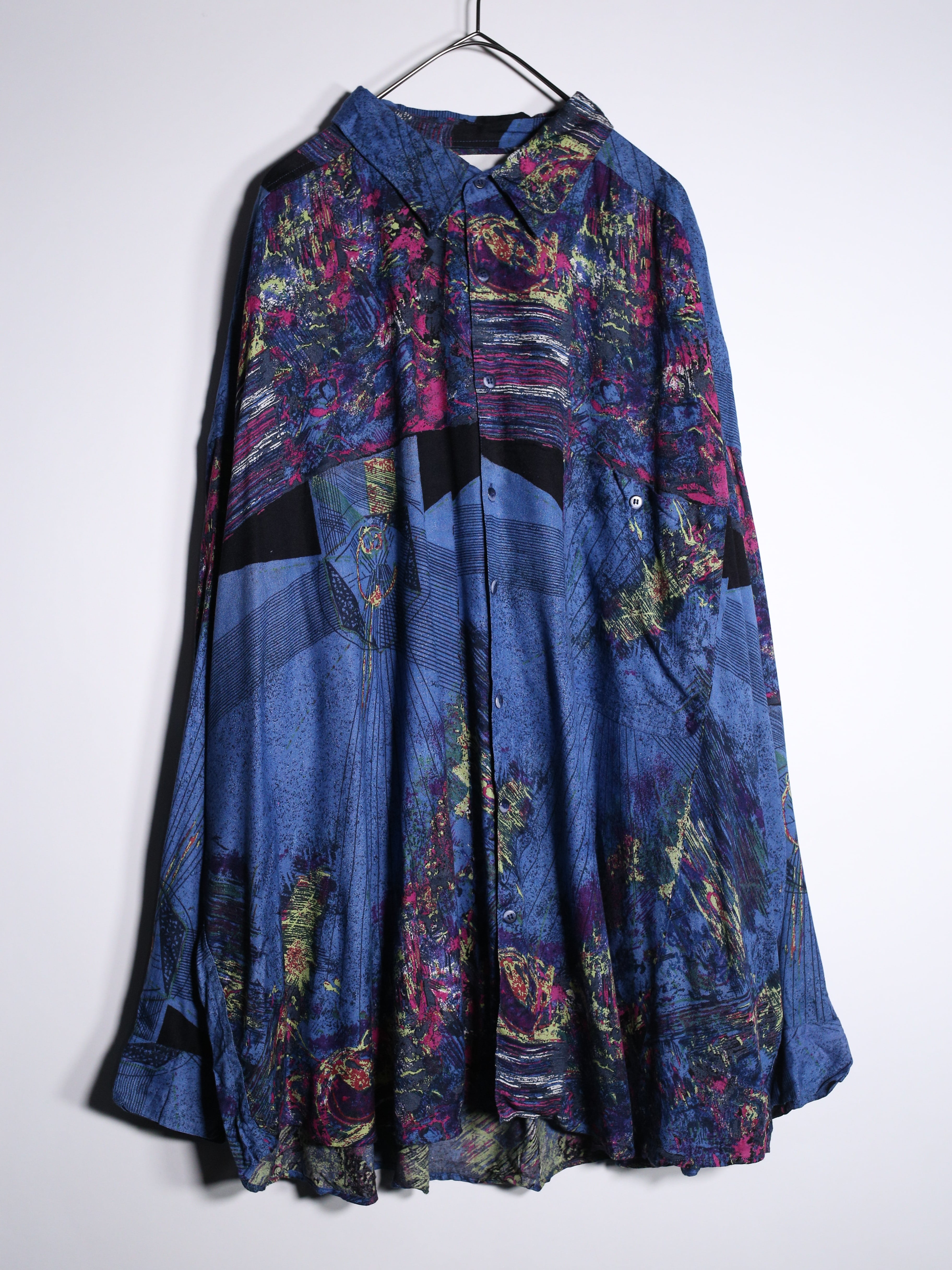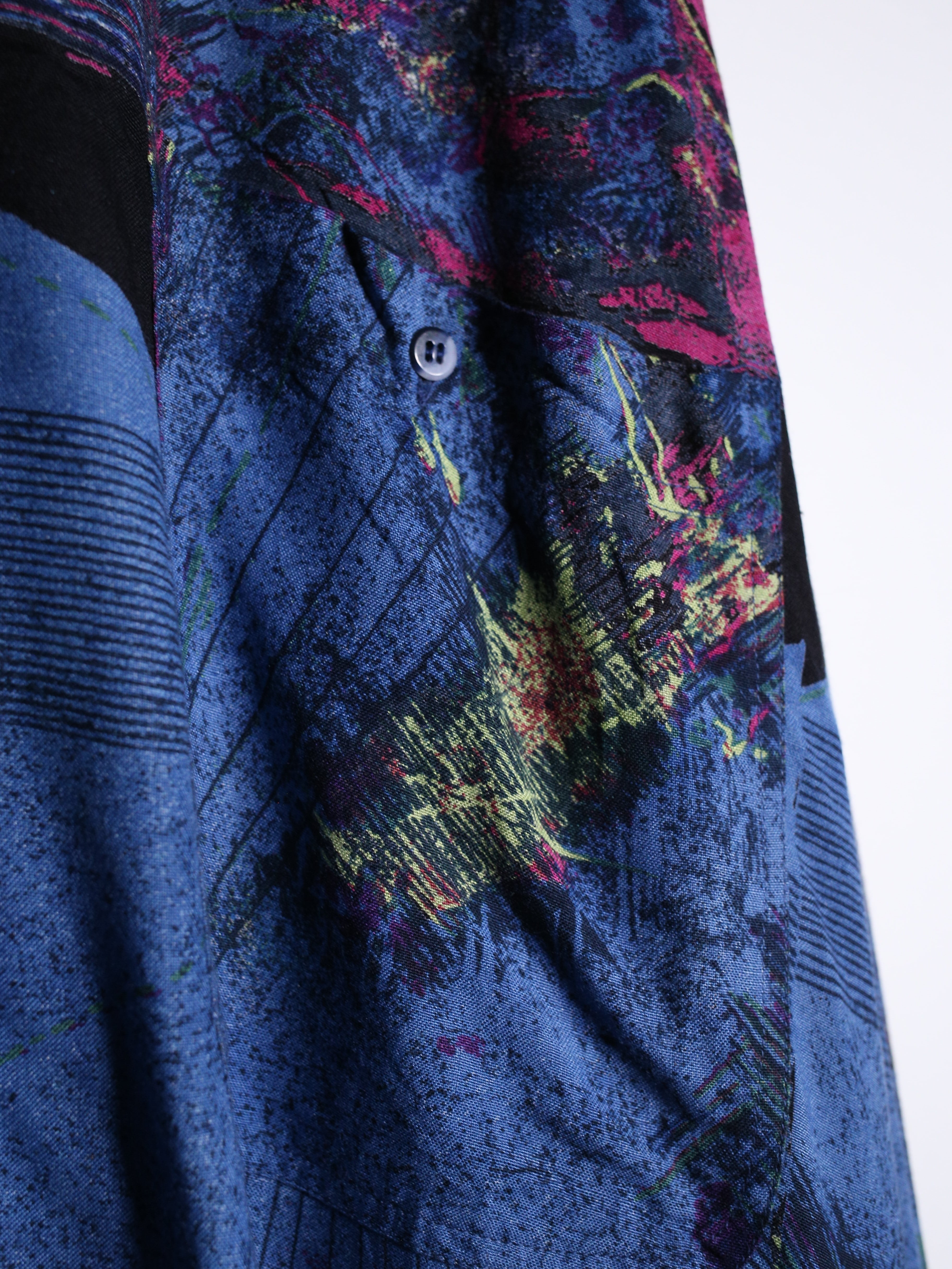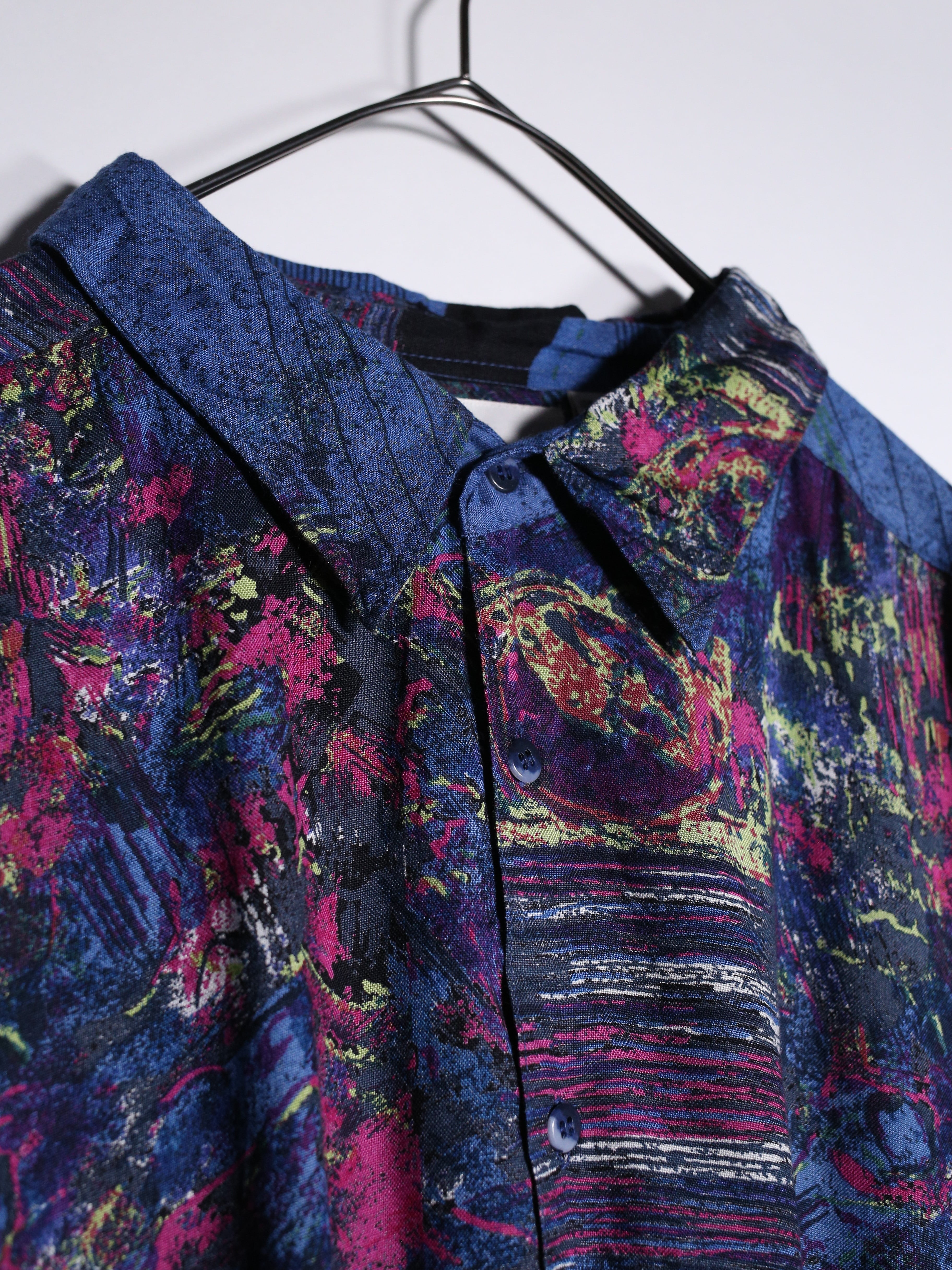 黄、青、紫といったカオスな配色に緻密かつ大胆なフルグラフィックはまさに身に纏うアート。
