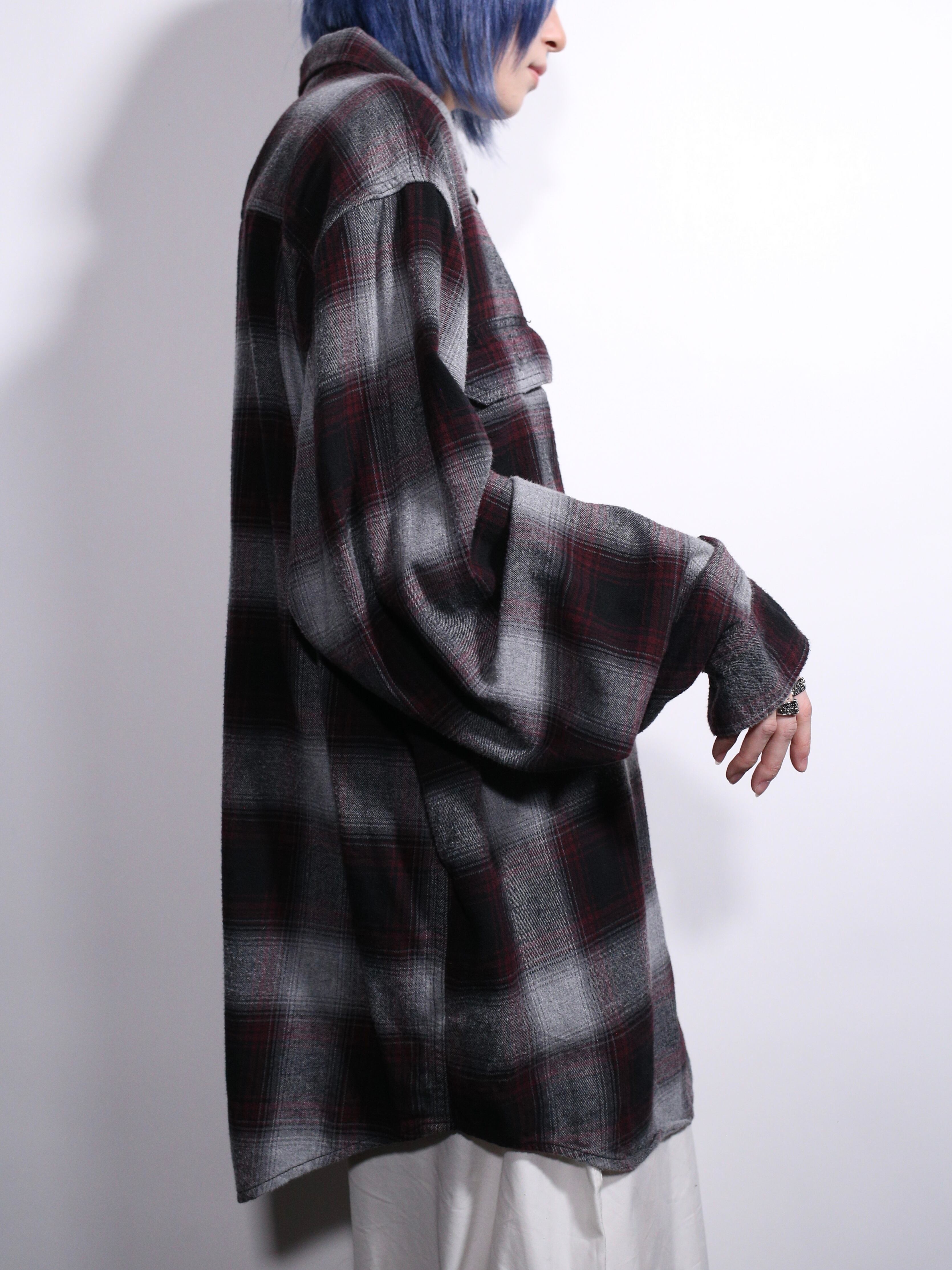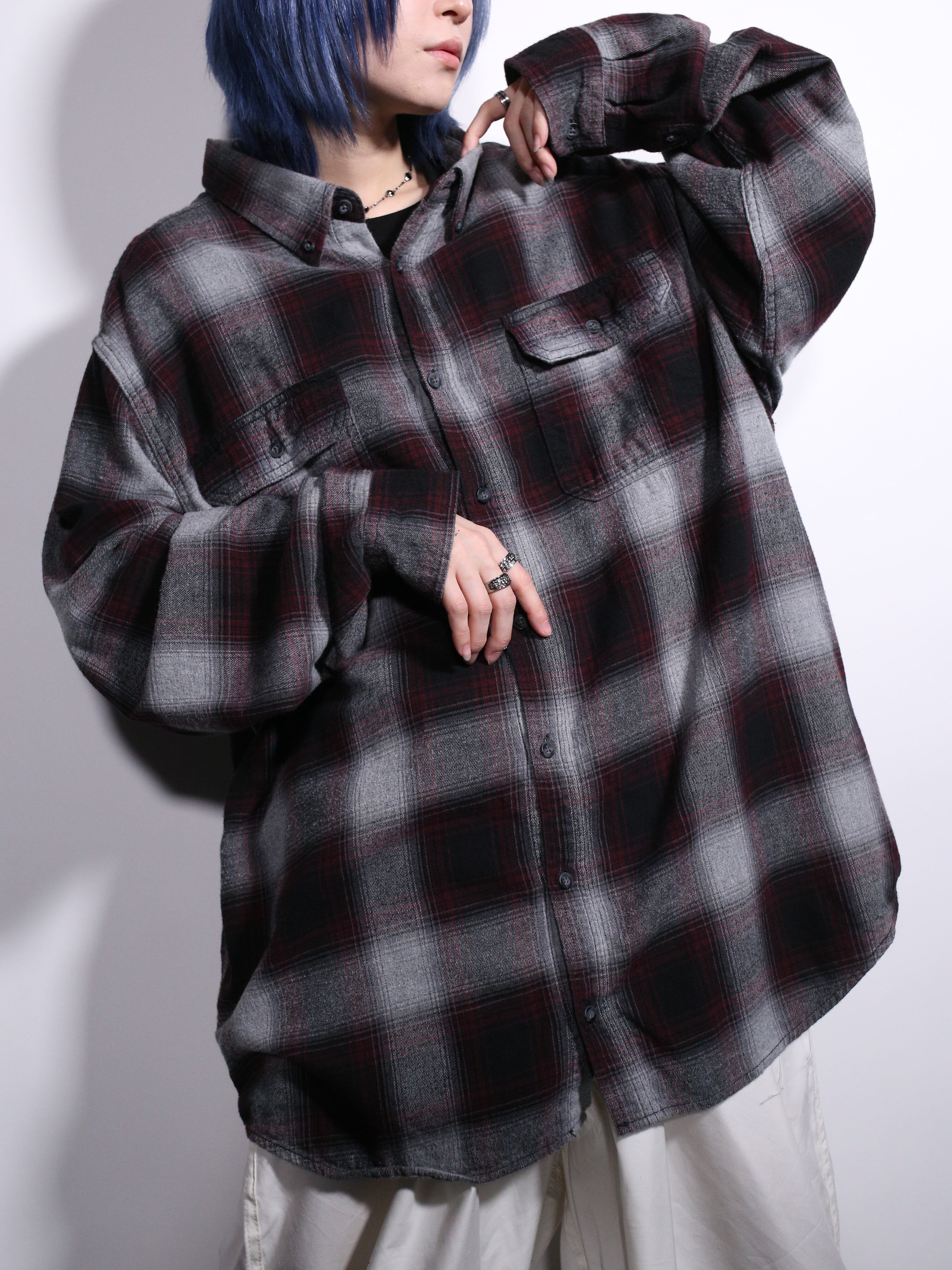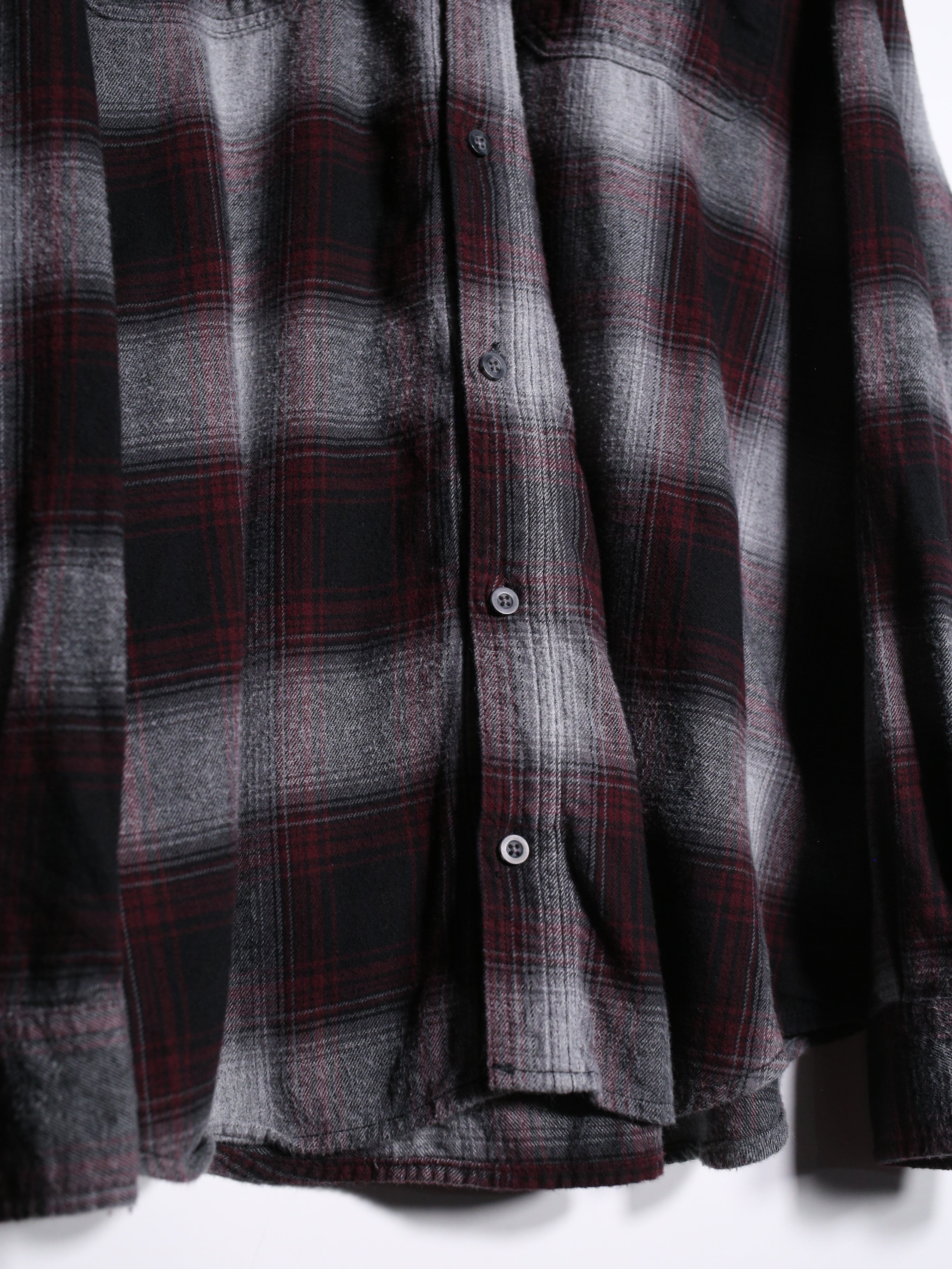バーガンディ×グレー×ブラックを重ねた落ち着きのある良配色のオンブレシャツをご紹介。