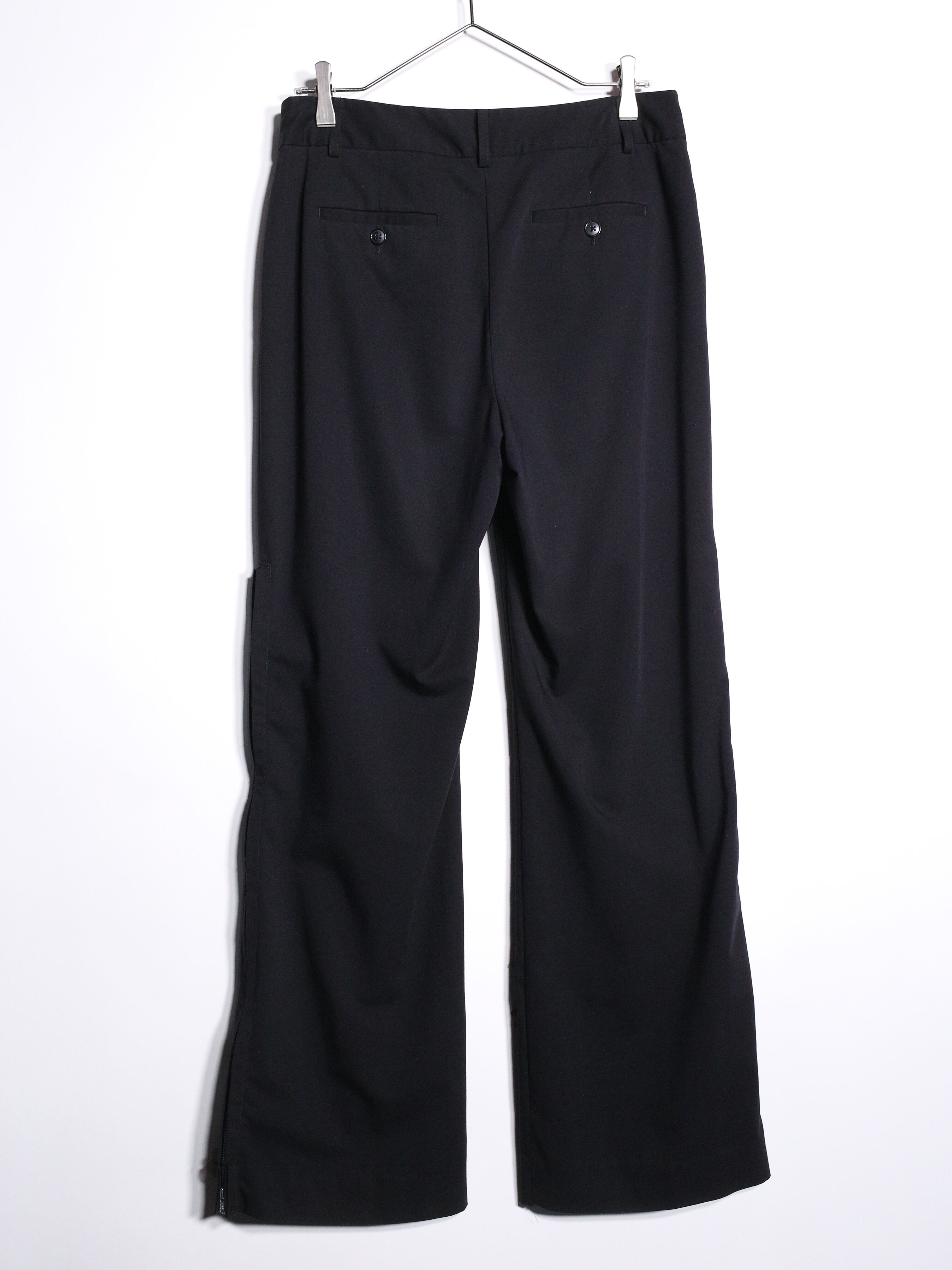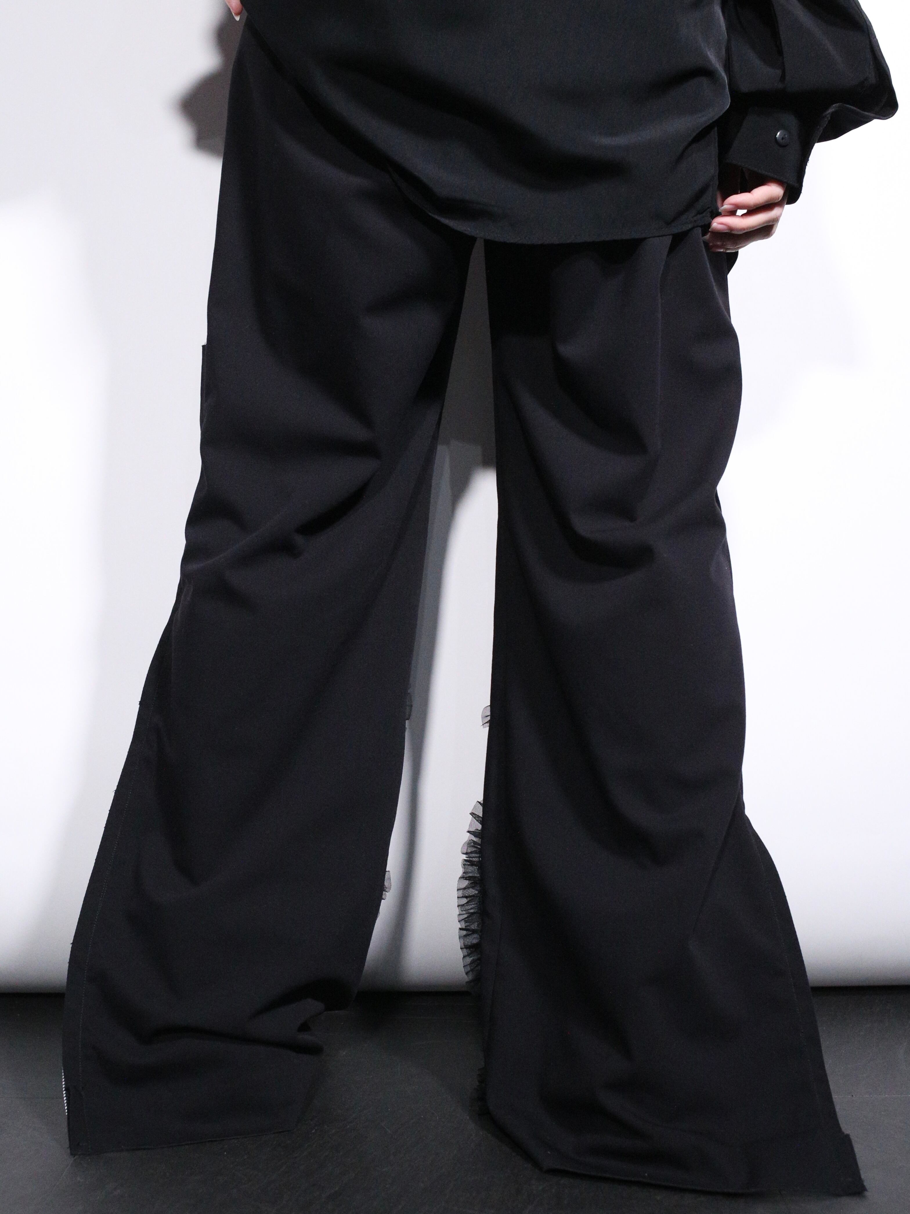 サイドジップの開閉でフレアに変形したり、中のパンツを見せたりとギミックも満載。