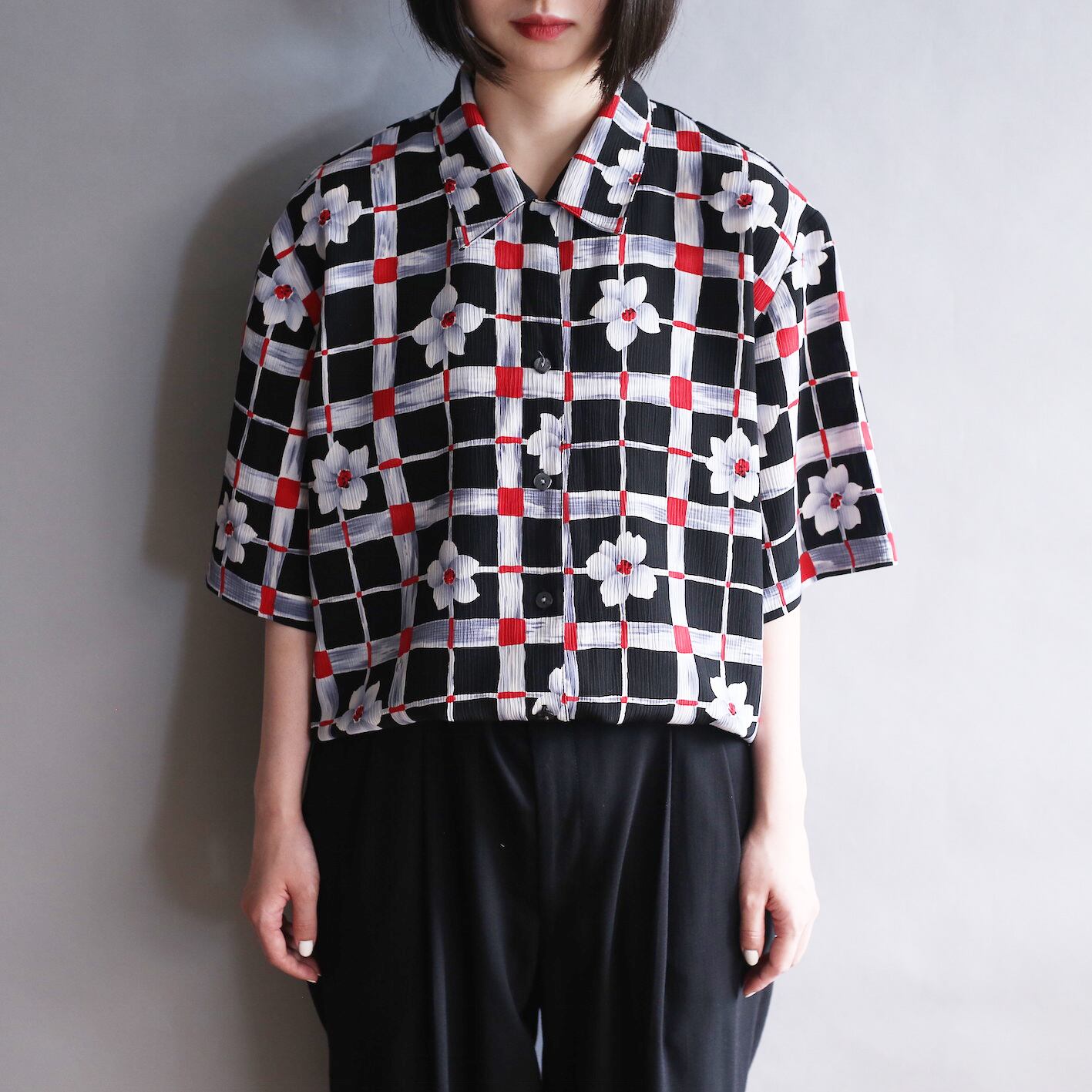 grid flower pattern mode design s/s shirt