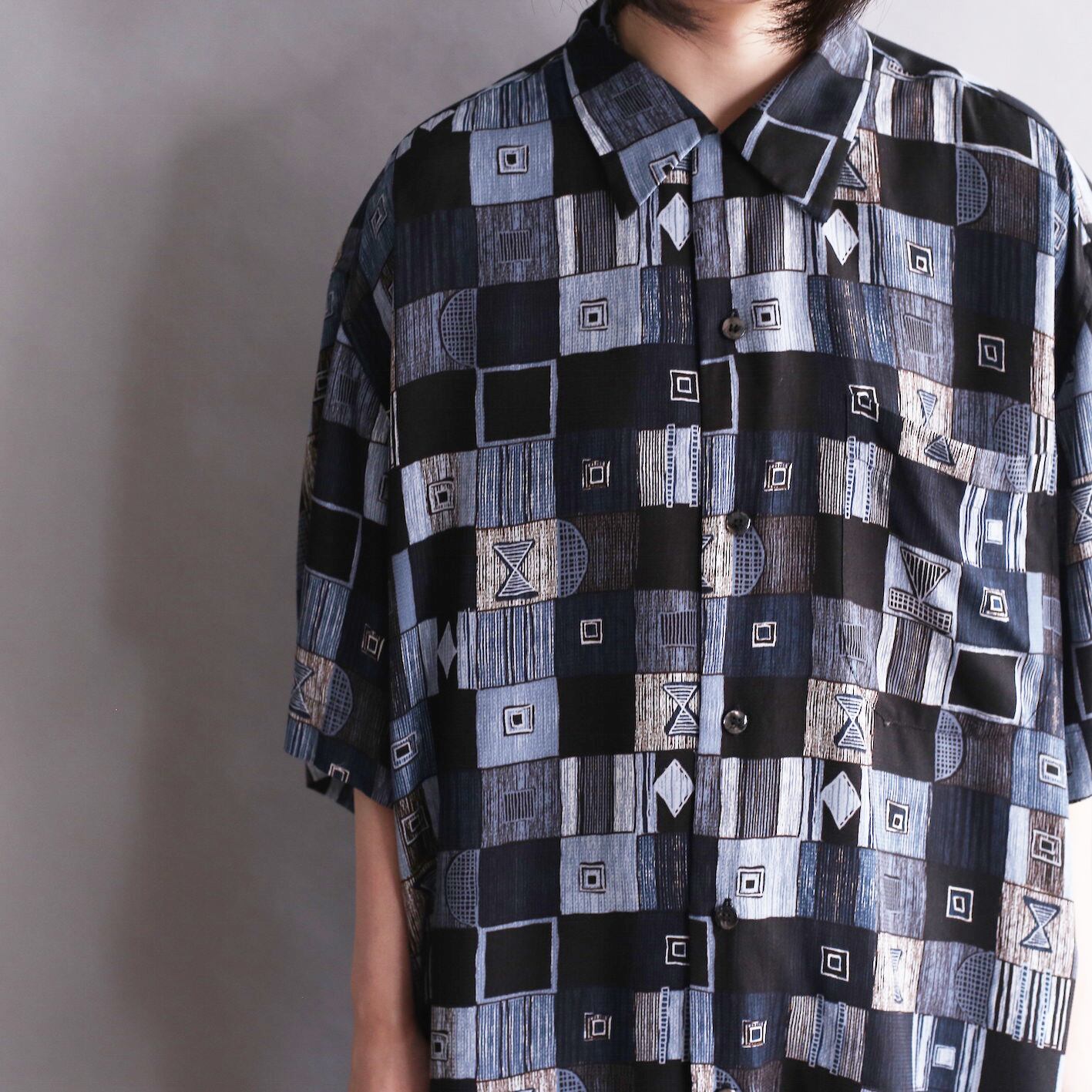 multi square geometry dark tone h/s shirt