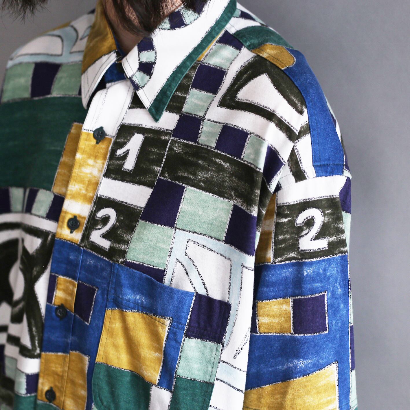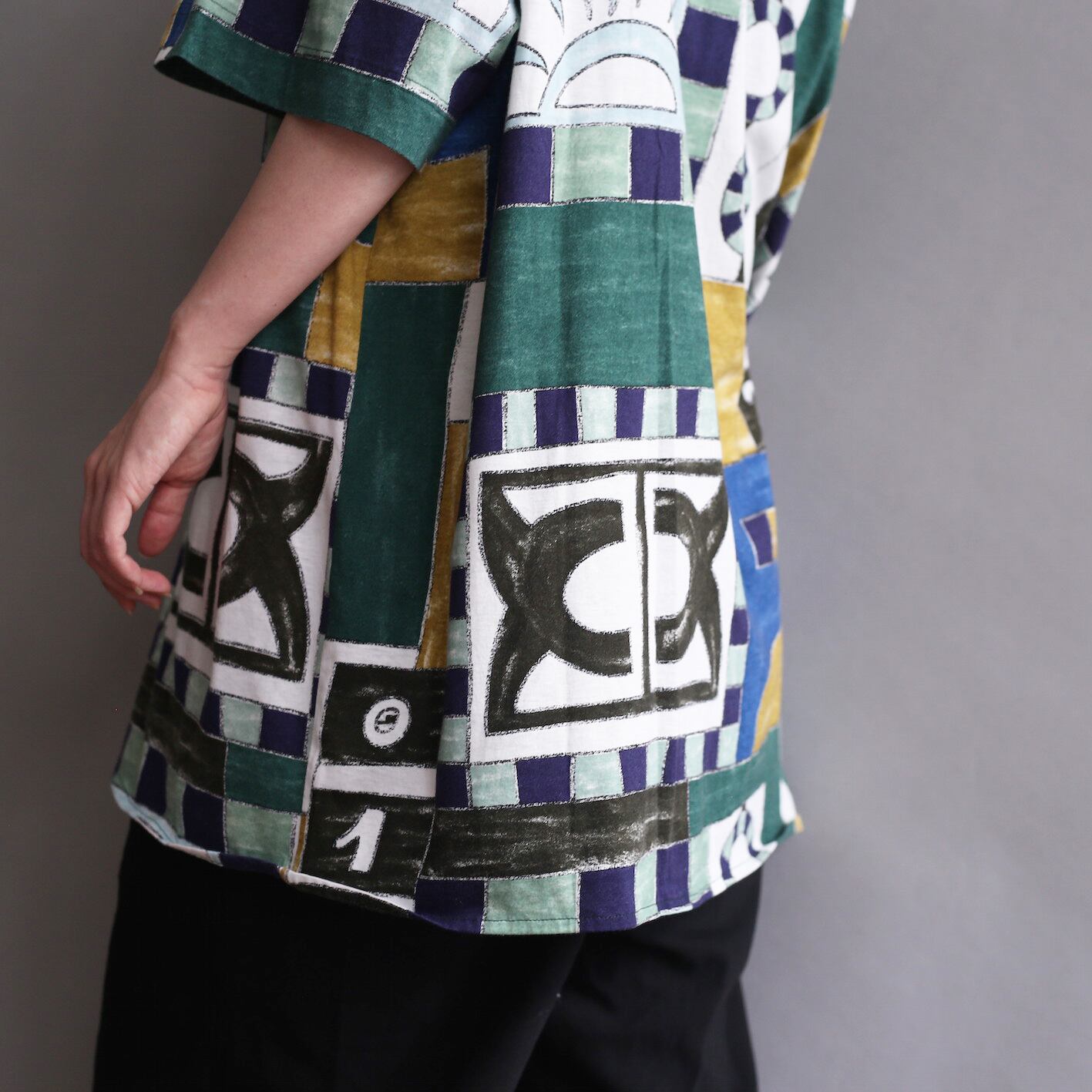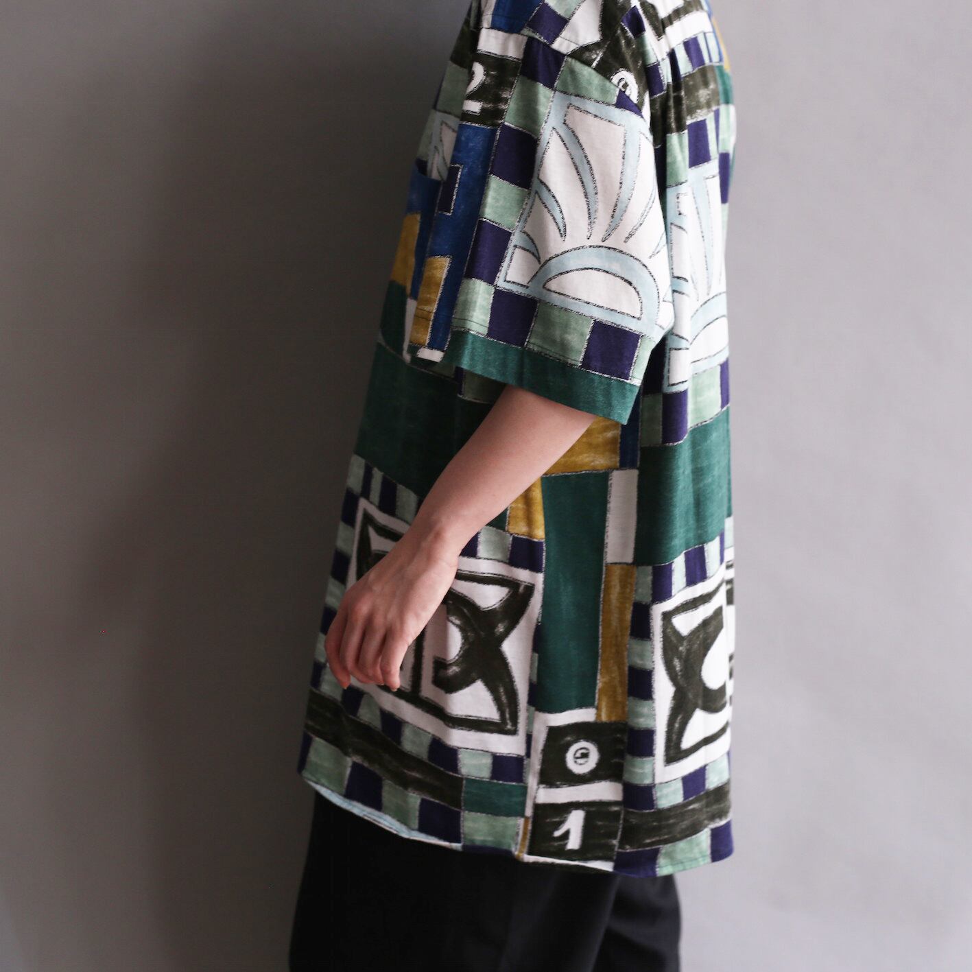 size - 表記なし(メンズL〜XL相当)、肩幅55cm、身幅65cm、着丈76cm、袖丈25cm
