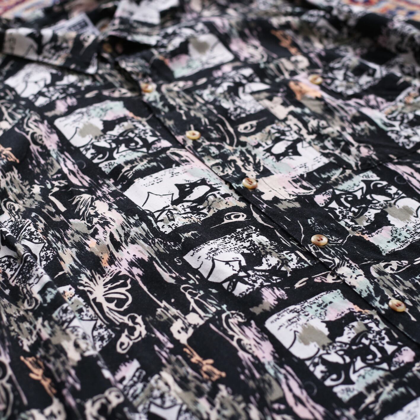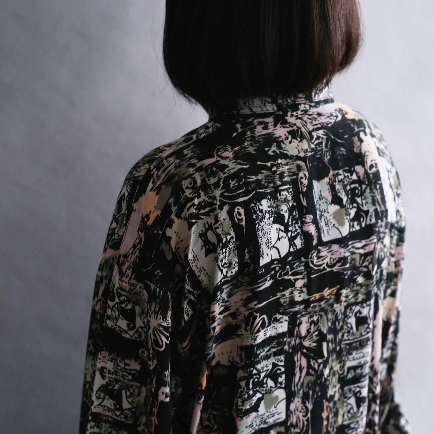 black base art pattern l/s rayon big shirt