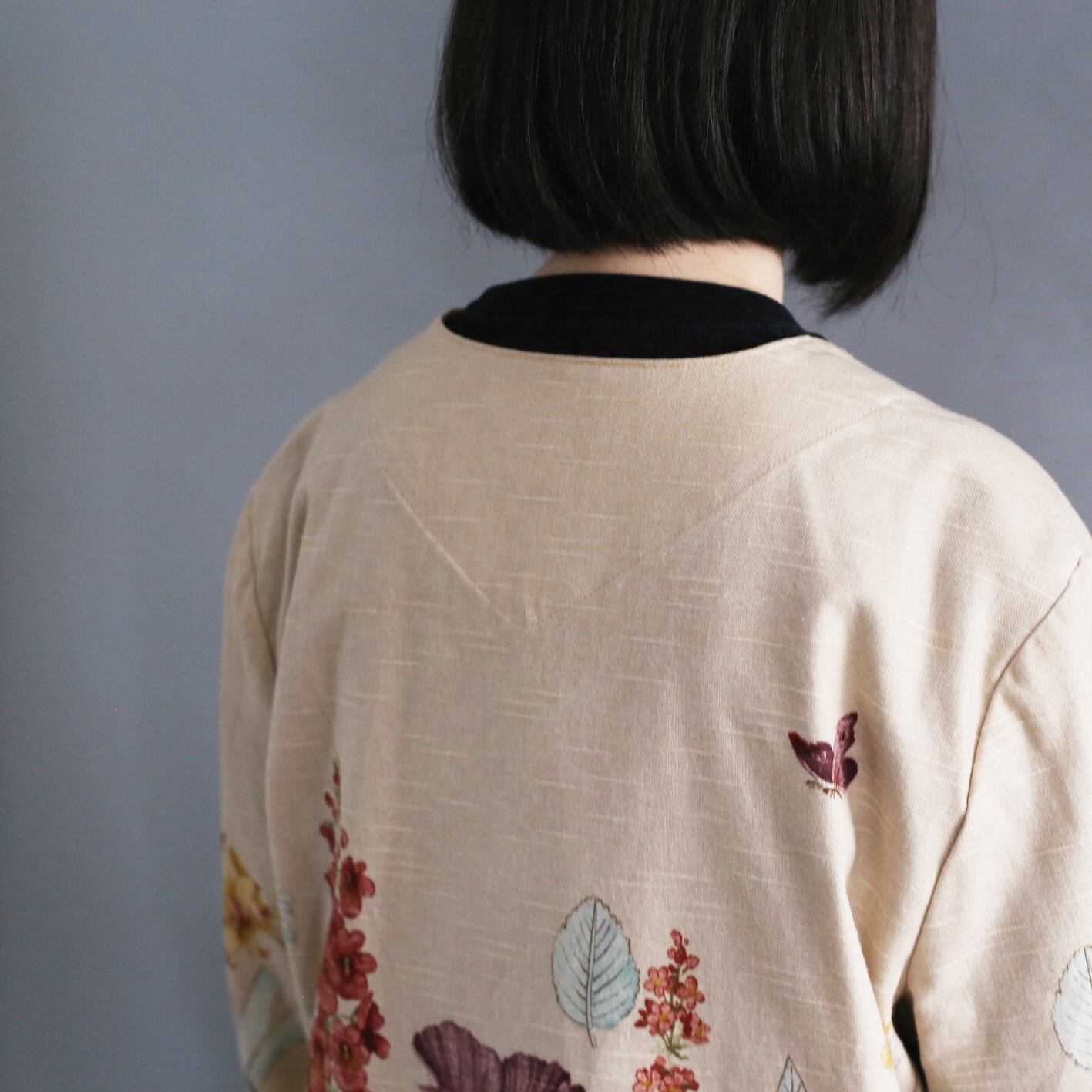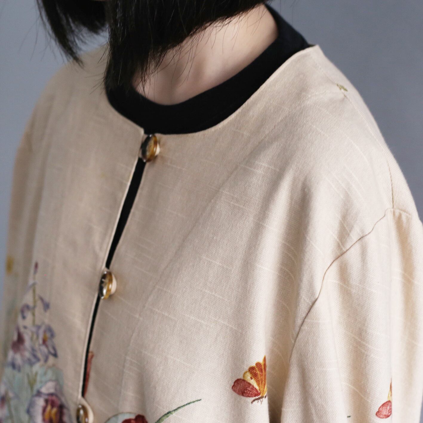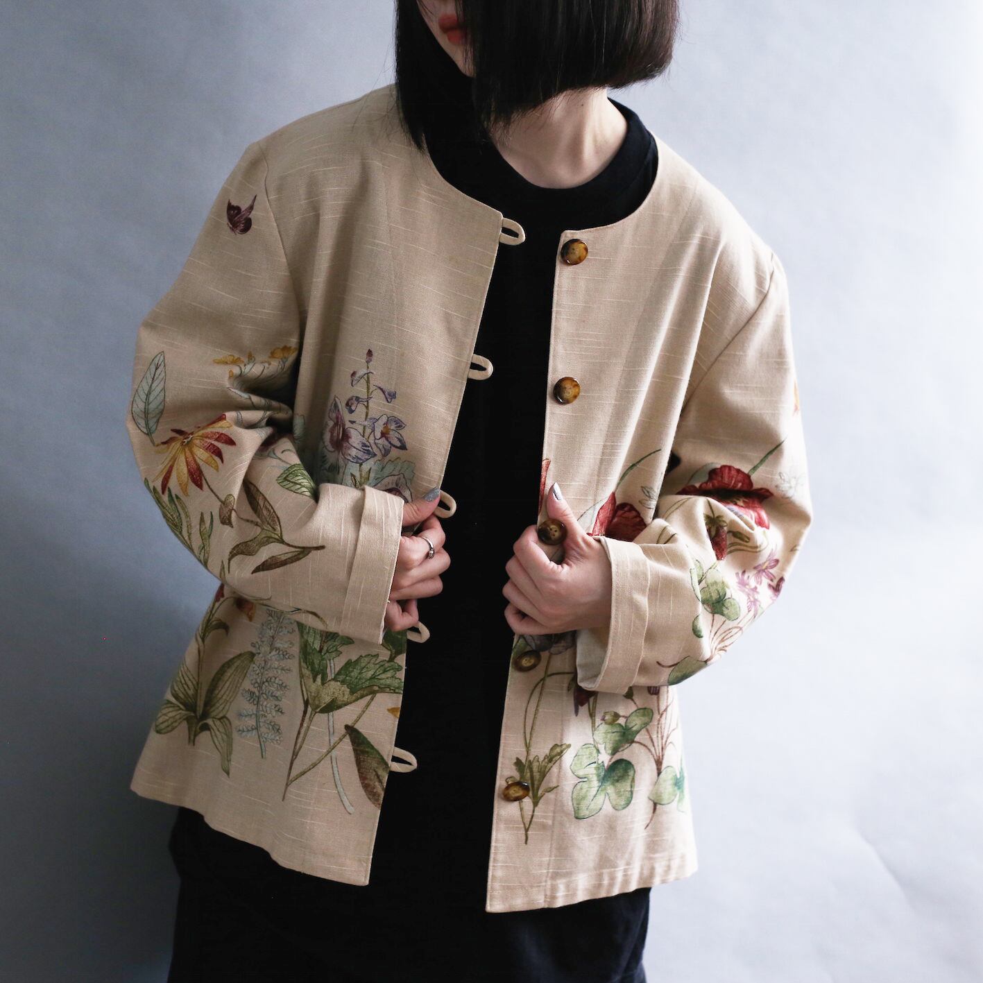 flower art pattern box silhouette l/s no-collar jacket
