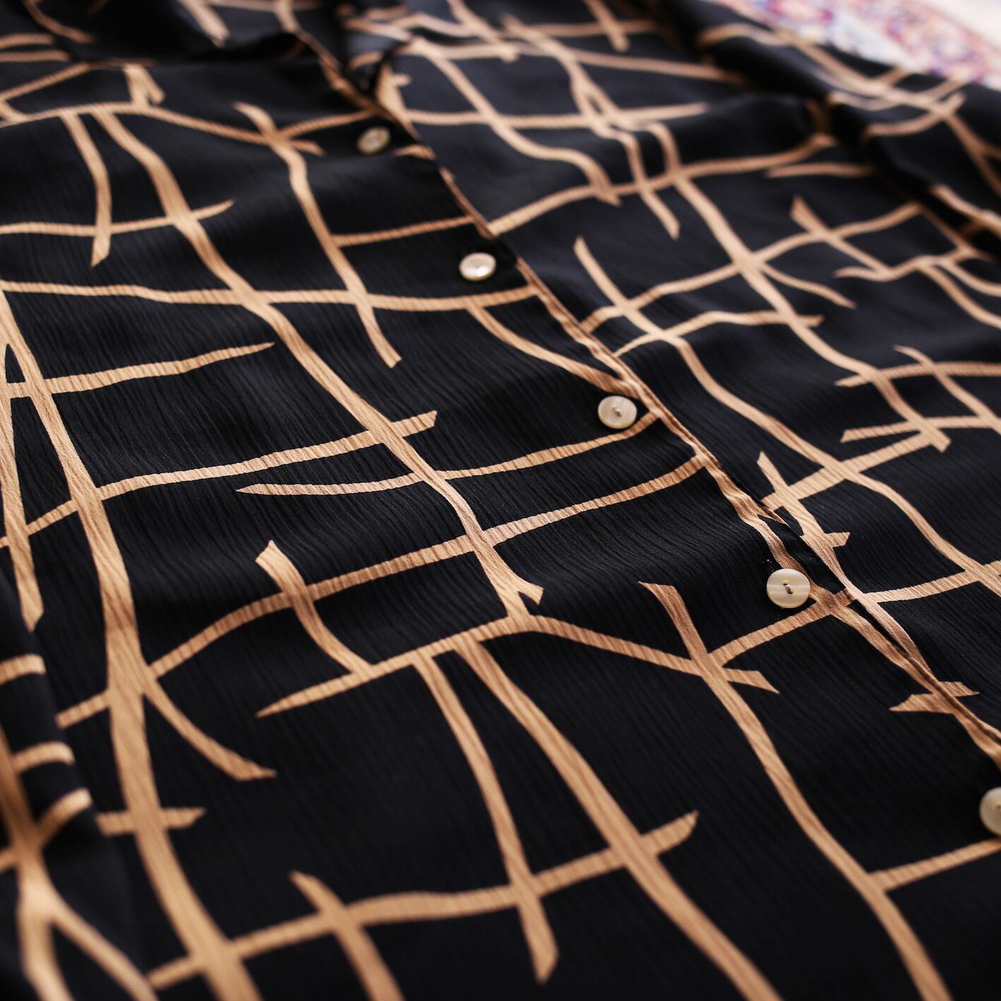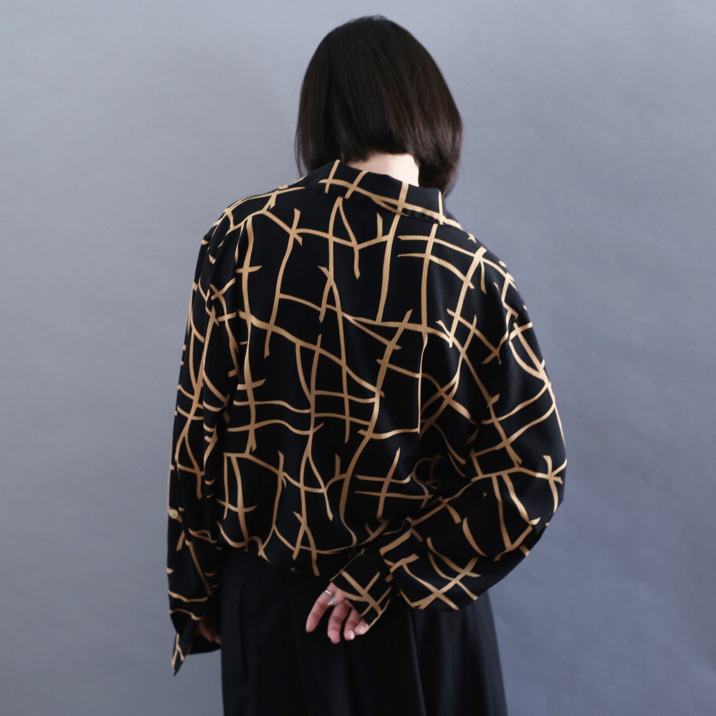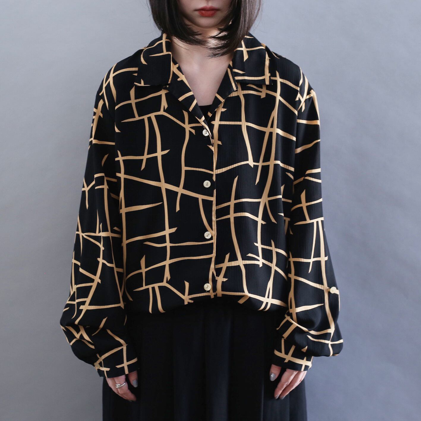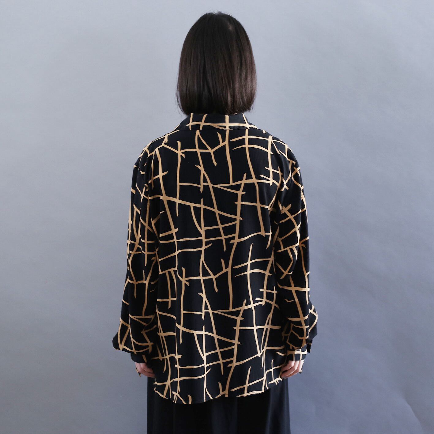 grid art design l/s open collar shirt
