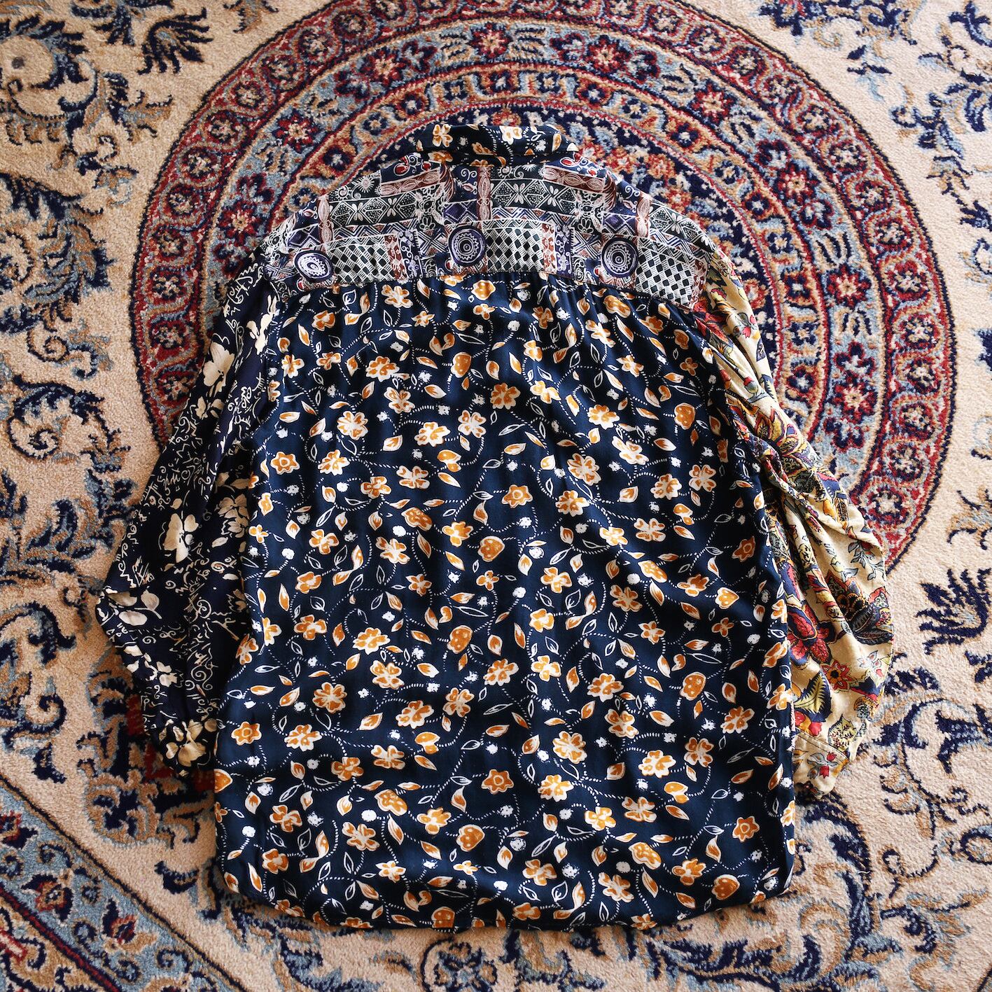 "ツギハギ" embroidery multi panel pattern l/s rayon shirt