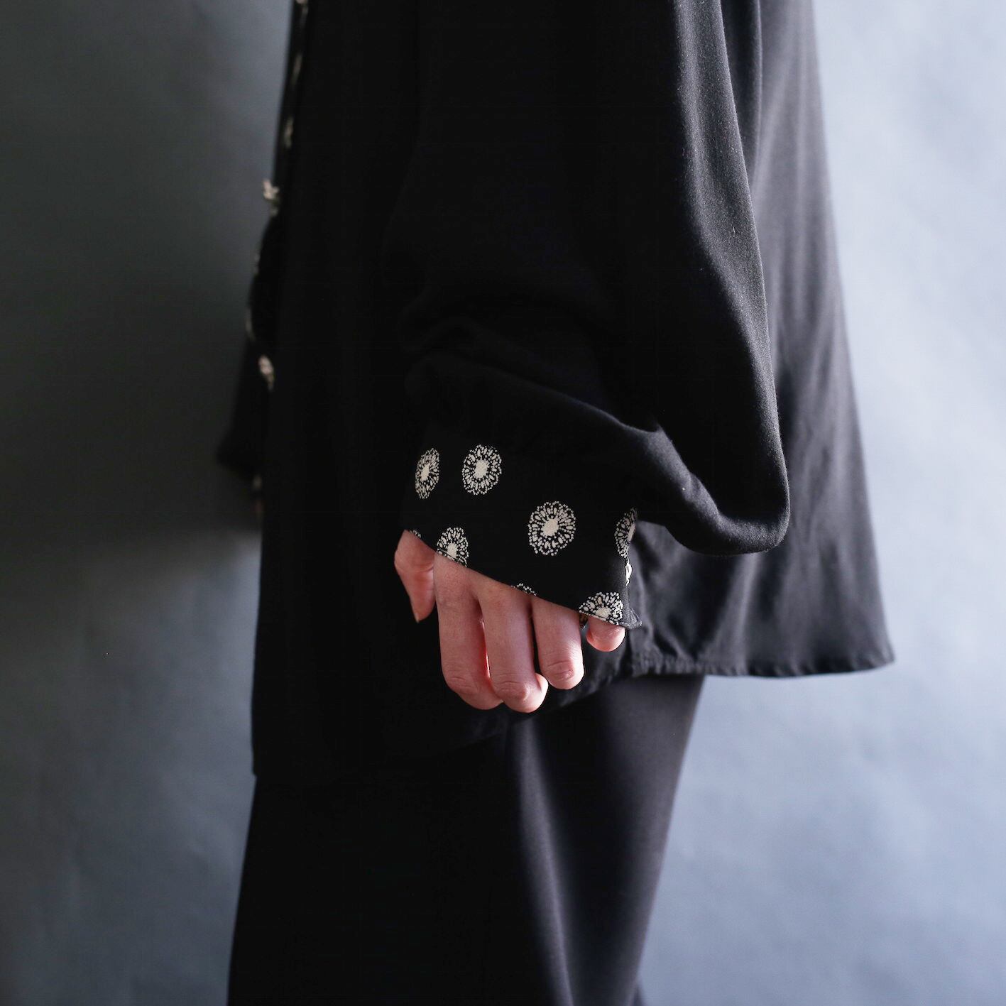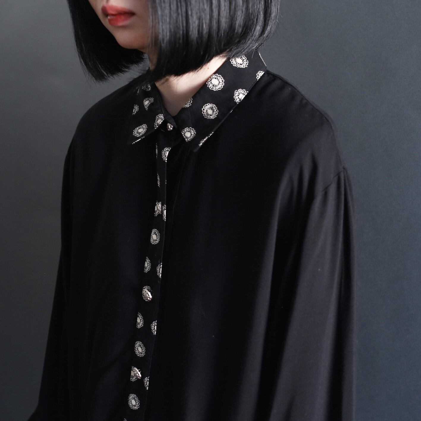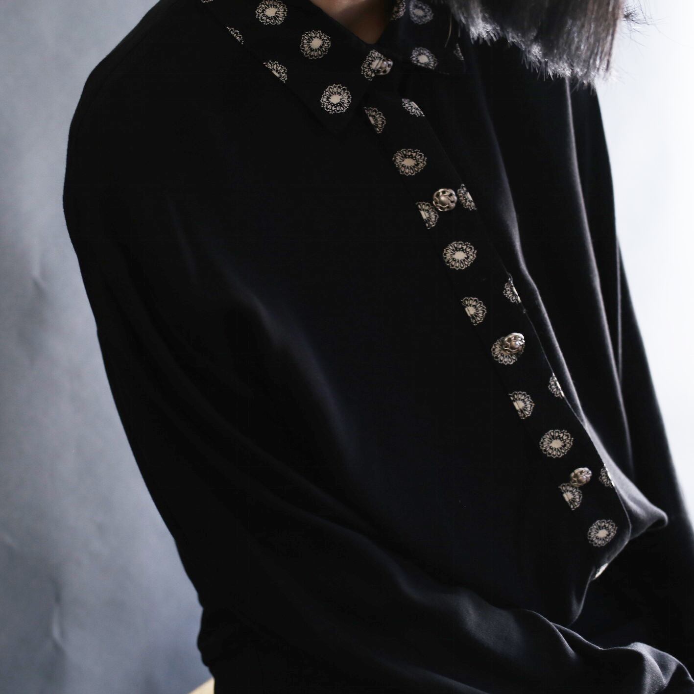 flower motif switching design and metal button l/s mode shirt