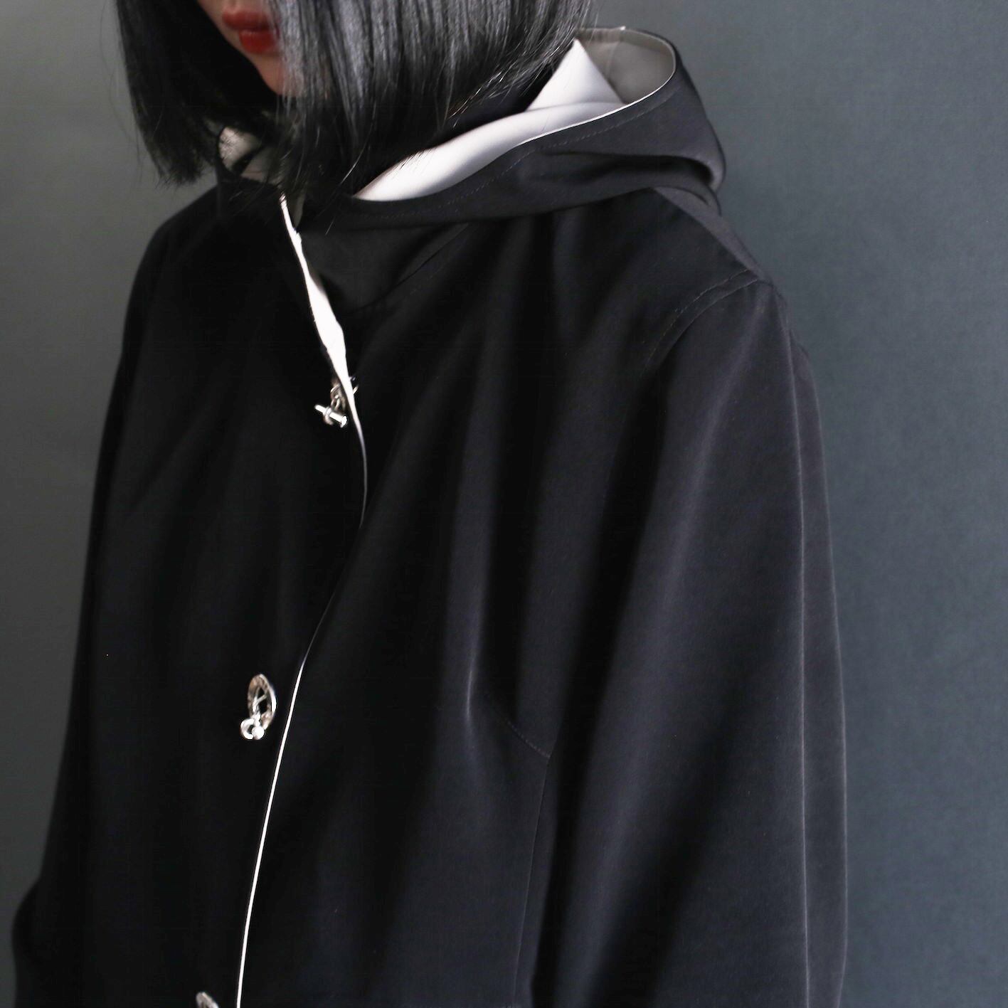metal hook button l/s high-neck hooded jacket