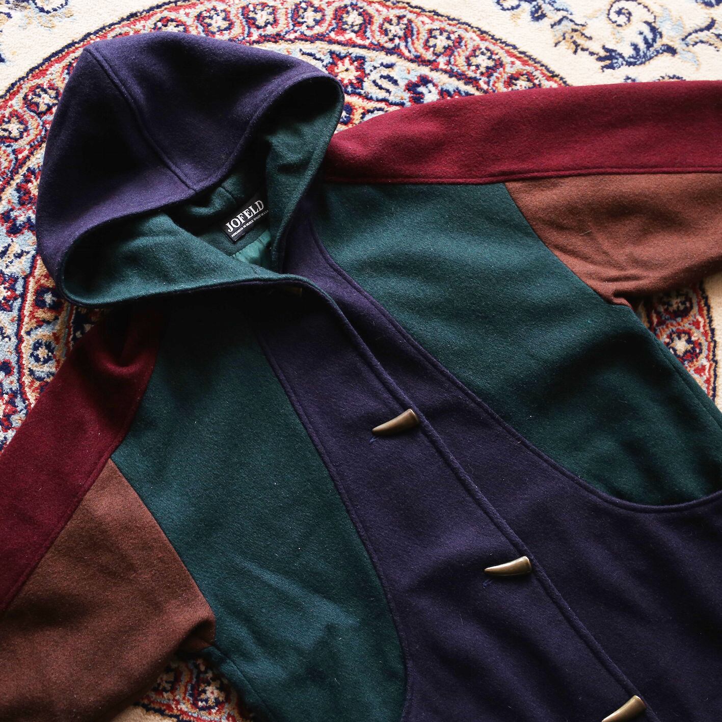 switching design wool hooded coat