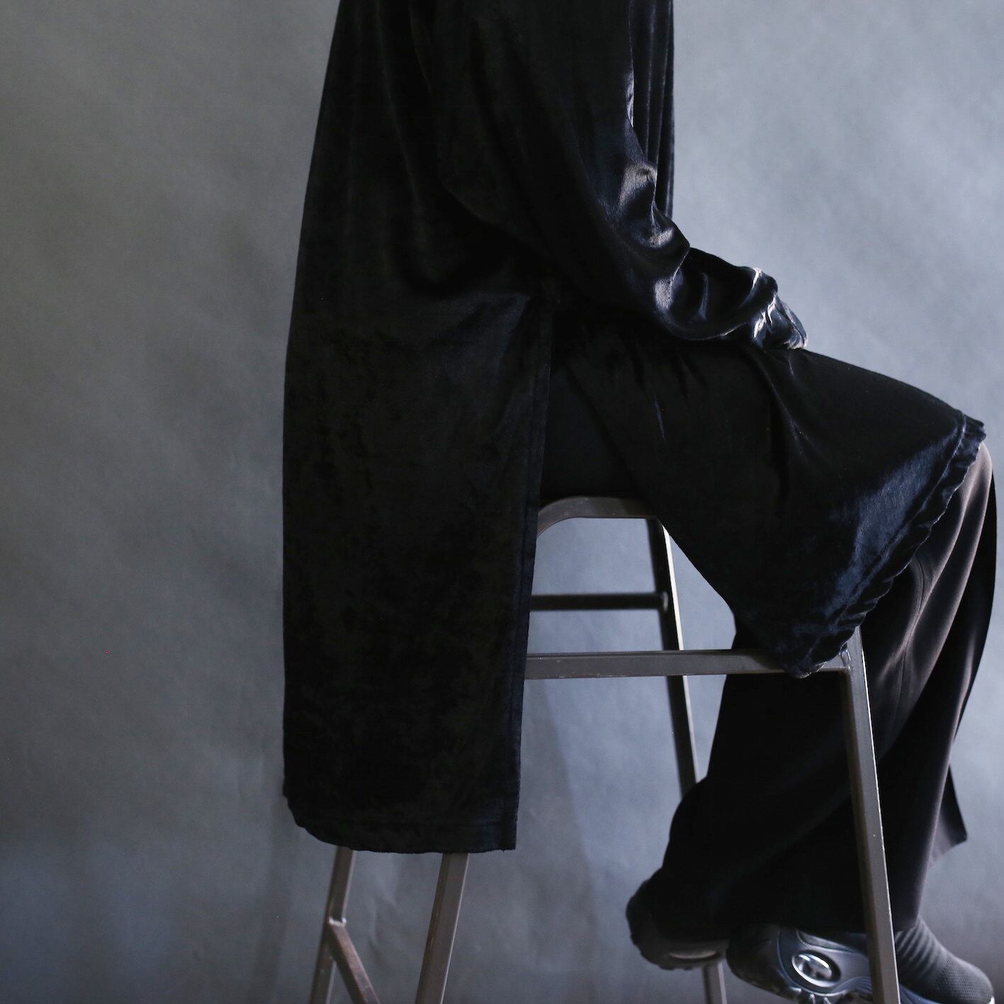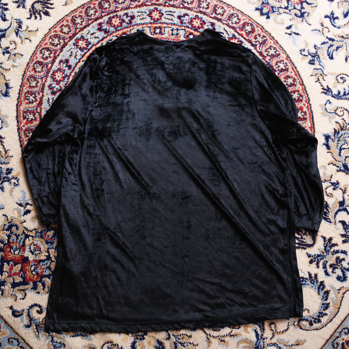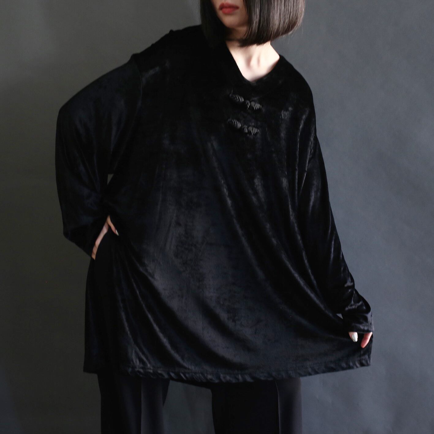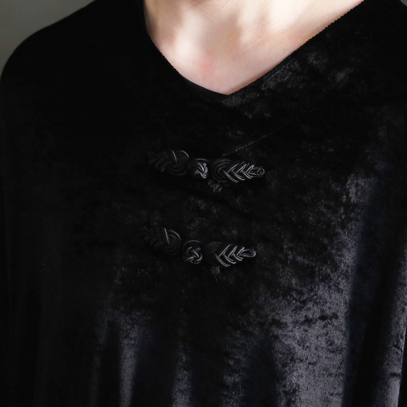 china button deep slit black velours cut-sew