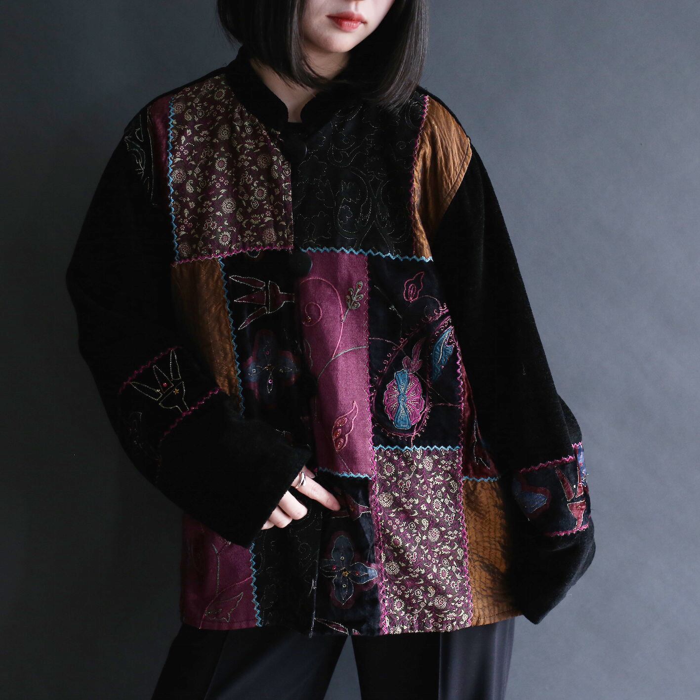 multi embroidery fabric switching design stand collar jacket