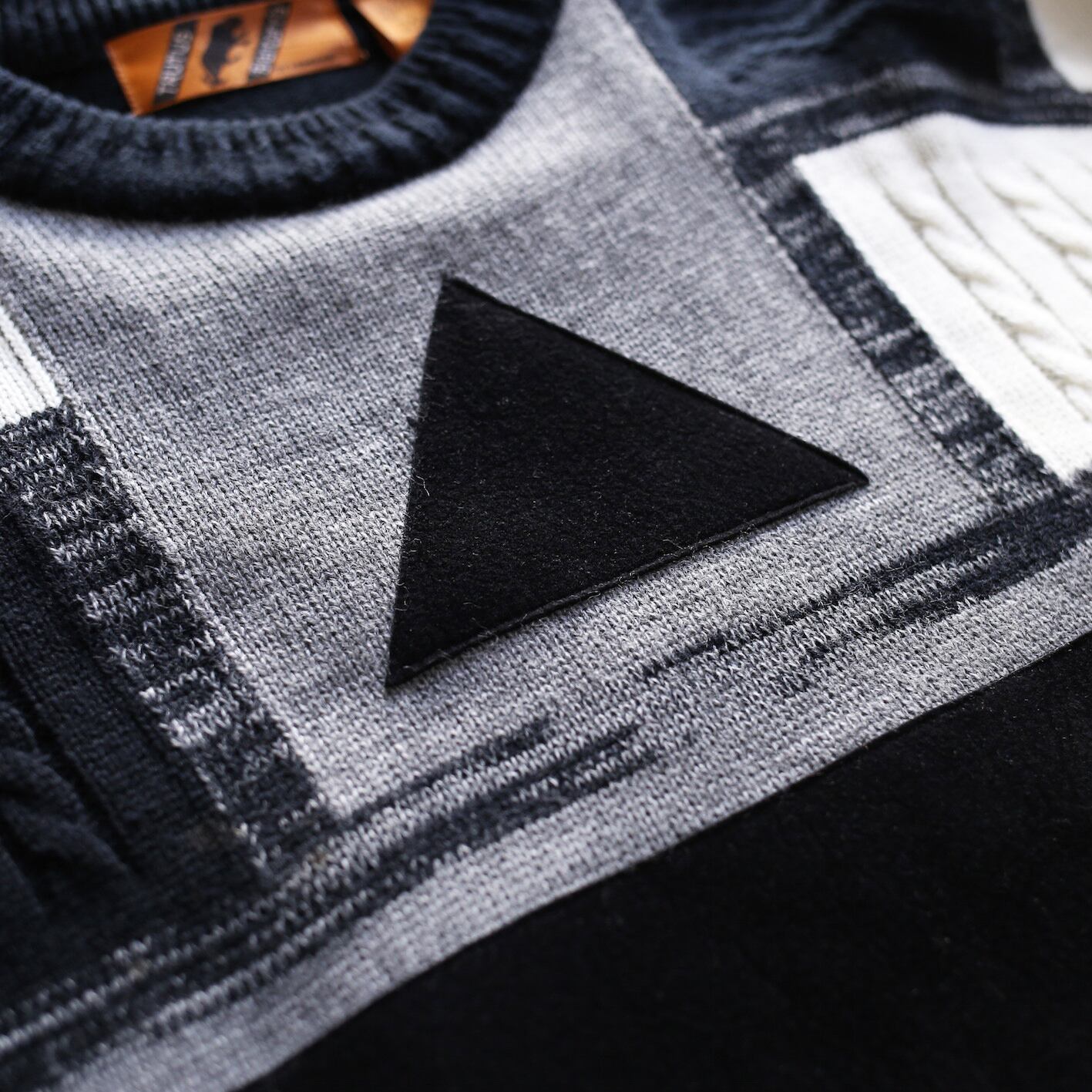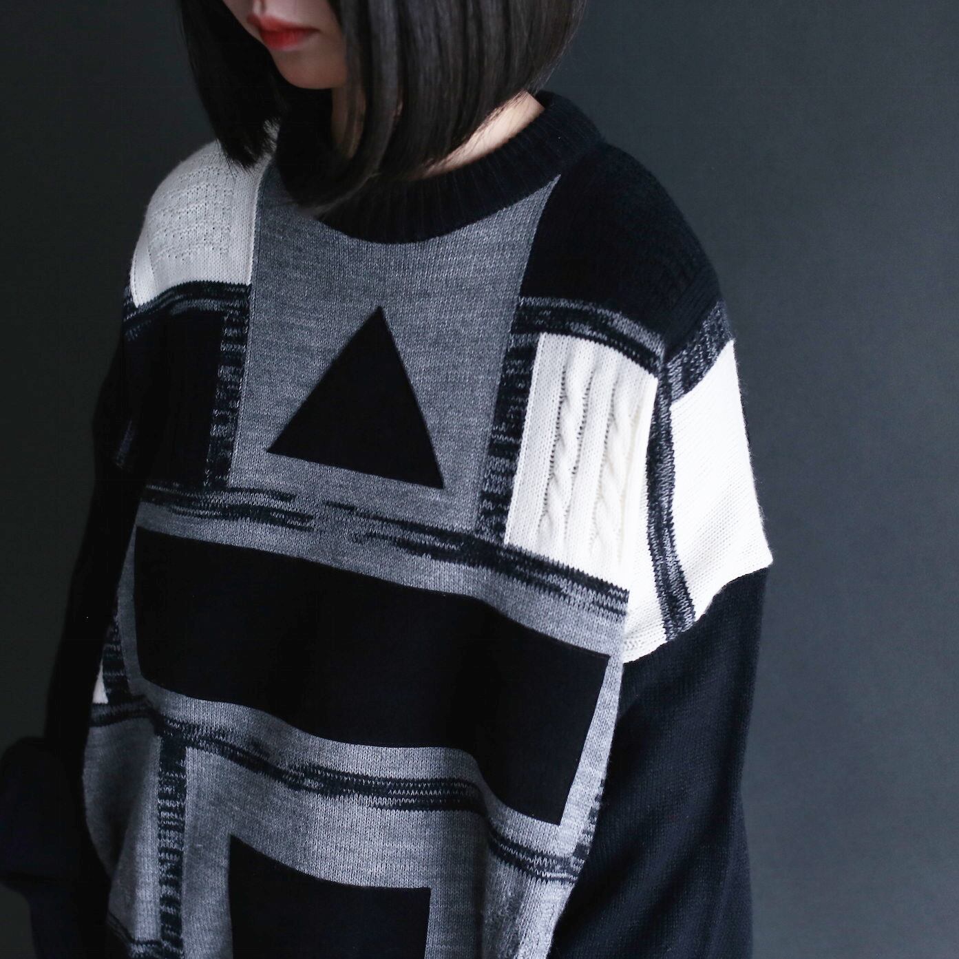 switching monotone felt patch and 3D knit loose sweater