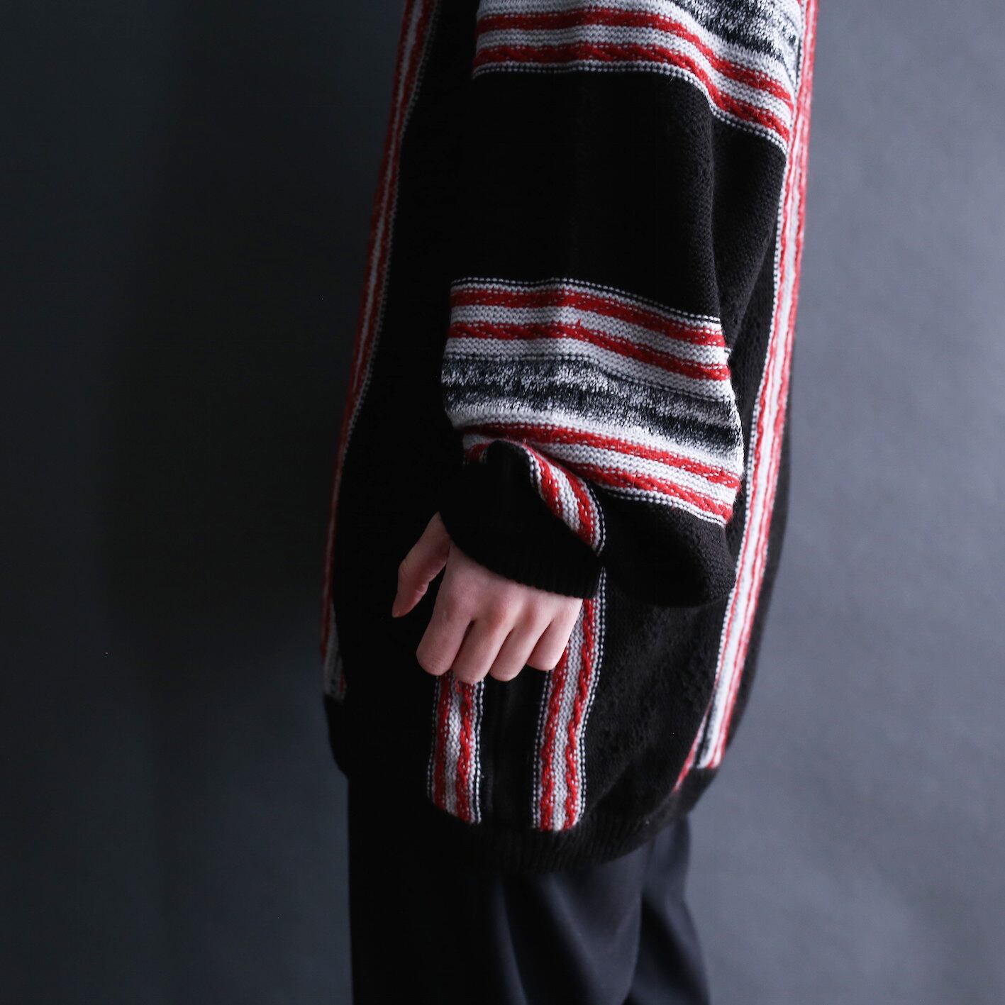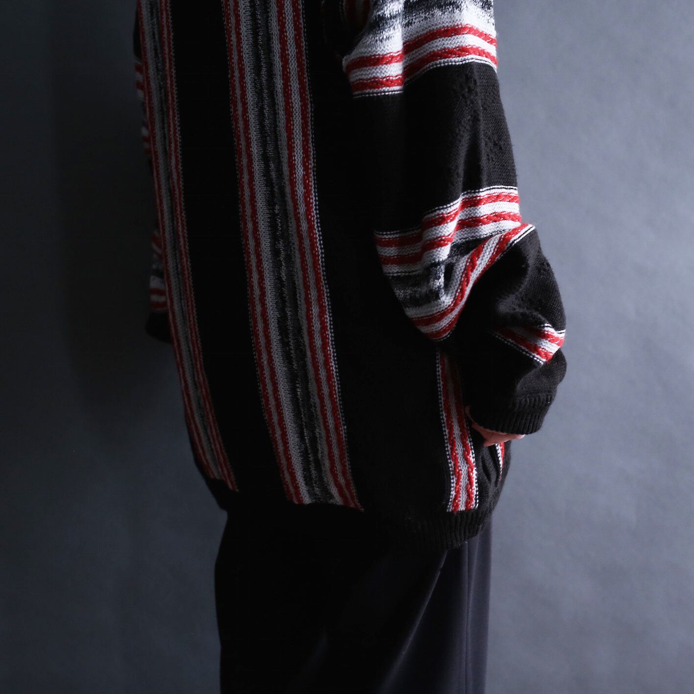 3D wide stripe pattern loose pullover sweater