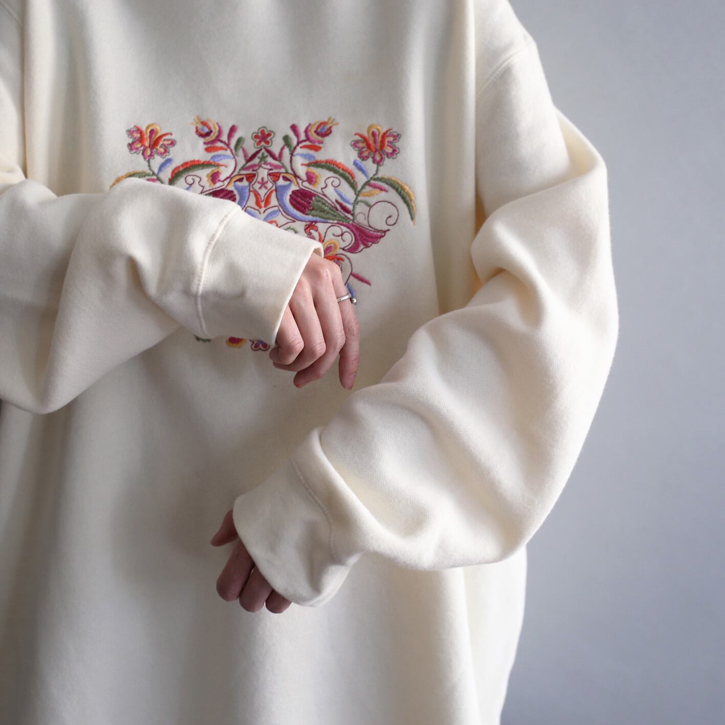 flower and birds embroidery off white big sweat