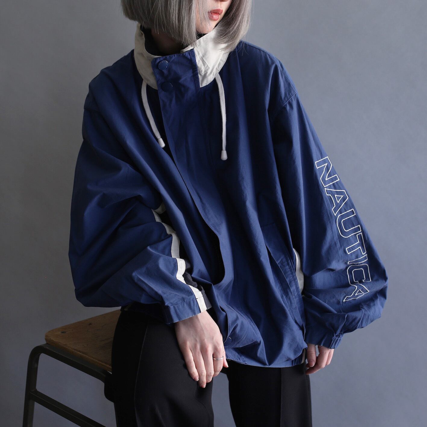 "NAUTICA" switching color wide silhouette high-neck jacket