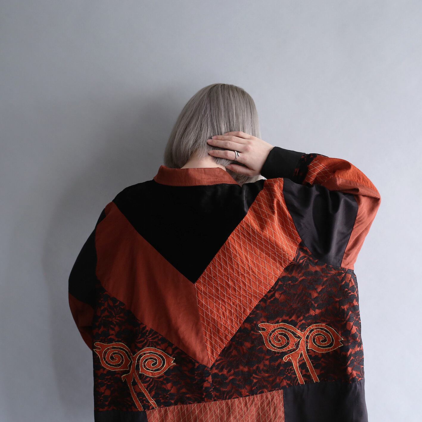 multi fabric panel pattern wide silhouette big jacket