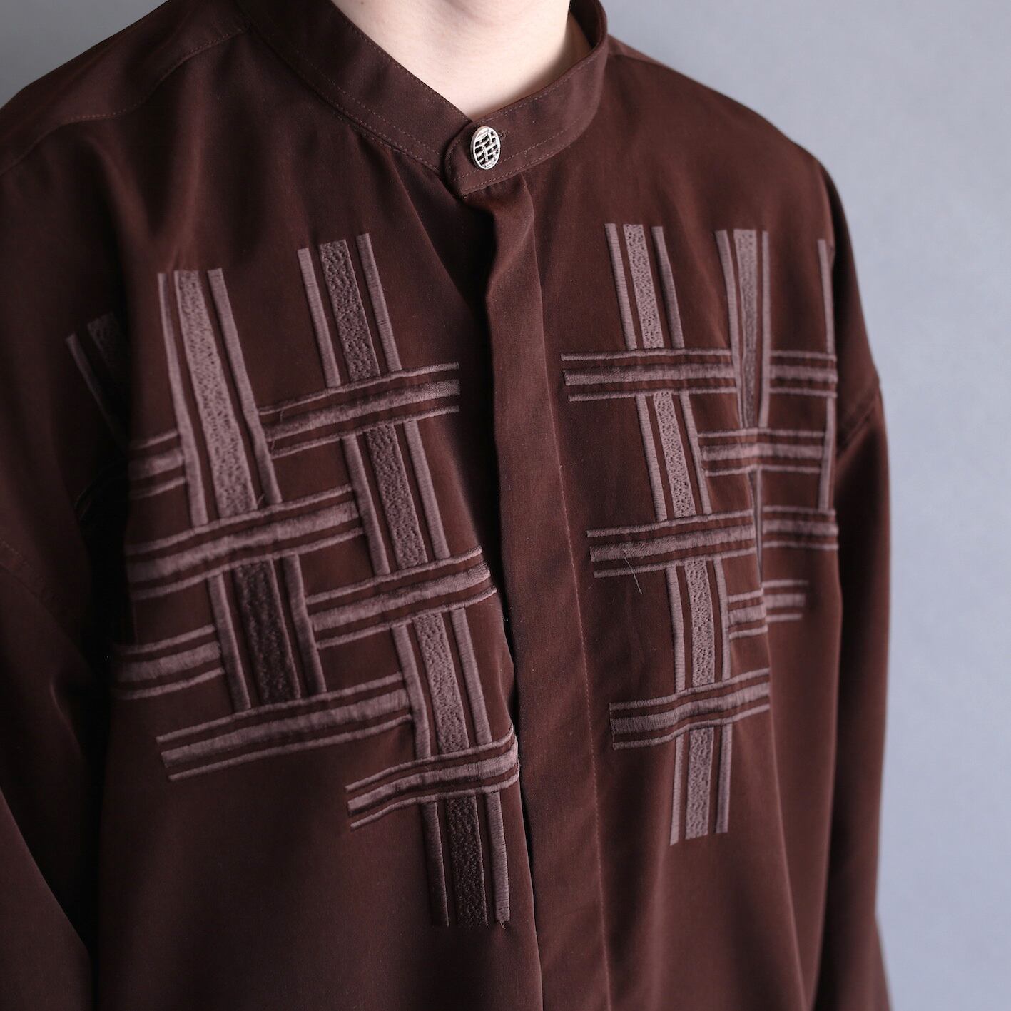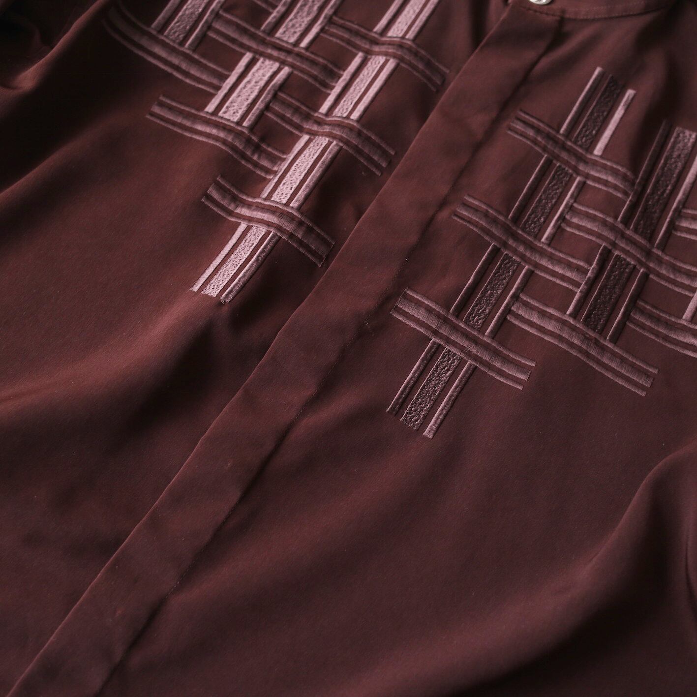 茶×茶の光沢ある刺繍が良いアクセントになったデザインシャツ