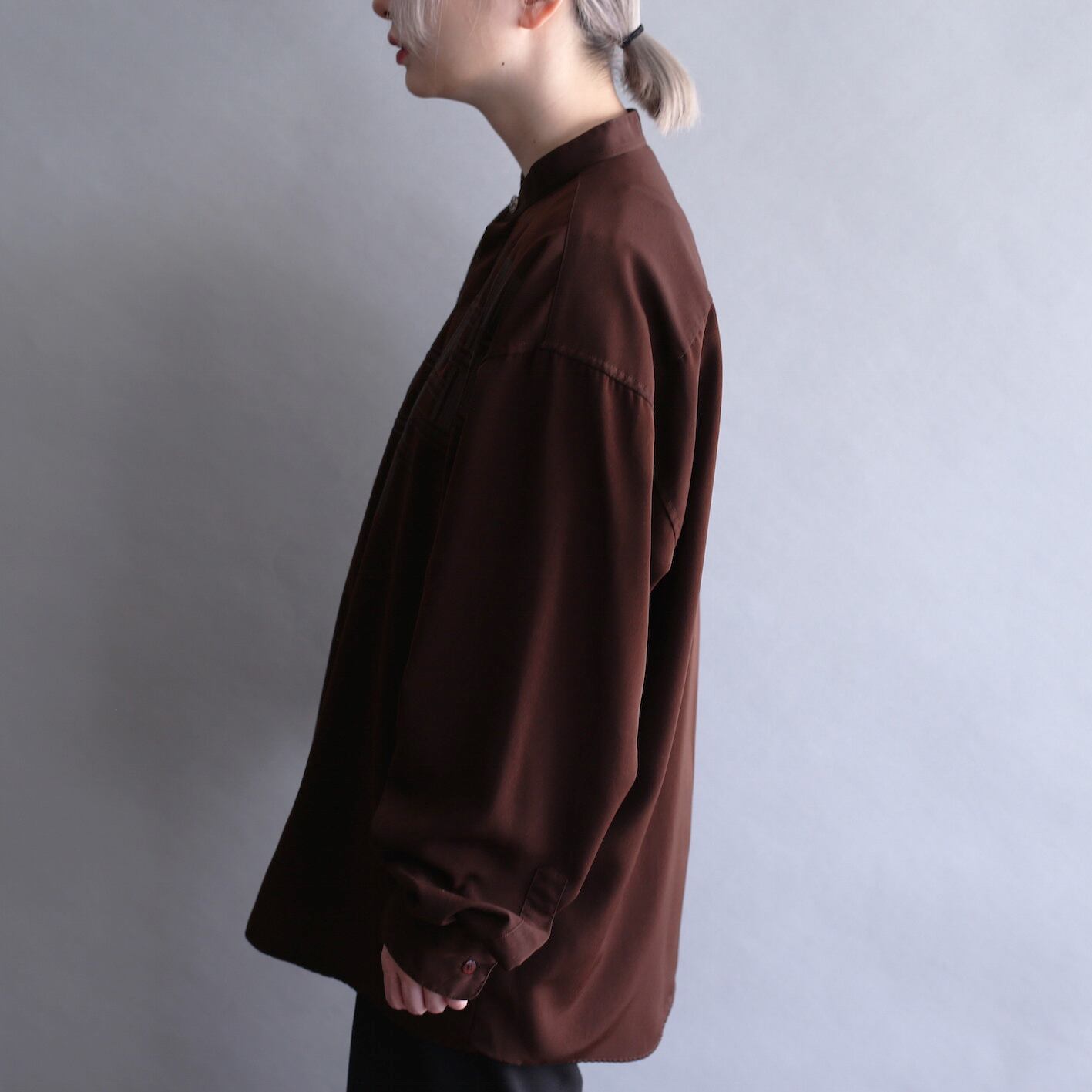 襟はバンドカラーのスッキリとした大人カジュアルスタイル◎