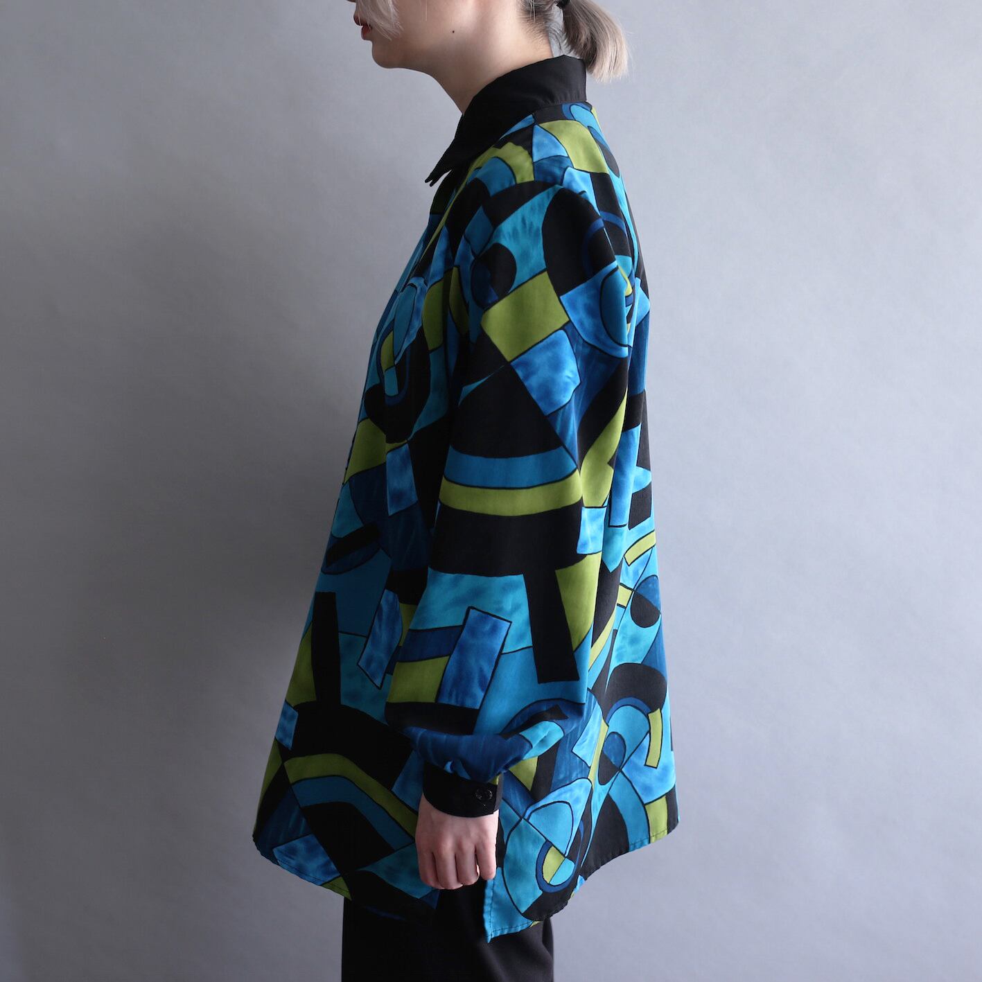 寒色で描かれたステンドグラスのような幻想的な世界観を放つデザインシャツ