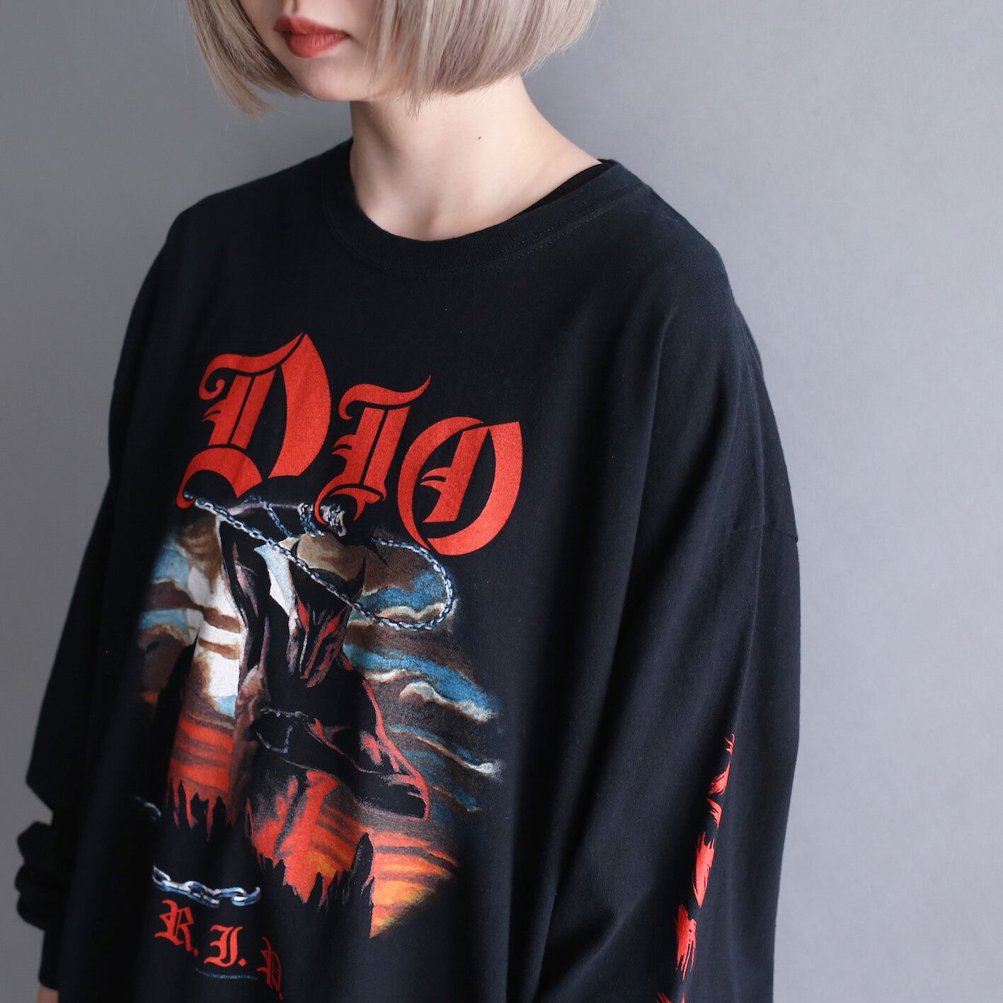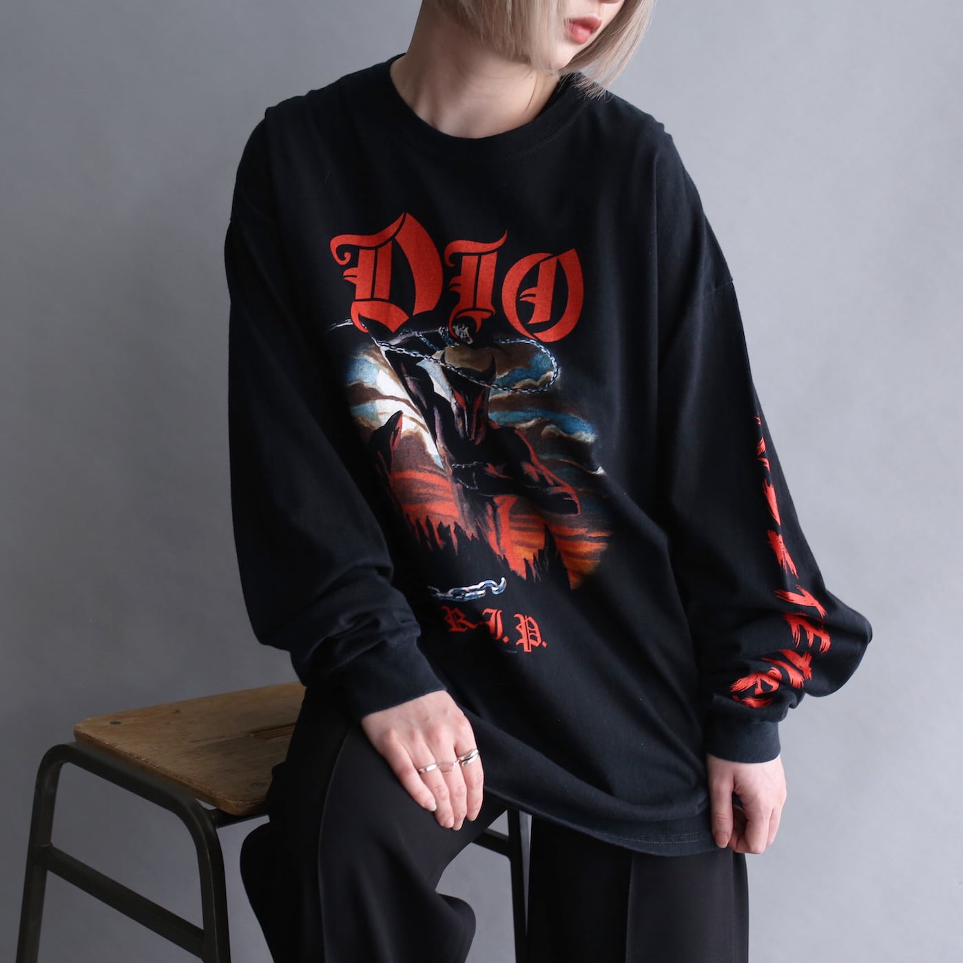特殊な字体で描かれた文字プリントと悪魔のプリントが超絶マッチした袖プリントロンTEE