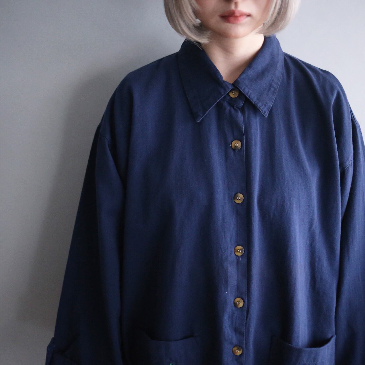ダブルポケットの上に花の刺繍が施されたデザインシャツジャケット