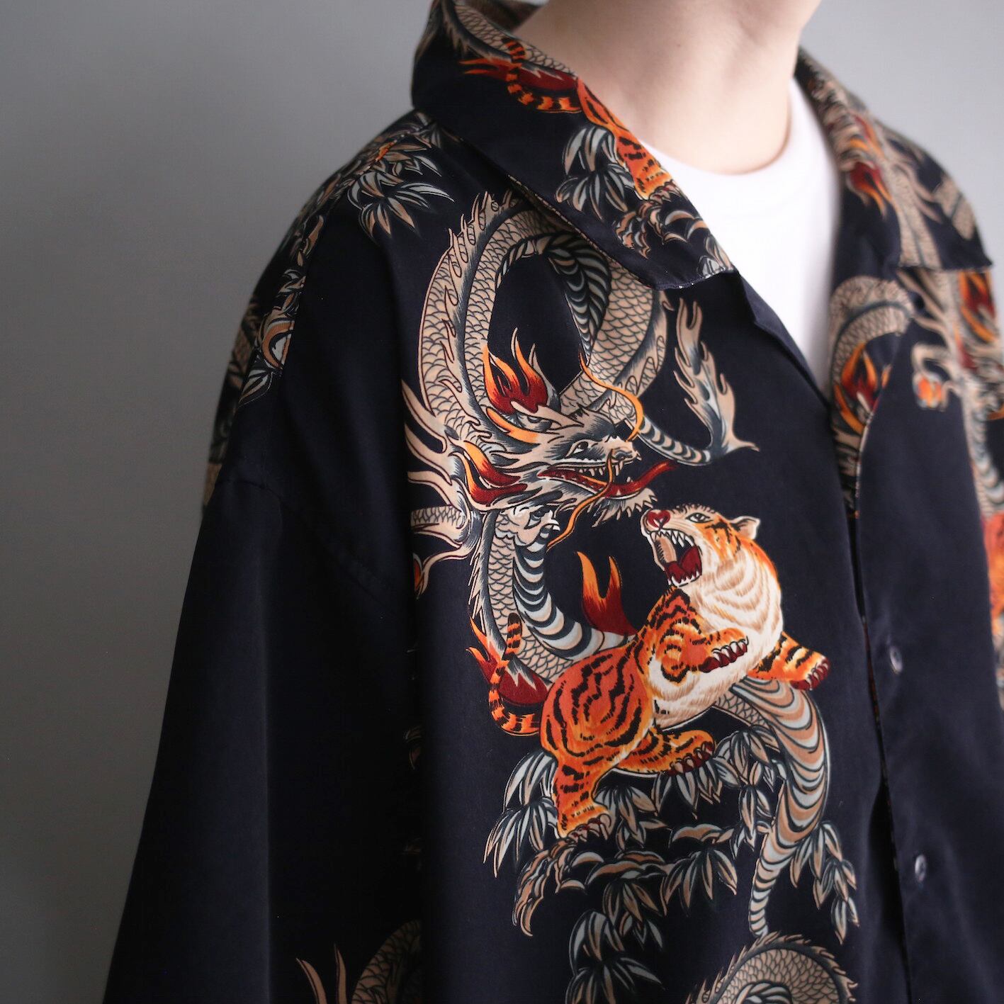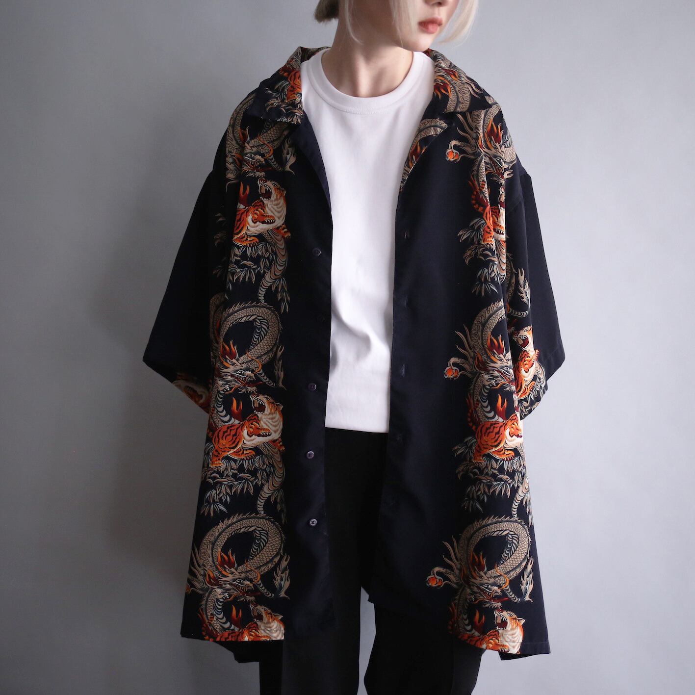 龍×虎の力強いグラフィックがライン状に施されたオーバーサイズシャツ