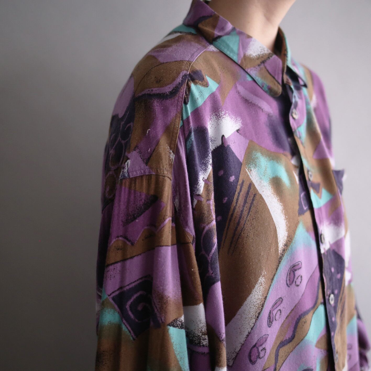 毒々しいカラーリングですがどこか爽やかさも感じるアートパターンシャツ