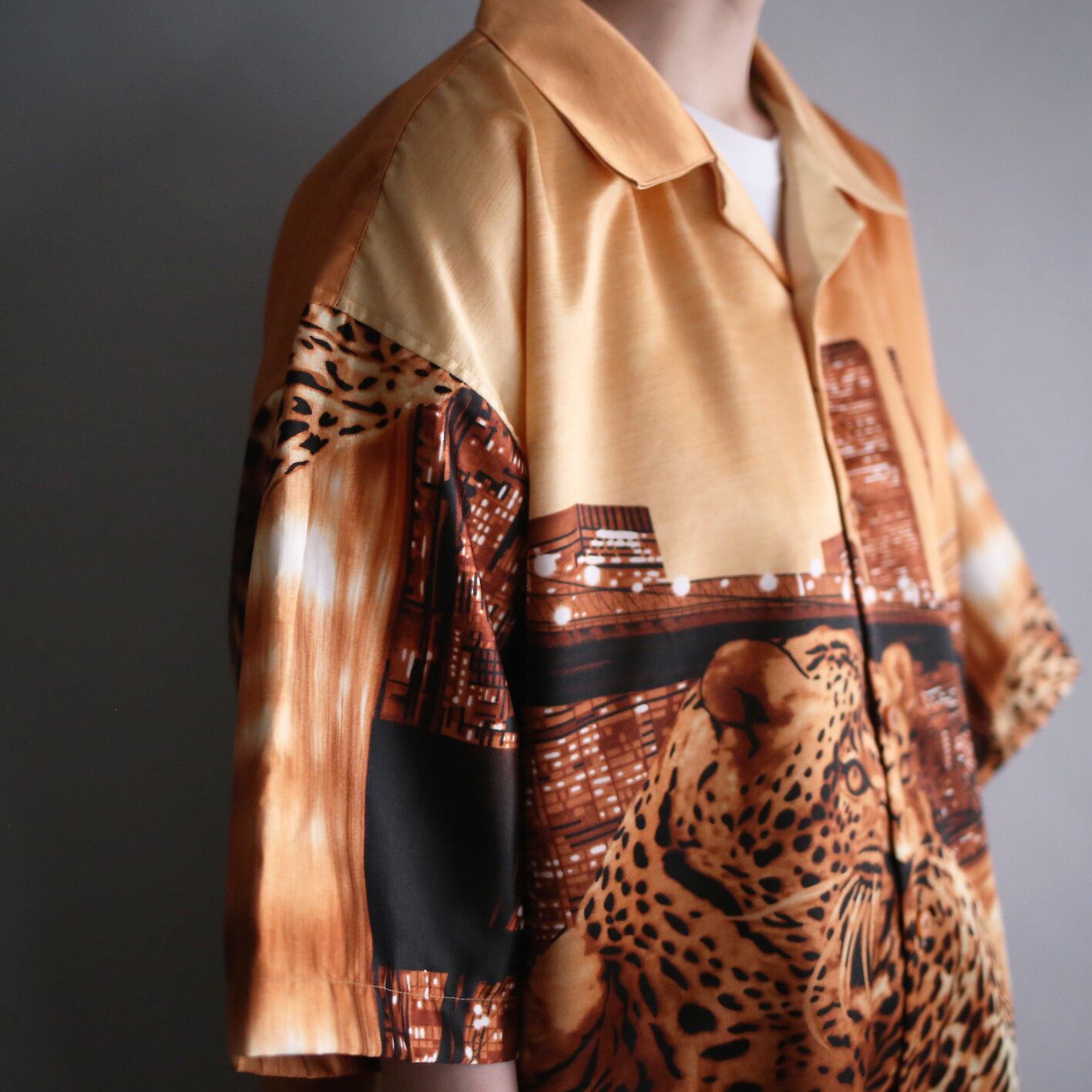 アーバンな風景が鮮やかに浮かぶ都会的な街並みに大判な豹の姿を映し出したデザインシャツ
