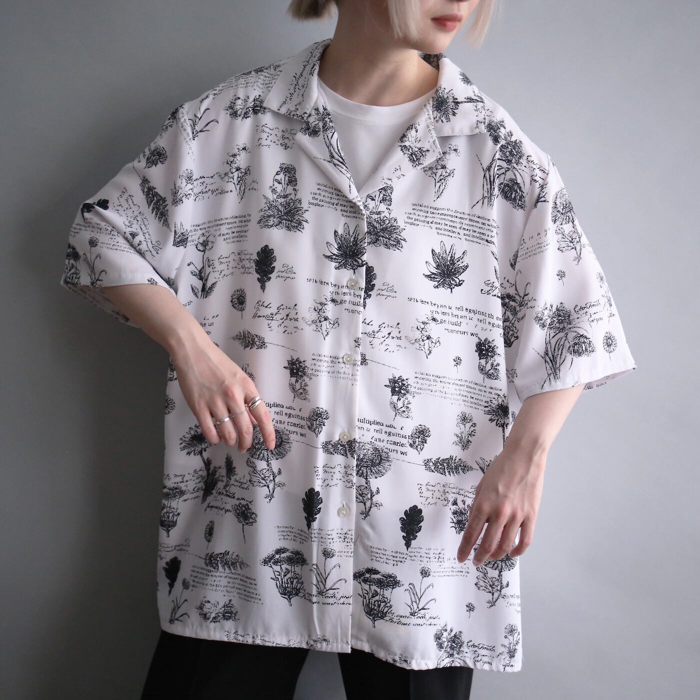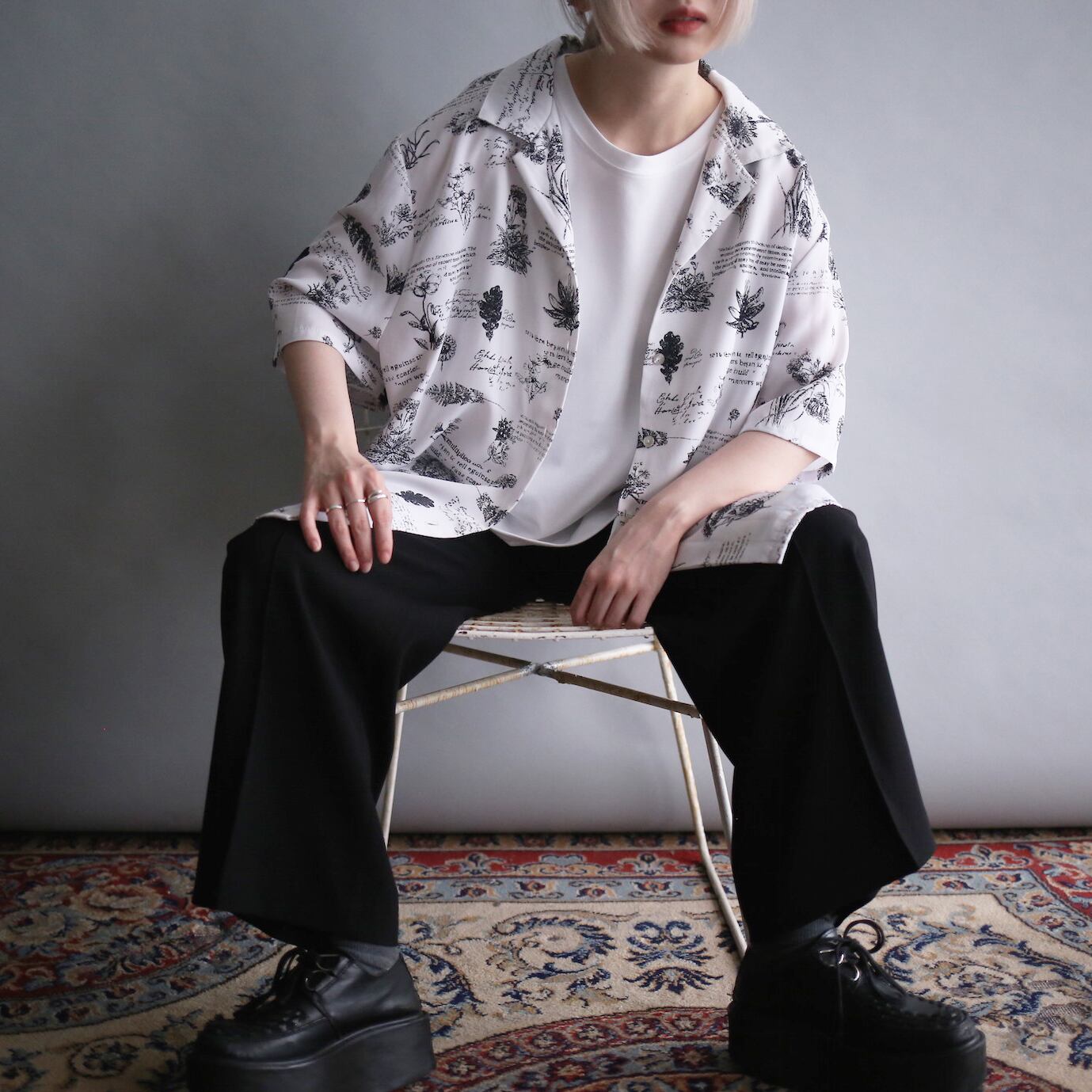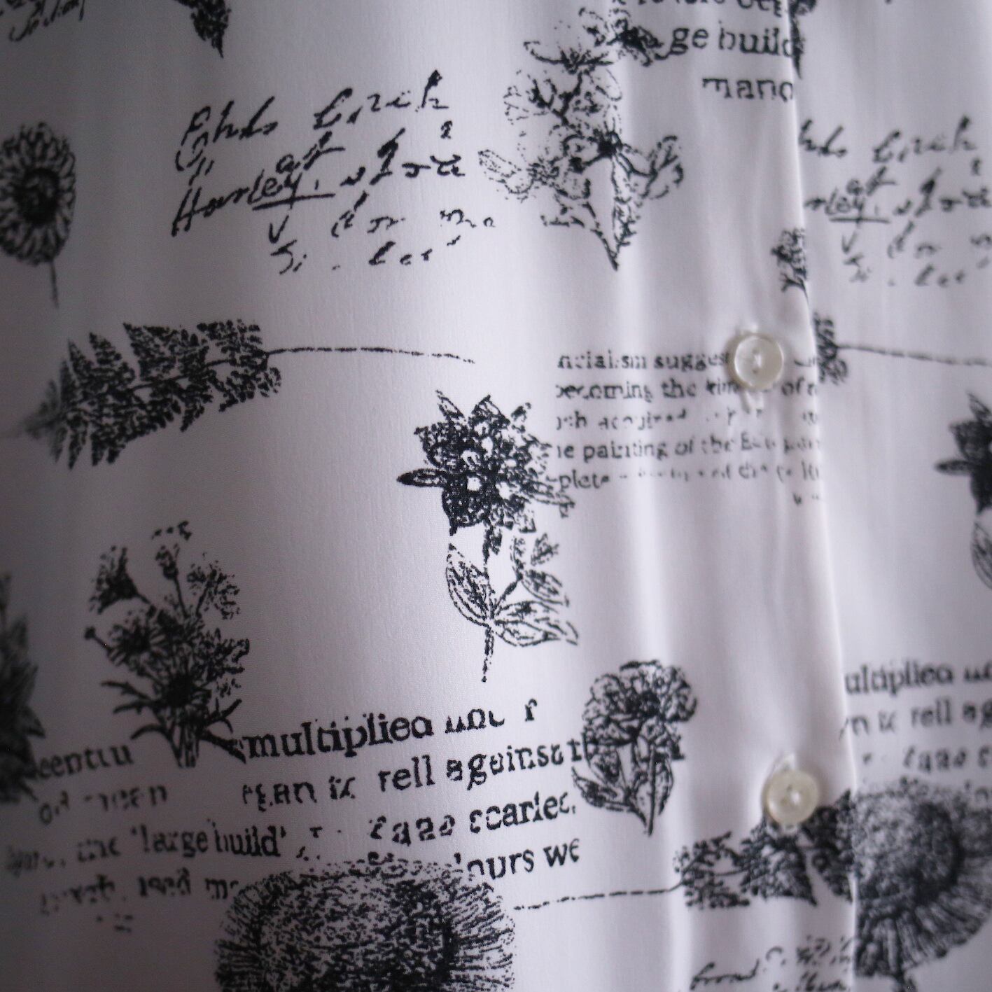 白をベースに様々な植物を描いたモノトーンデザインシャツ