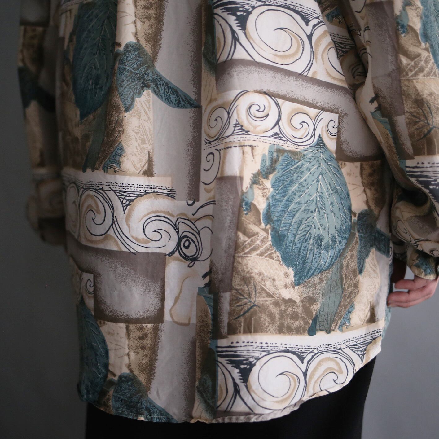 古着らしいレトロな配色と絶妙〜な差し色が加わったアートデザインシルクシャツ