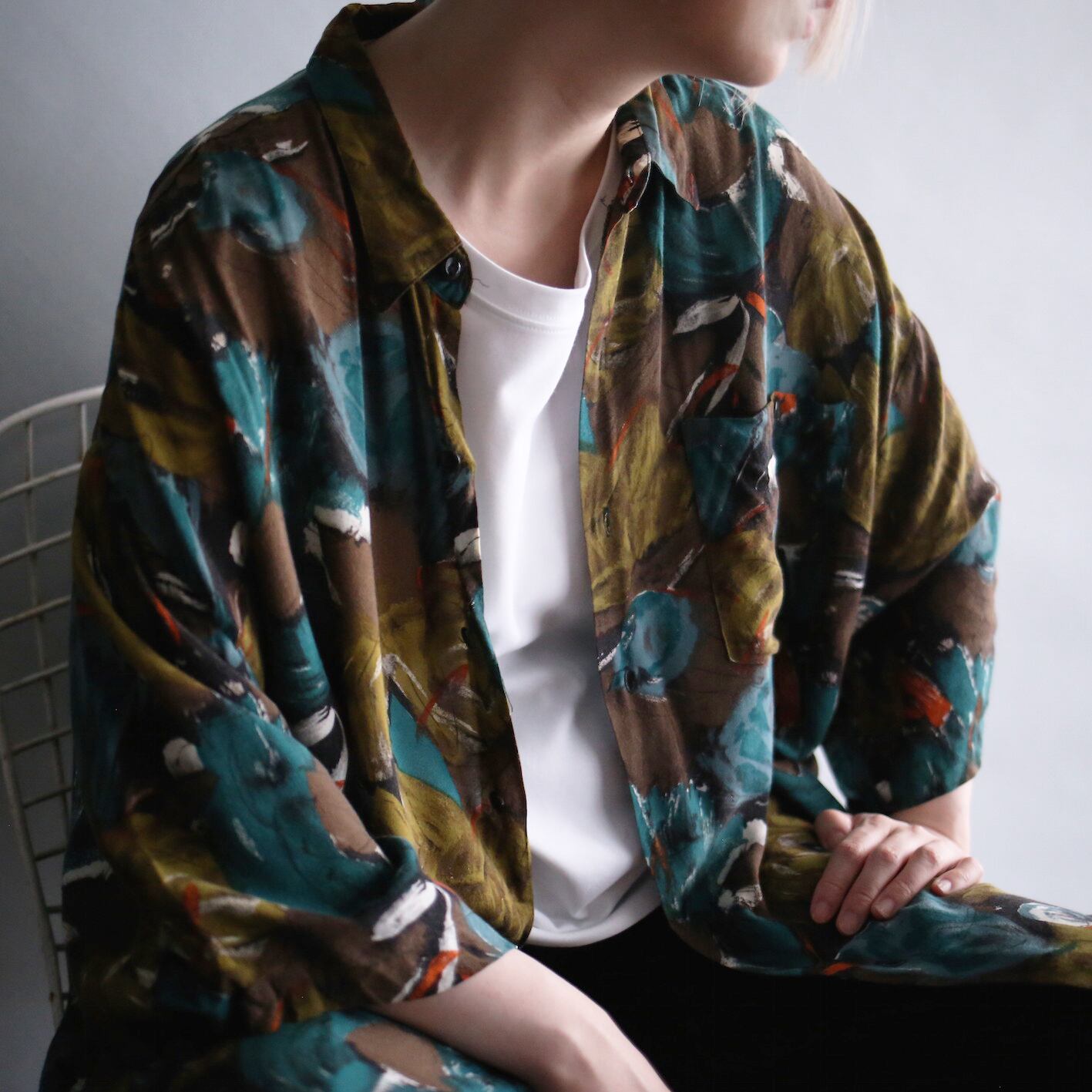 柄シャツでこのテンションのアート柄はほんとに稀で掘り出すのにとても苦労しました…