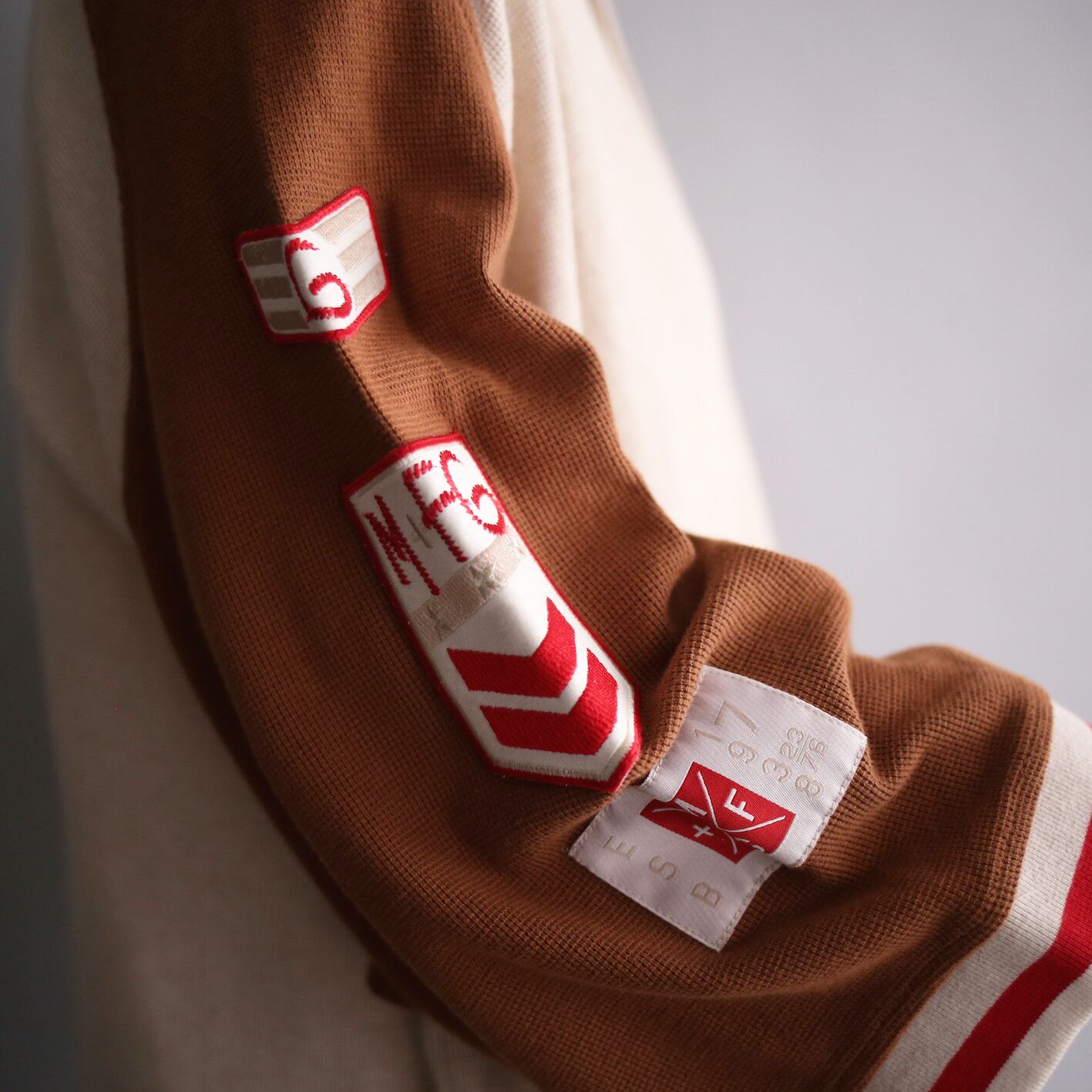 フロントには大ぶりな胸ポケットにロゴ刺繍、右袖にはロゴのワッペンを3つも施した超〜贅沢なデザイン◎