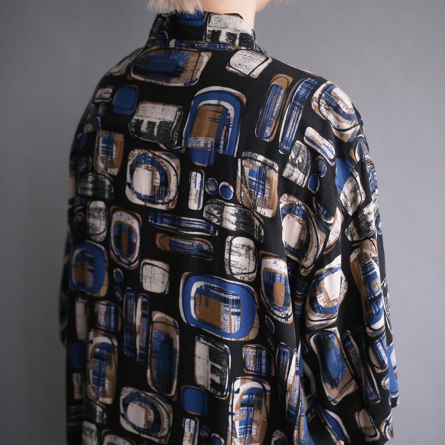 大小様々な四角柄にアートなグラフィックを混ぜ合わせたアートデザインシャツ