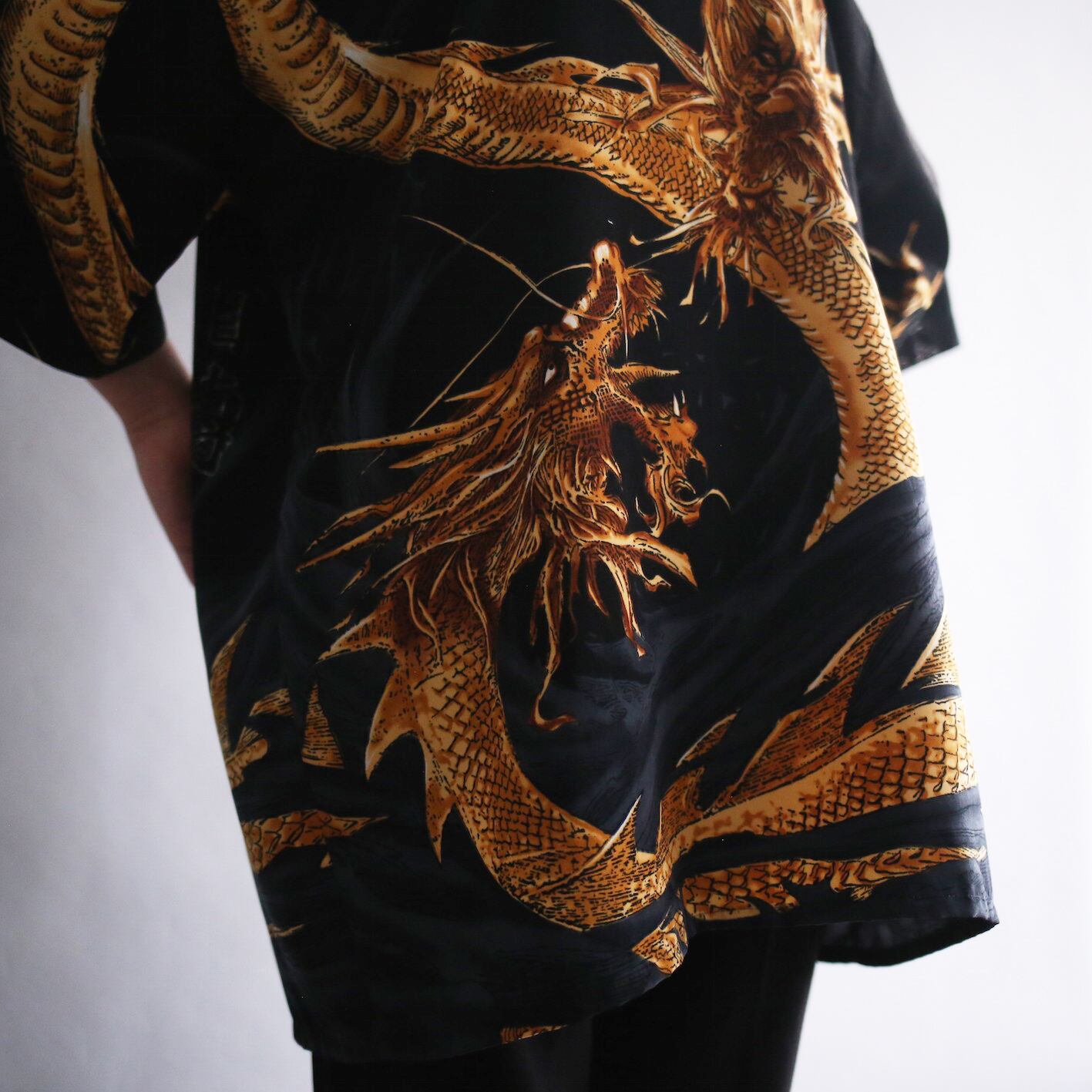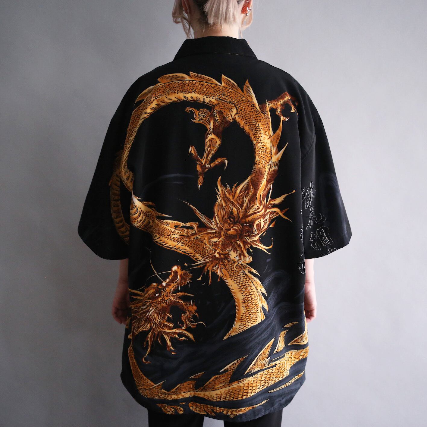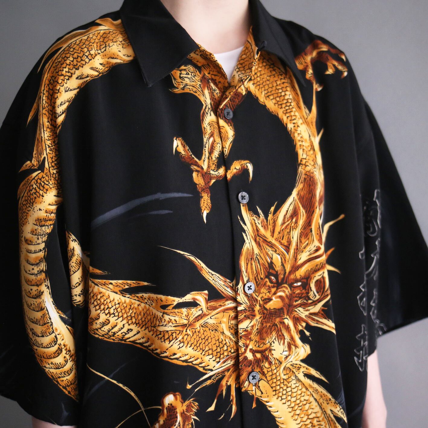 全面に"龍"のグラフィックと"漢字"を大胆に施したオーバーサイズシャツ